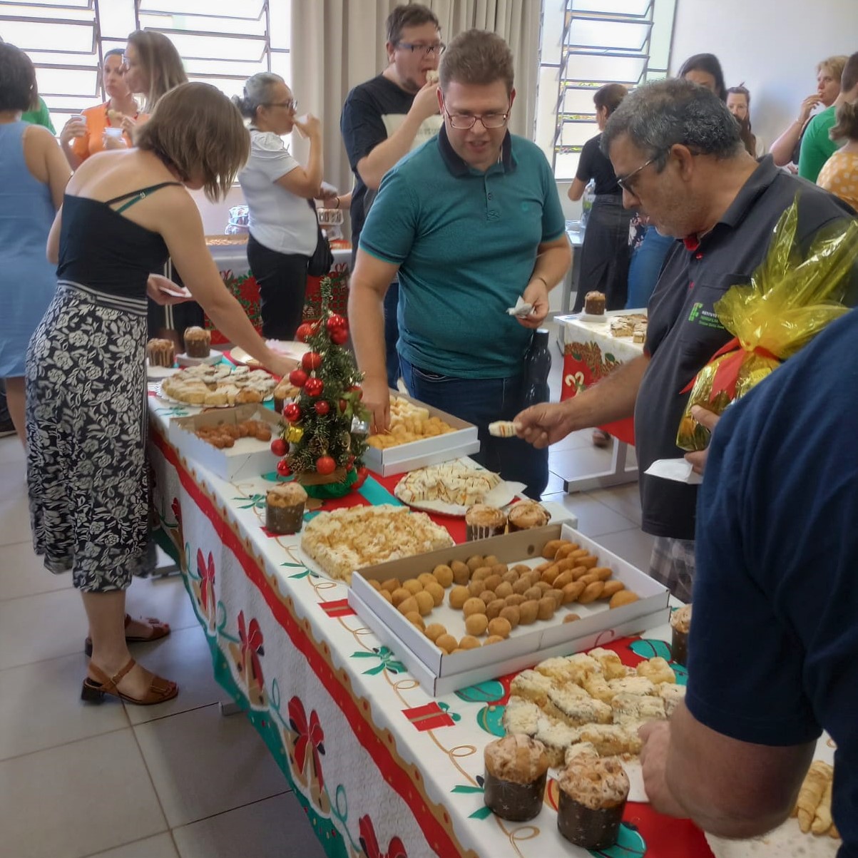 A confraternização de final de ano dos servidores do IFFar – Campus Santa Rosa ocorreu na tarde da quarta-feira (14), com um coffee break servido no auditório.