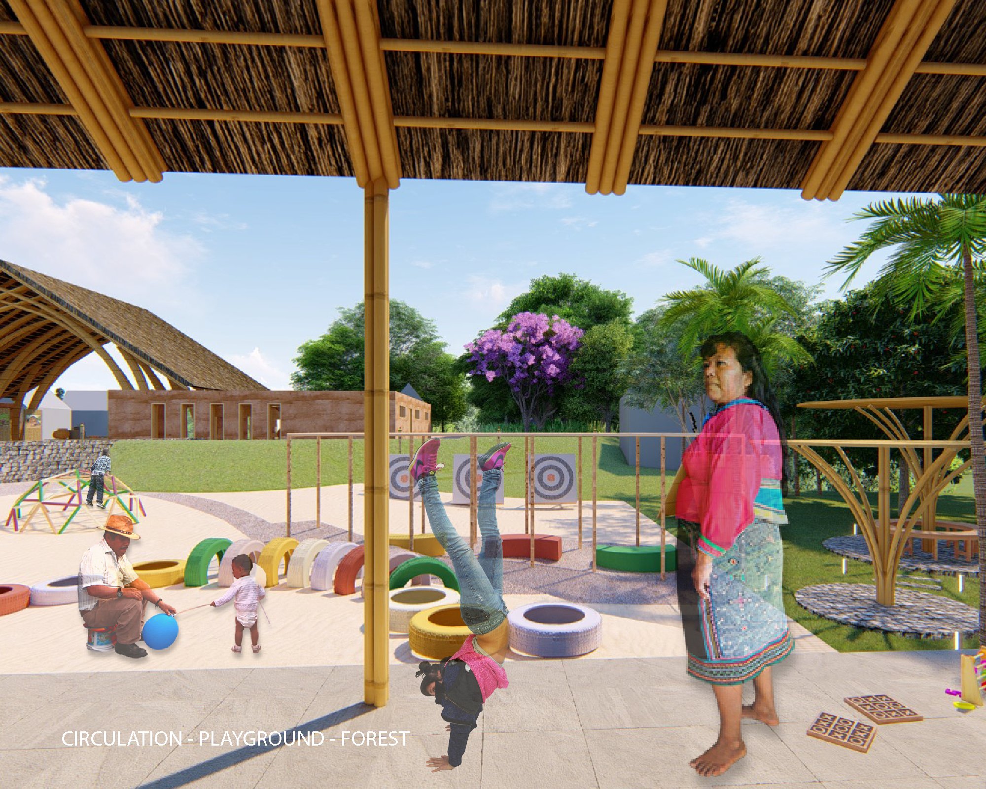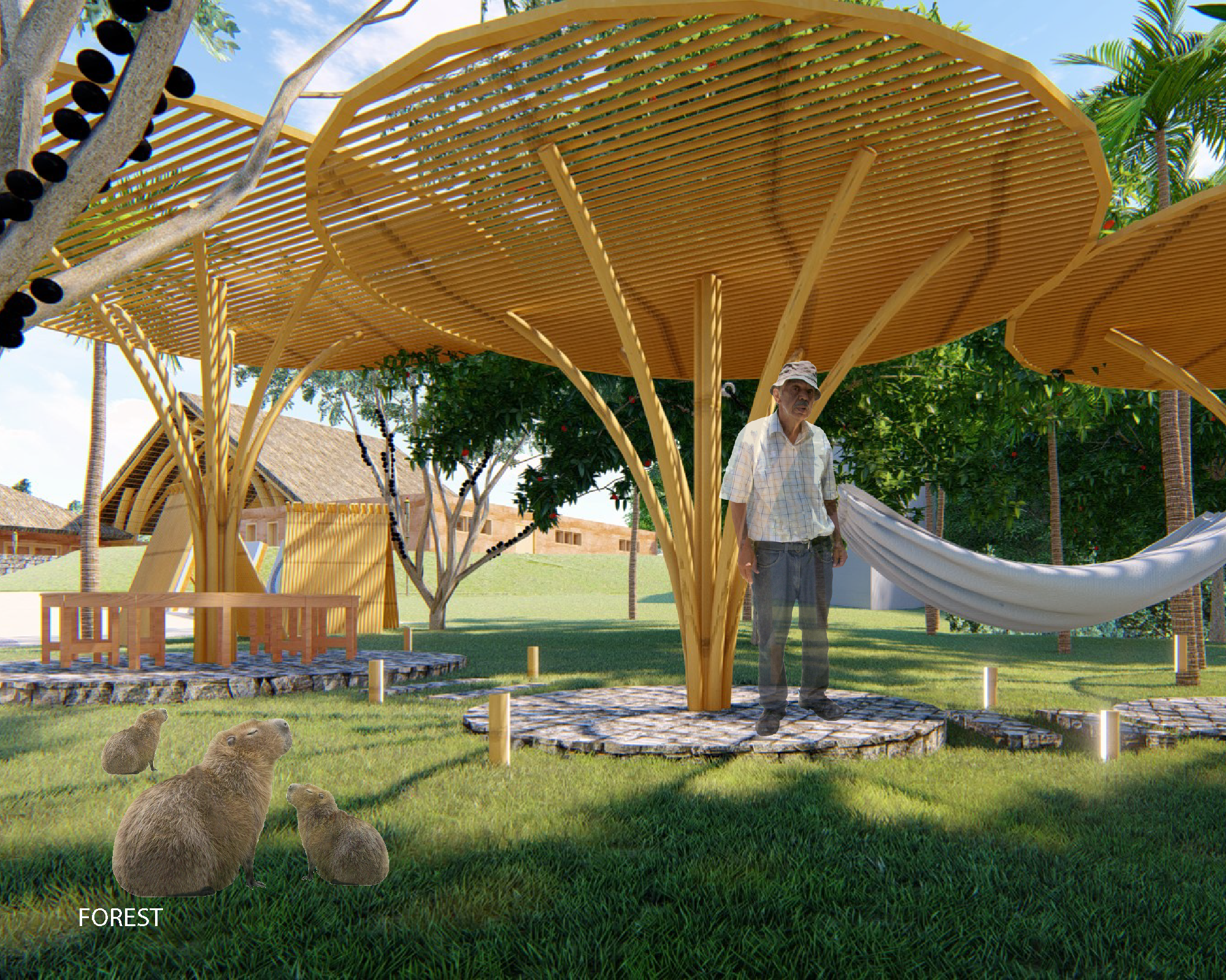 "A criação de uma infraestrutura de apoio para os moradores da aldeia tem o objetivo de trazer dignidade e qualidade de vida para este povo que, ainda hoje, é invisível para a sociedade", ressalta Amanda. A proposta inclui centro comunitário, setor artesanal, espaço de saúde, anfiteatro, refeitório, escola de ensino infantil e fundamental, além de áreas externas como horta, composteira, setor de apoio, entre outros. O projeto também prevê alternativas sustentáveis, como a reutilização de águas e compostagem, que vão ao encontro dos Objetivos de Desenvolvimento Sustentável da Agenda 2030, da ONU.