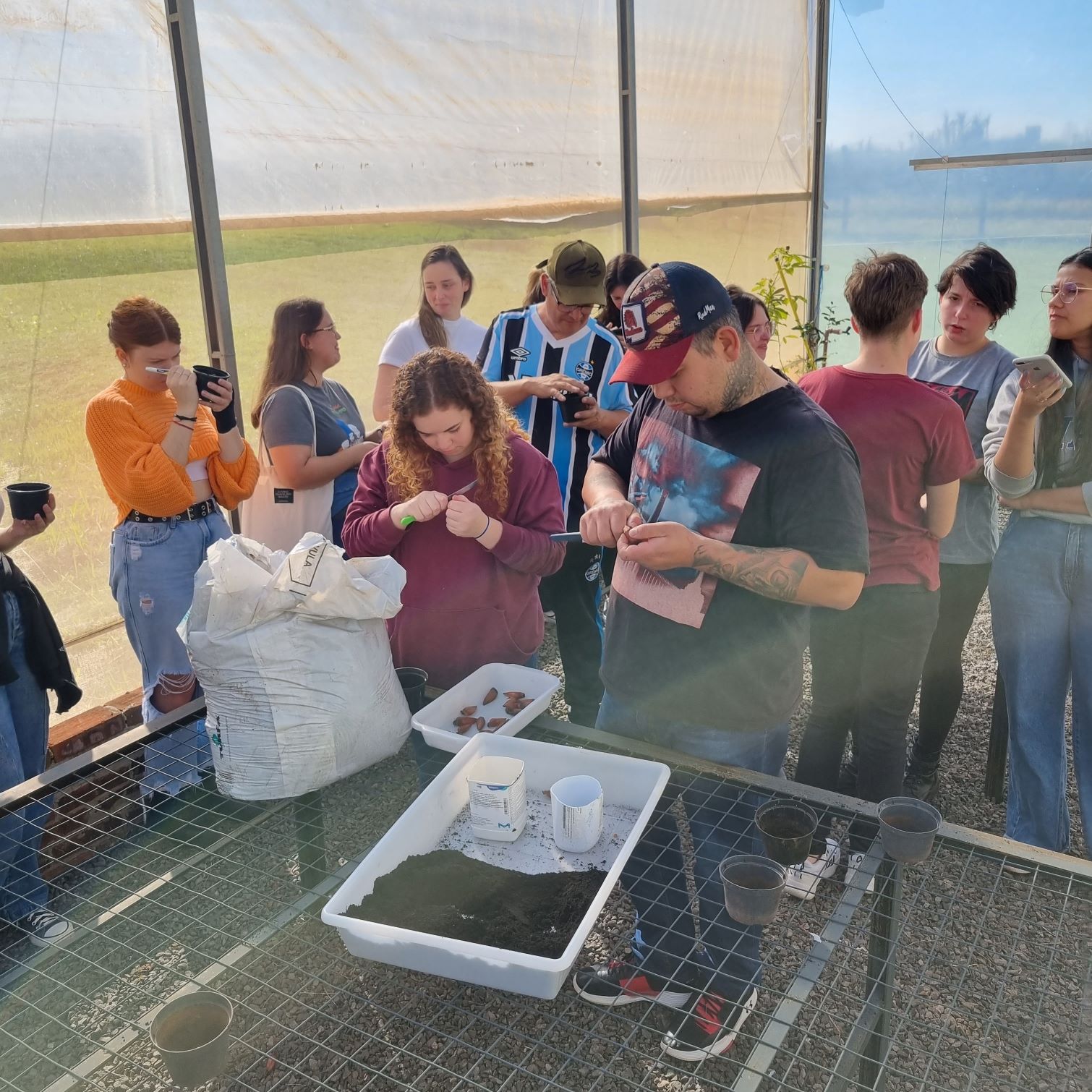 A professora Tatiana Raquel Löwe, que ministra as disciplinas de Botânica do curso, fez um relato da trajetória da instalação da estufa e as dificuldades superadas para que ela estivesse em condições de uso. Um projeto de extensão em andamento prevê o cultivo e desenvolvimento de algumas espécies que irão compor o roteiro de visitação e ações de educação ambiental. A professora também aproveitou a ocasião para convidar os alunos interessados a se voluntariarem no projeto.