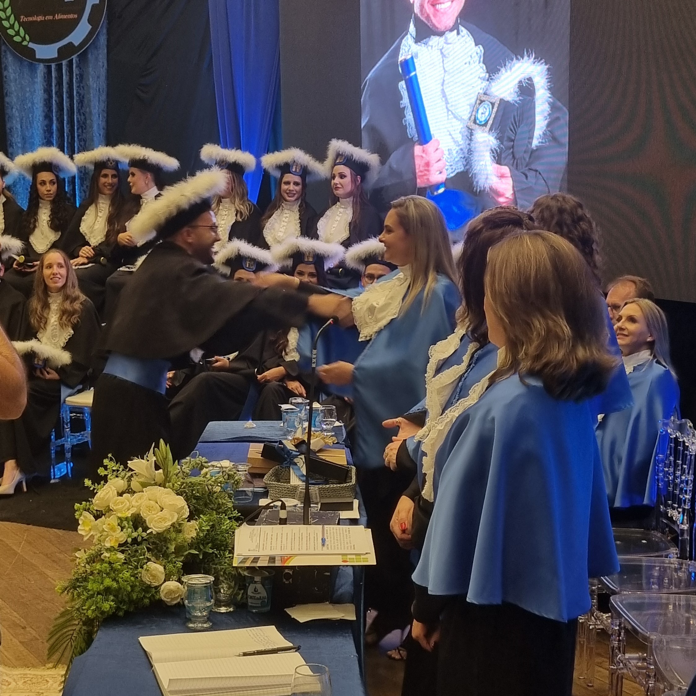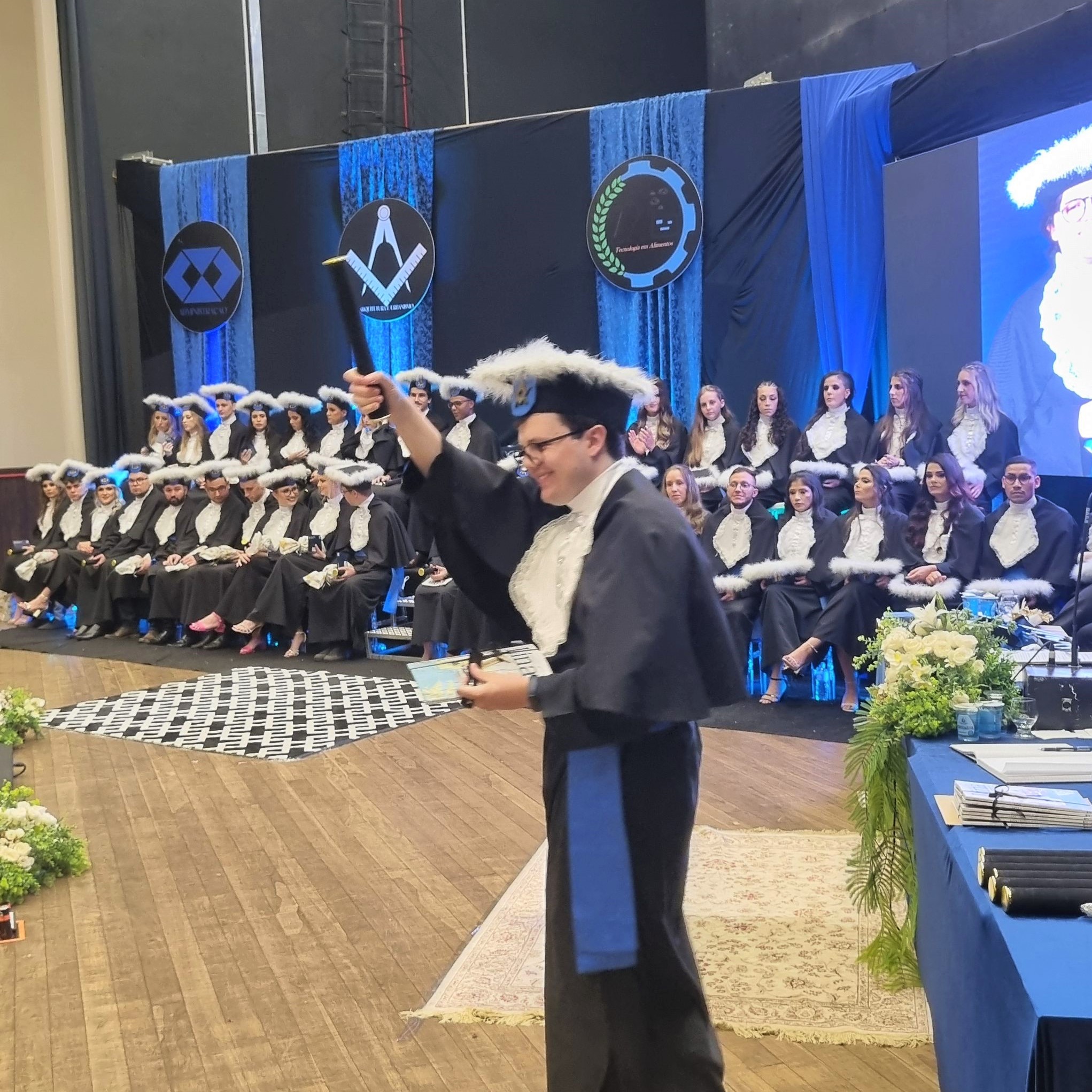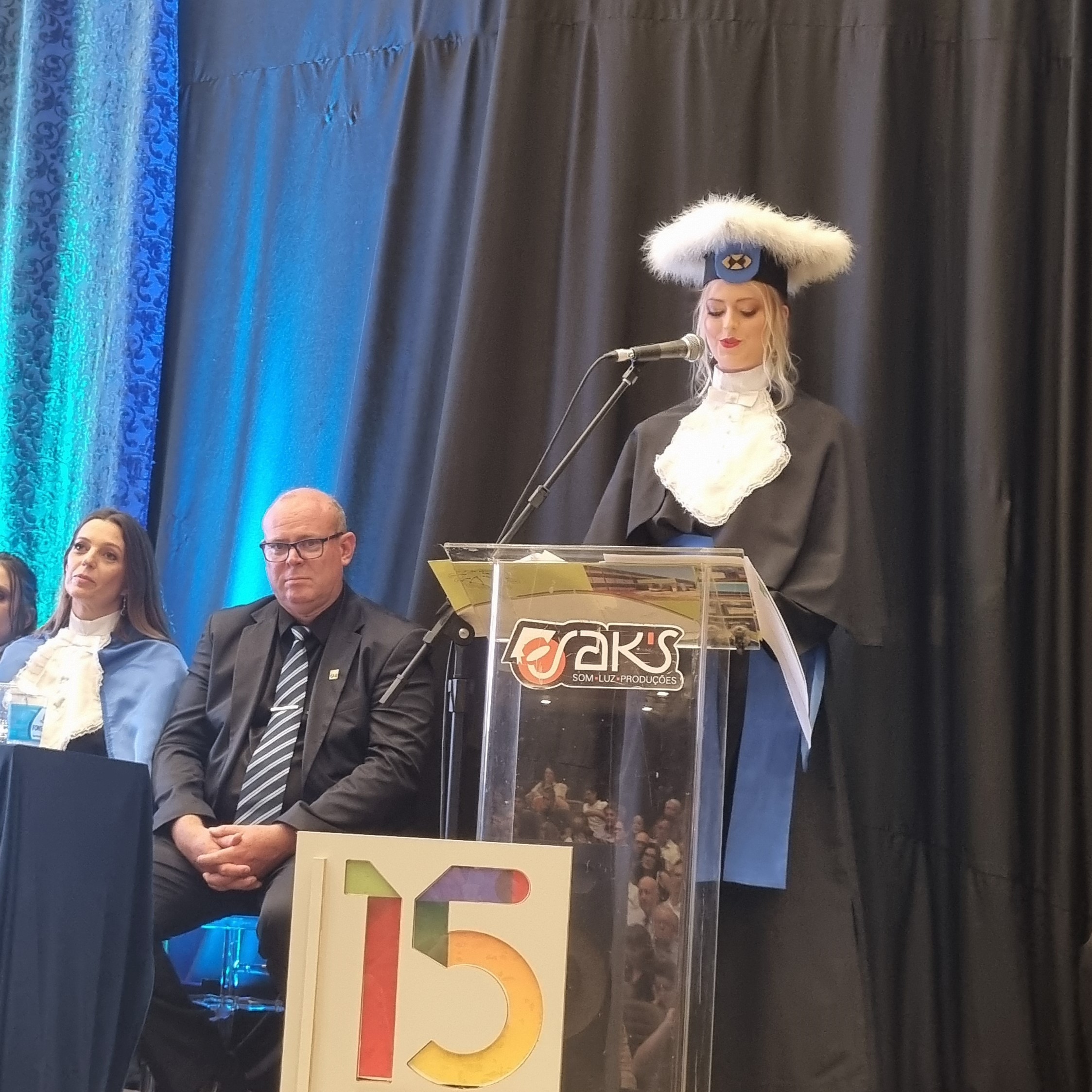 A bacharela em Administração Jenifer Taís Radieske, os bacharéis em Arquitetura e Urbanismo Gustavo Tomaz de Paula e Lia Vitória de Souza, e a Tecnóloga em Alimentos Eduarda Cristina Schmitt Kundo foram os oradores das turmas. Eles sintetizaram os principais momentos vivenciados durante a formação superior. Além dos agradecimentos aos familiares e professores, eles destacaram a importância da profissão abraçada por cada formando e como poderão contribuir com a sociedade. Palavras como dedicação, resiliência, perseverança, superação e desafios marcaram o discursos. Confira alguns registros da solenidade.