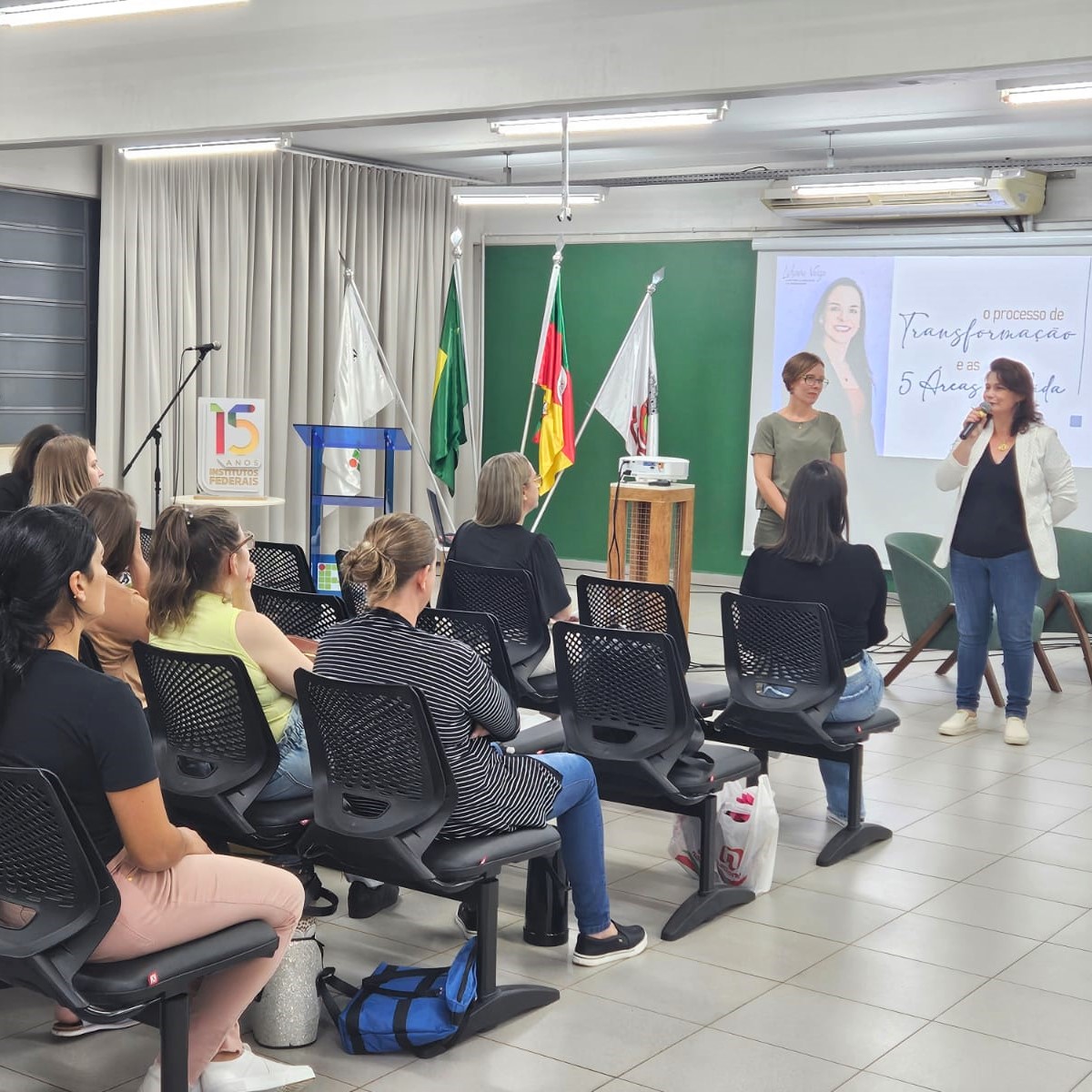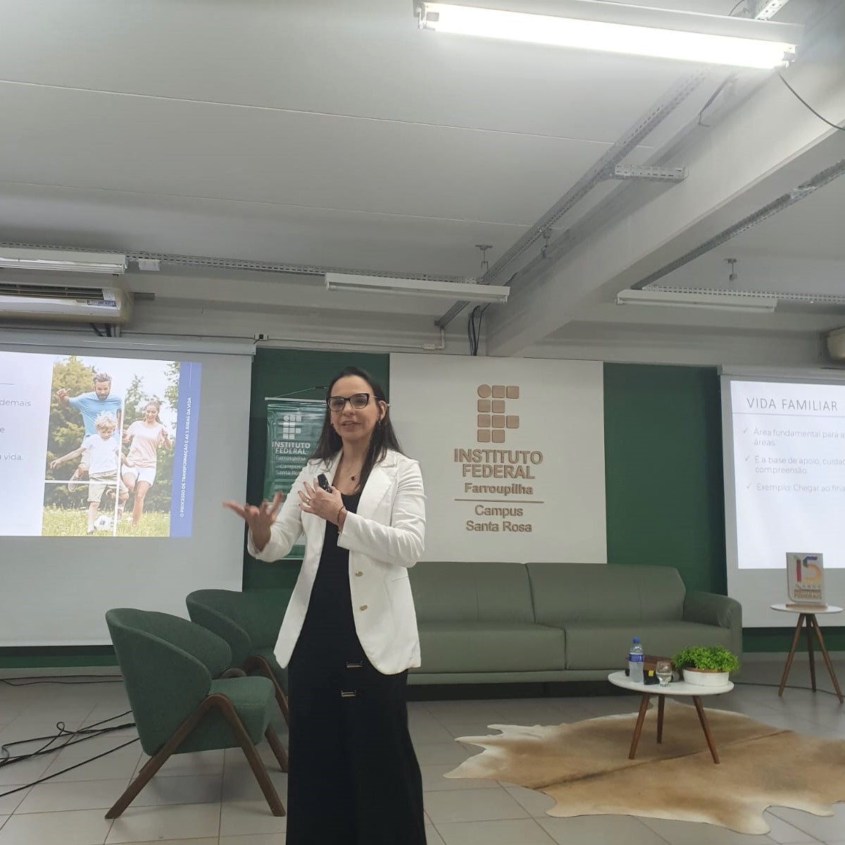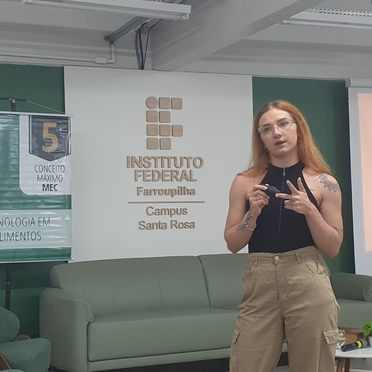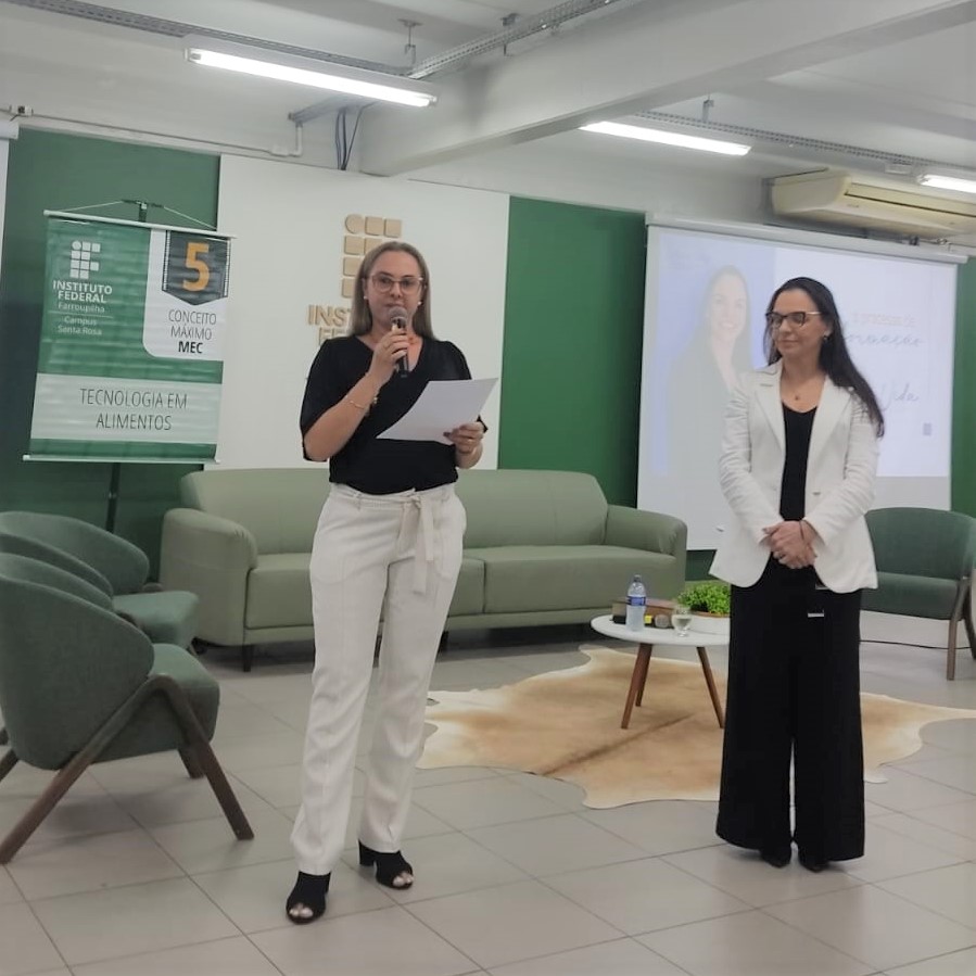 Para marcar o ingresso da 6ª turma de alunos junto ao curso superior de Tecnologia em Alimentos, a coordenação do curso, em parceria com o diretório acadêmico, organizou a aula inaugural com duas palestrantes convidadas: Lidiane Veiga, Especialista em Psicologia Positiva (PUC/RS), e Nadine Soares Pinto, egressa do curso de Tecnologia em Alimentos do IFFar – Campus Santa Rosa, mestranda em Ciência e Tecnologia de Alimentos (UFPel), e Assistente de Pesquisa e Desenvolvimento, junto à empresa ALIBEM, de Santa Rosa.