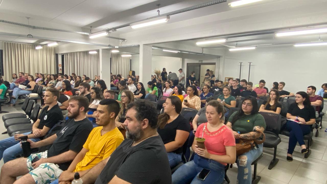 A atividade aconteceu na noite de quinta-feira (21/03), no auditório, e contou com a presença dos acadêmicos do 1º, 3º e 5º semestres do curso de Tecnologia em Alimentos, alunos do curso Técnico em Alimentos EJA/EPT, docentes e servidores. A diretora-geral Analice Marchezan e a Coordenadora Geral de Ensino Sandra Fischer Balbinot participaram da acolhida. A coordenadora do curso de Tecnologia em Alimentos, professora Gislaine Hermanns, destacou a importância da atividade para a motivar os ingressantes e veteranos para vida acadêmica e profissional na área de alimentos.