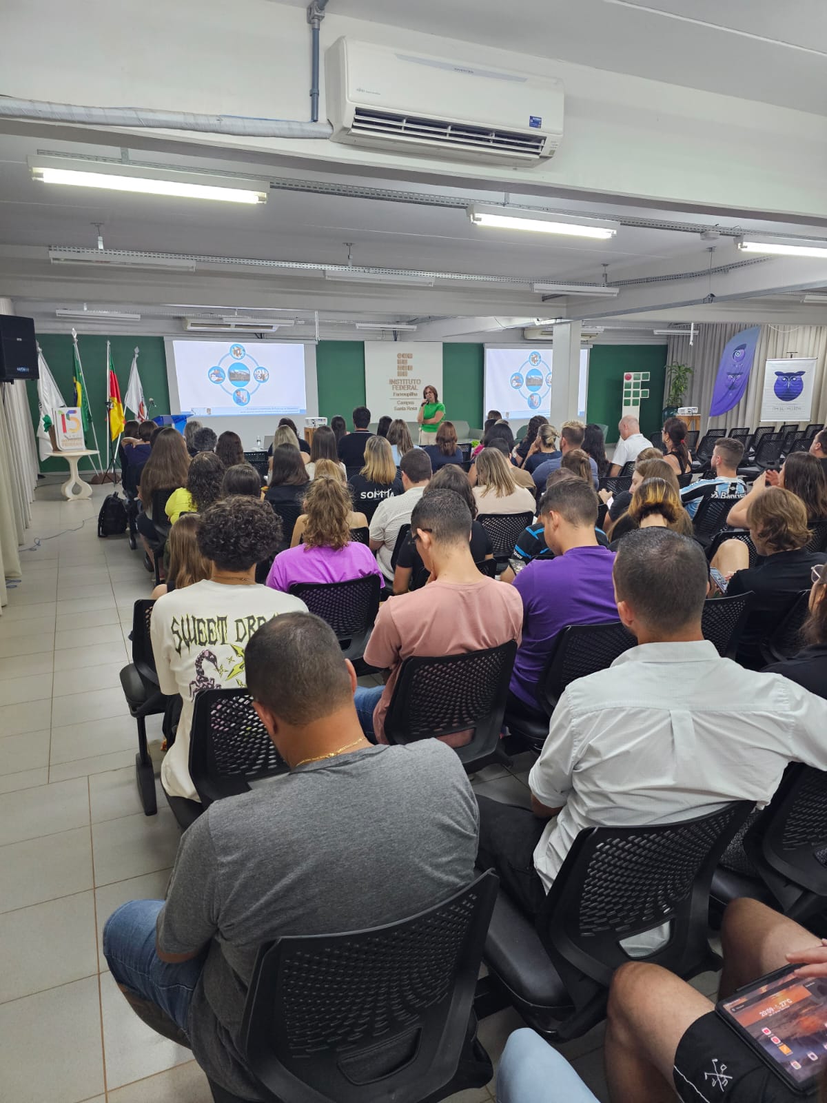 Na quarta-feira, dia 27/03, o curso de Licenciatura em Matemática do IFFar - Campus Santa Rosa realizou a Aula Inaugural, com a presença dos acadêmicos e alunos egressos do curso, alunos egressos do curso de Pós-Graduação Lato Sensu em Educação Matemática para os Anos Iniciais do Ensino Fundamental e professores de Matemática da Secretaria Municipal de Educação e Cultura do município de Santa Rosa.