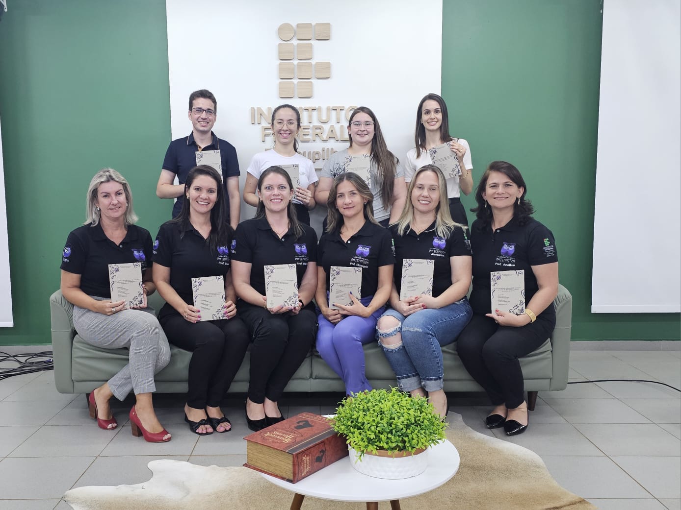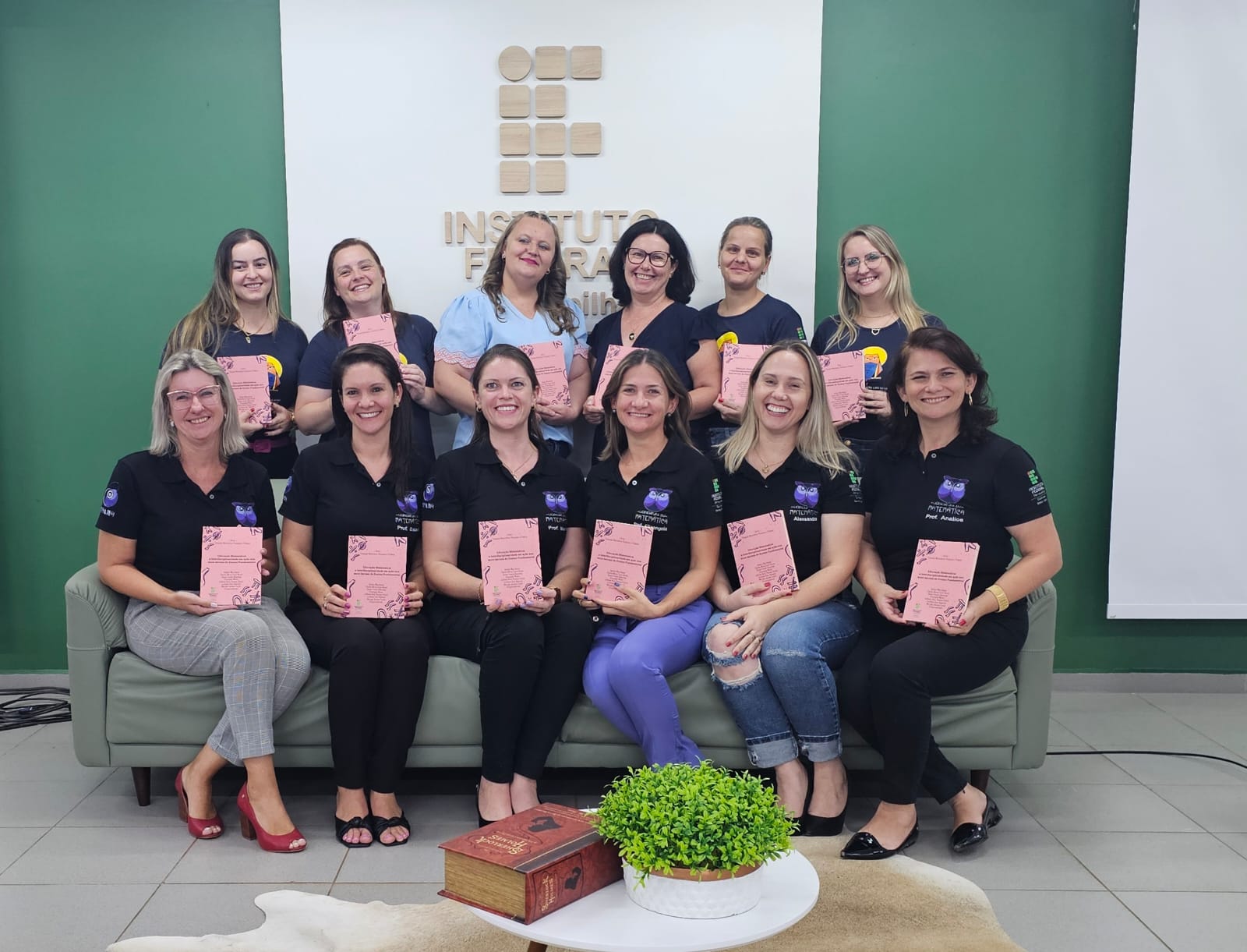 Para finalizar a programação rica e diversificada da noite, ocorreu o lançamento de novos livros da Série Educação Matemática: Pesquisas e Práticas, emergidos de produções no curso de Licenciatura em Matemática e da Pós-Graduação Lato Sensu em Educação Matemática, num trabalho colaborativo entre professores formadores, acadêmicos e pós-graduandos. Tendo como organizadoras as professoras Analice Marchezan, Cláudia Maria Costa Nunes, Daiani Finatto Bianchini, Elizangela Weber, Julhane Alice Thomas Schulz, Lucilaine Goin Abitante e Mariele Josiane Fuchs, as obras lançadas foram: (1) “Vivências com a Modelagem Matemática em Situações de Ensino e Aprendizagem”; (2) “Ressignificando o processo de avaliação em aulas de Matemática a partir da Análise de Erros”; e (3) “Educação Matemática: a interdisciplinaridade em ação nos Anos Iniciais do Ensino Fundamental”.