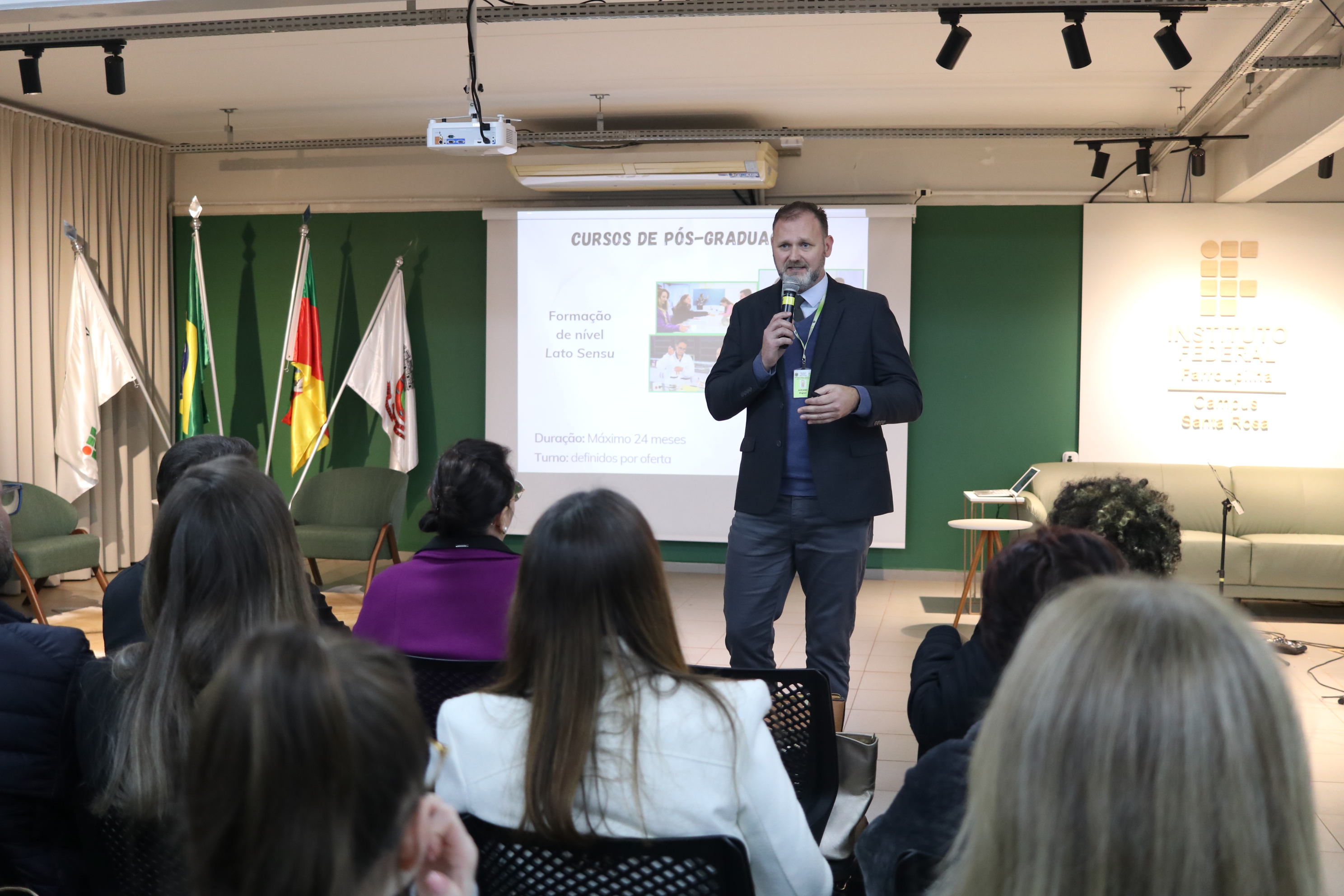 O evento foi organizado em duas partes. Na primeira, a equipe diretiva do Campus Santa Rosa realizou uma apresentação institucional. Foram detalhados cursos oferecidos, projetos de ensino, pesquisa, extensão e inovação realizados, indicadores institucionais com dados administrativos e de desempenho acadêmico da unidade.