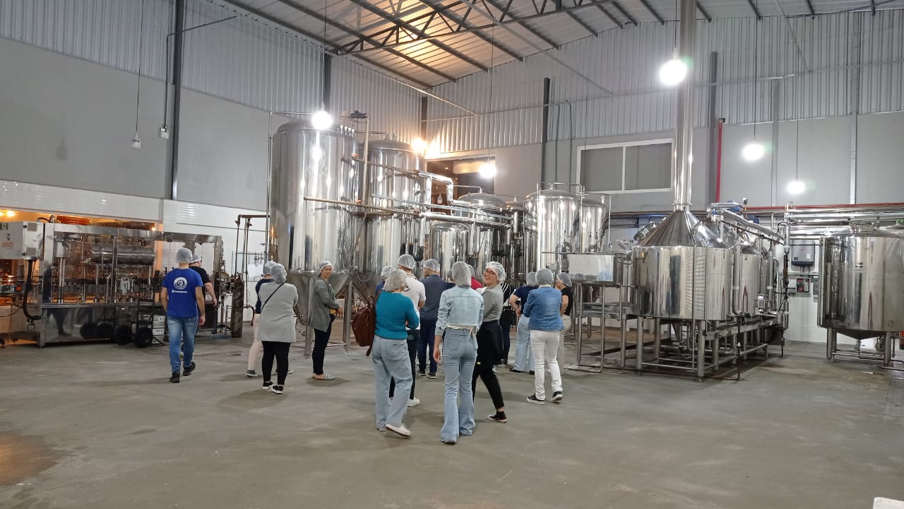 Os estudantes foram recebidos pela equipe da empresa que guiou a visita pelas instalações. O Mestre Cervejeiro e sócio proprietário, Ricardo Kerber, com formação em Gastronomia e cursos de especialização realizados na Alemanha e nos EUA, esclareceu que a produção de cerveja é muito significativa nesta região. Ricardo ainda destacou que há um crescimento do mercado artesanal desse produto, muito consumido também porque valoriza a história e a cultura dos imigrantes alemães.