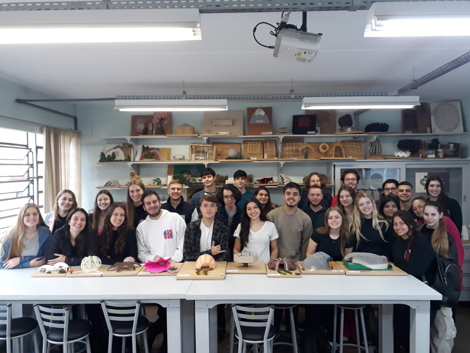 Alunos do 2º semestre curso bacharelado em Arquitetura e Urbanismo, realizaram aula prática, envolvendo inicialmente o estudo de modelagem arquitetônica, através da análise da forma e da estruturação de um elemento da natureza, e posteriormente, a busca de referencial teórico para conceituar e dar subsídios para a execução do protótipo a ser desenvolvido.