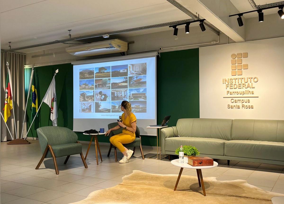 4º dia – Palestra “Fotografia”, com Roberta Gewher, de Porto Alegre/RS; Palestra “Cenografia”, com a arquiteta e urbanista, egressa do IFFar, Camila Brum, que atualmente trabalha em Florianópolis/SC.