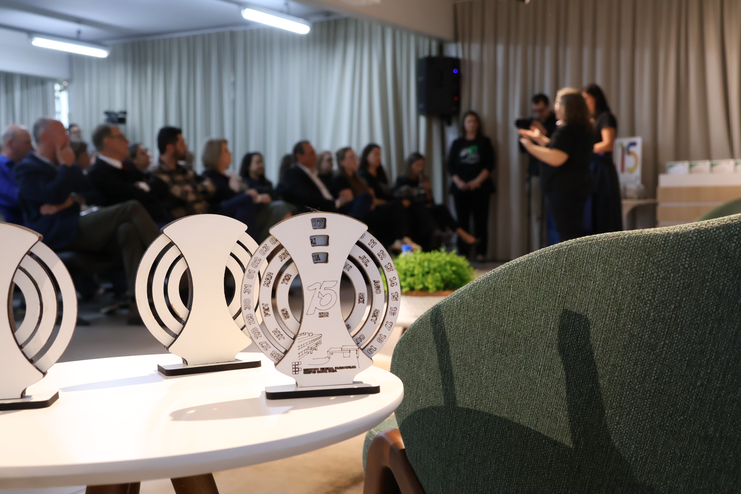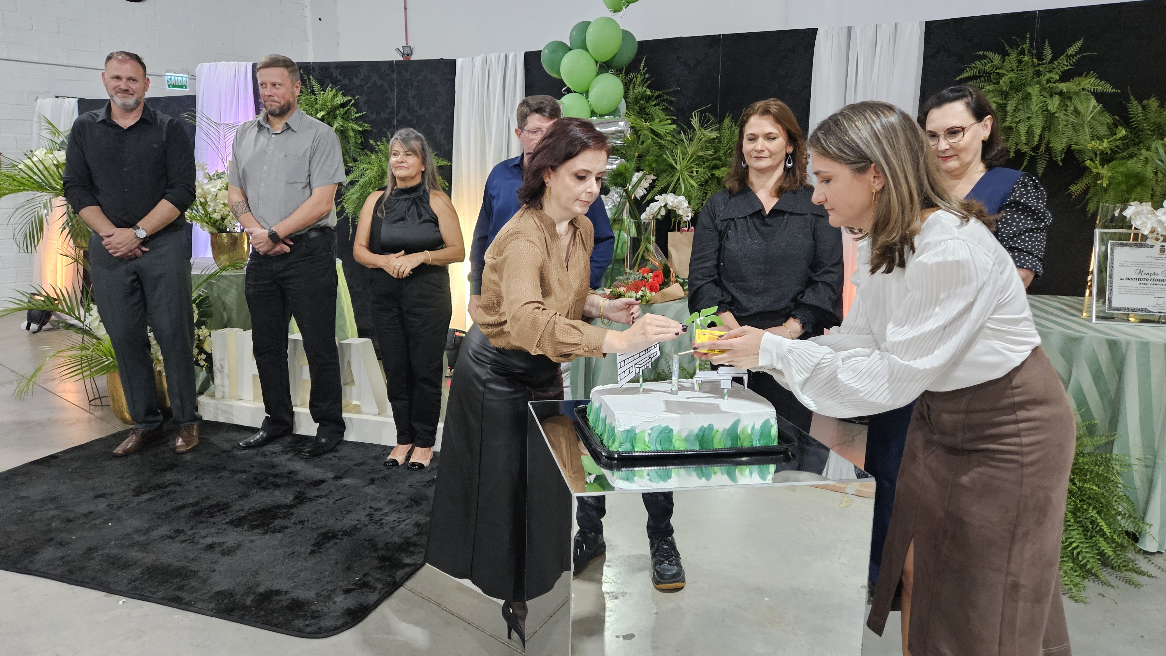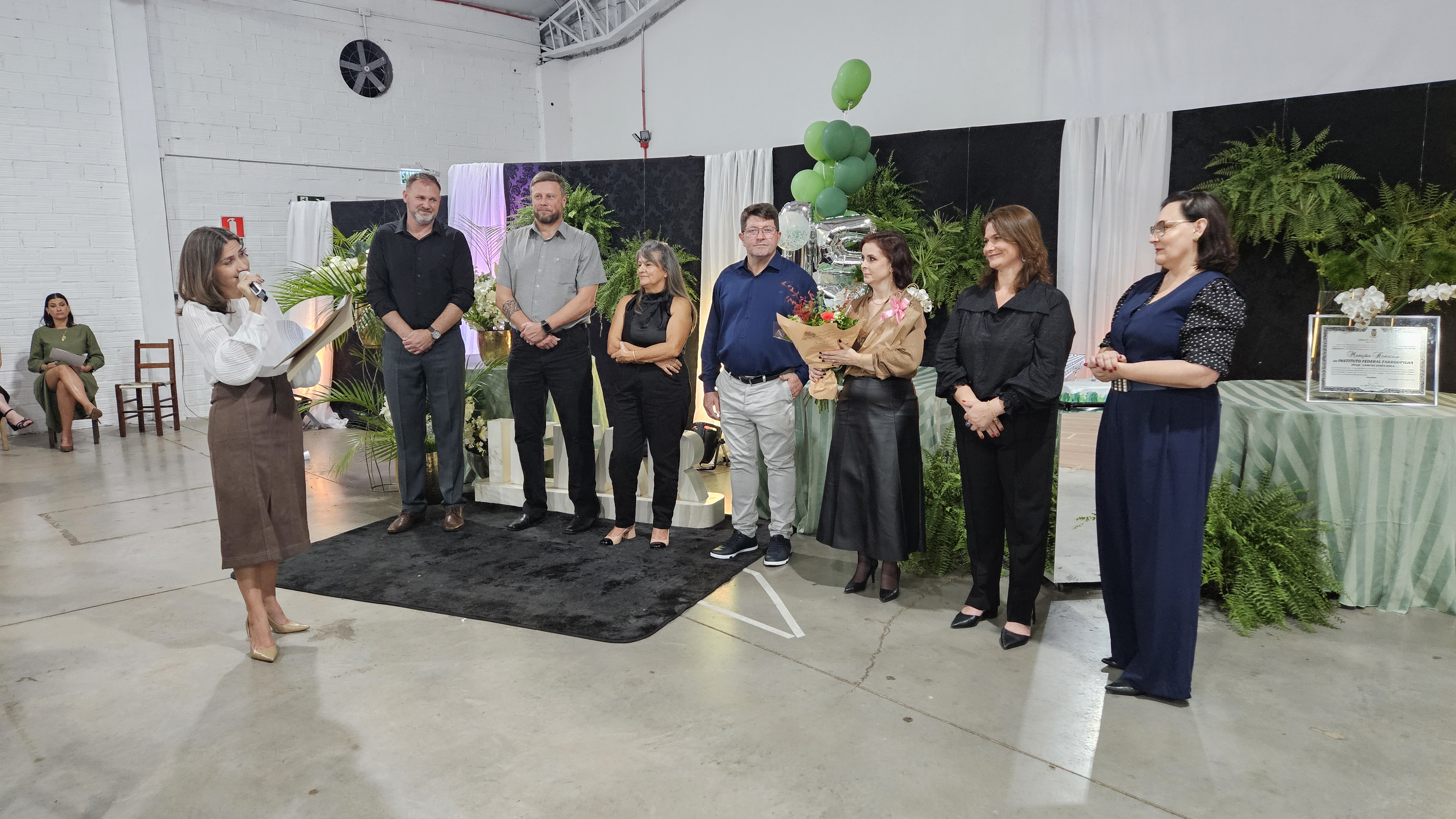 Durante a solenidade, também foi exibido um vídeo comemorativo com imagens da trajetória do campus e realizadas homenagens simbólicas, como a entrega de quadros confeccionados por alunos do curso de Móveis.