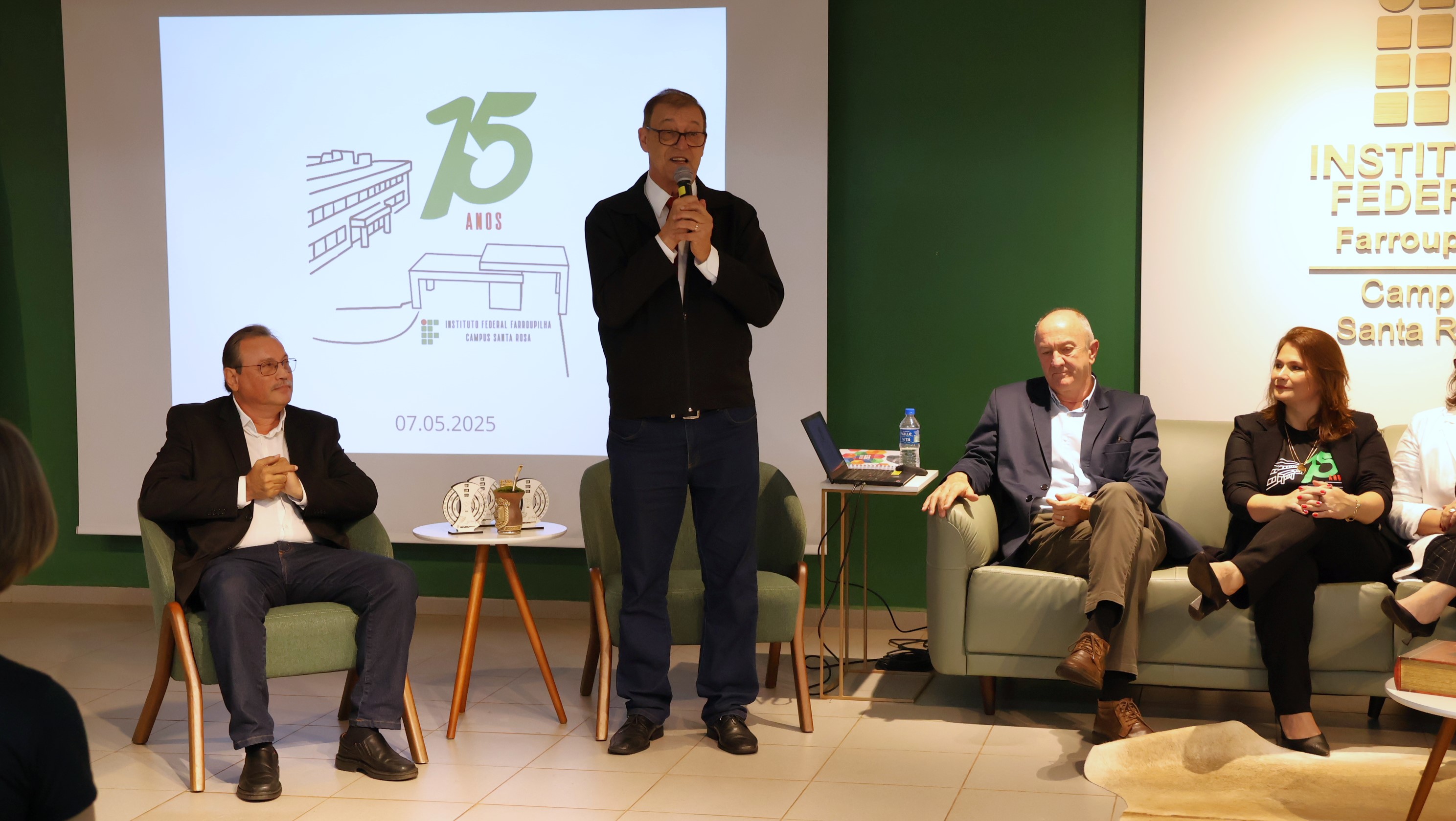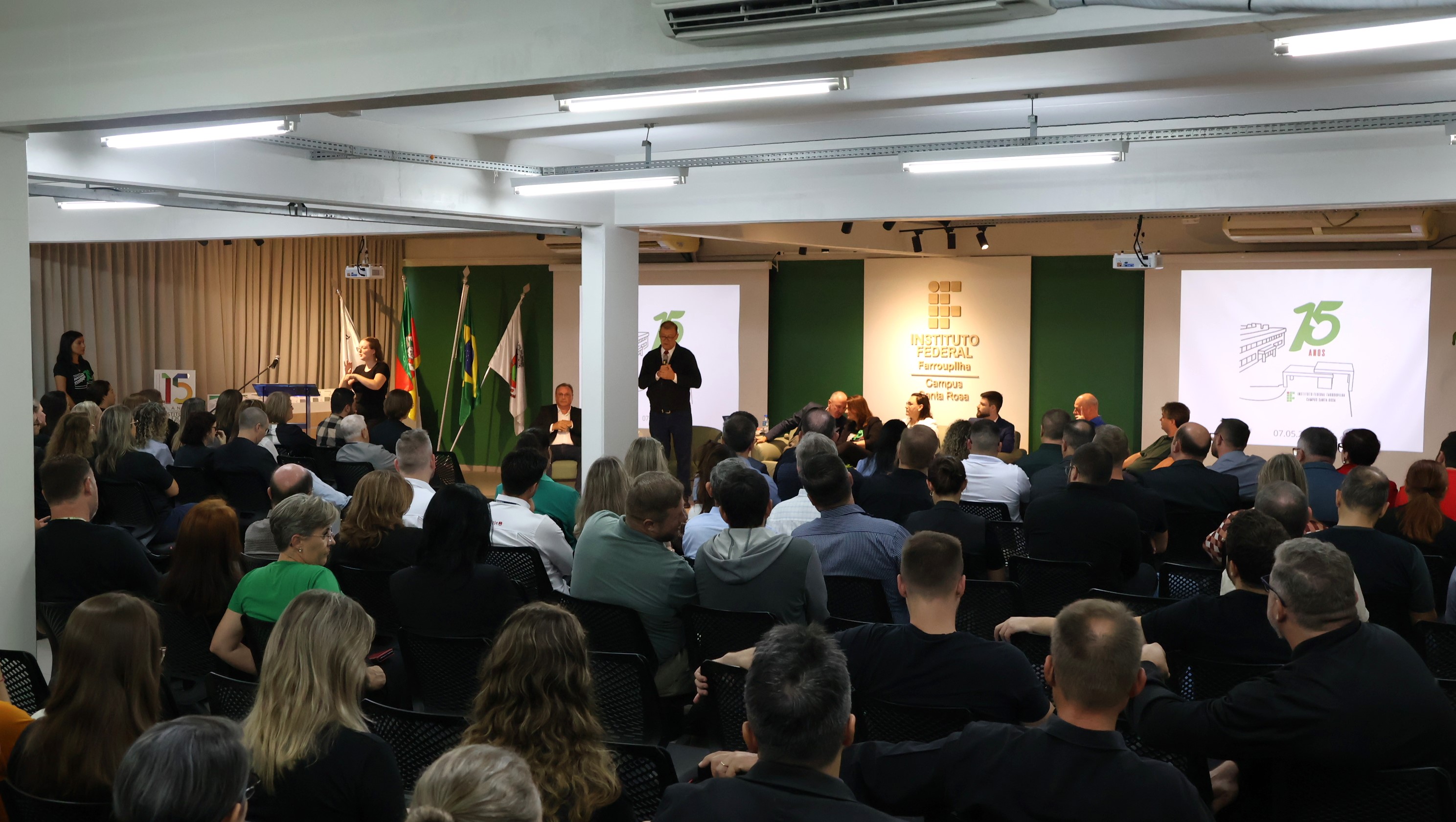 O Instituto Federal Farroupilha (IFFar) comemorou, nesta quarta-feira (7), os 15 anos de funcionamento do Campus Santa Rosa. A cerimônia oficial, realizada no auditório da unidade, reuniu autoridades, servidores, estudantes e representantes da comunidade regional para celebrar a trajetória da instituição, marcada pelo compromisso com a educação pública, gratuita e de qualidade.