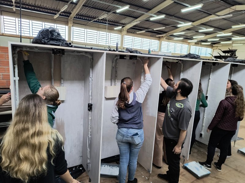 No dia 03/06, os alunos do 3º semestre do curso de Bacharelado em Arquitetura e Urbanismo do IFFar mergulharam em uma experiência prática enriquecedora! Durante a aula, colocaram a mão na massa e aprenderam técnicas de pintura aplicadas, preparando as cabines de instalações elétricas que serão usadas em futuras aulas práticas.