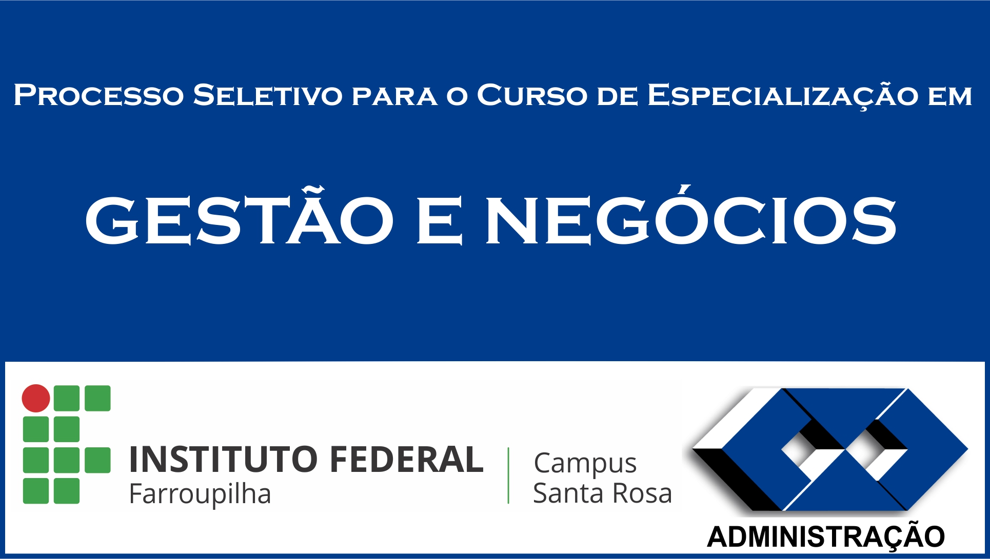 O objetivo do curso é formar Especialistas em Gestão e Negócios que possam atuar com visão e expertise estratégica no gerenciamento de organizações. Para concorrer a vaga, o candidato deve possuir curso de graduação, preferencialmente nas áreas de Administração, Economia, Contabilidade ou Engenharias. O processo seletivo será realizado por meio de prova dissertativa, análise de currículo e carta de intensões, seguindo o cronograma disponível no edital.