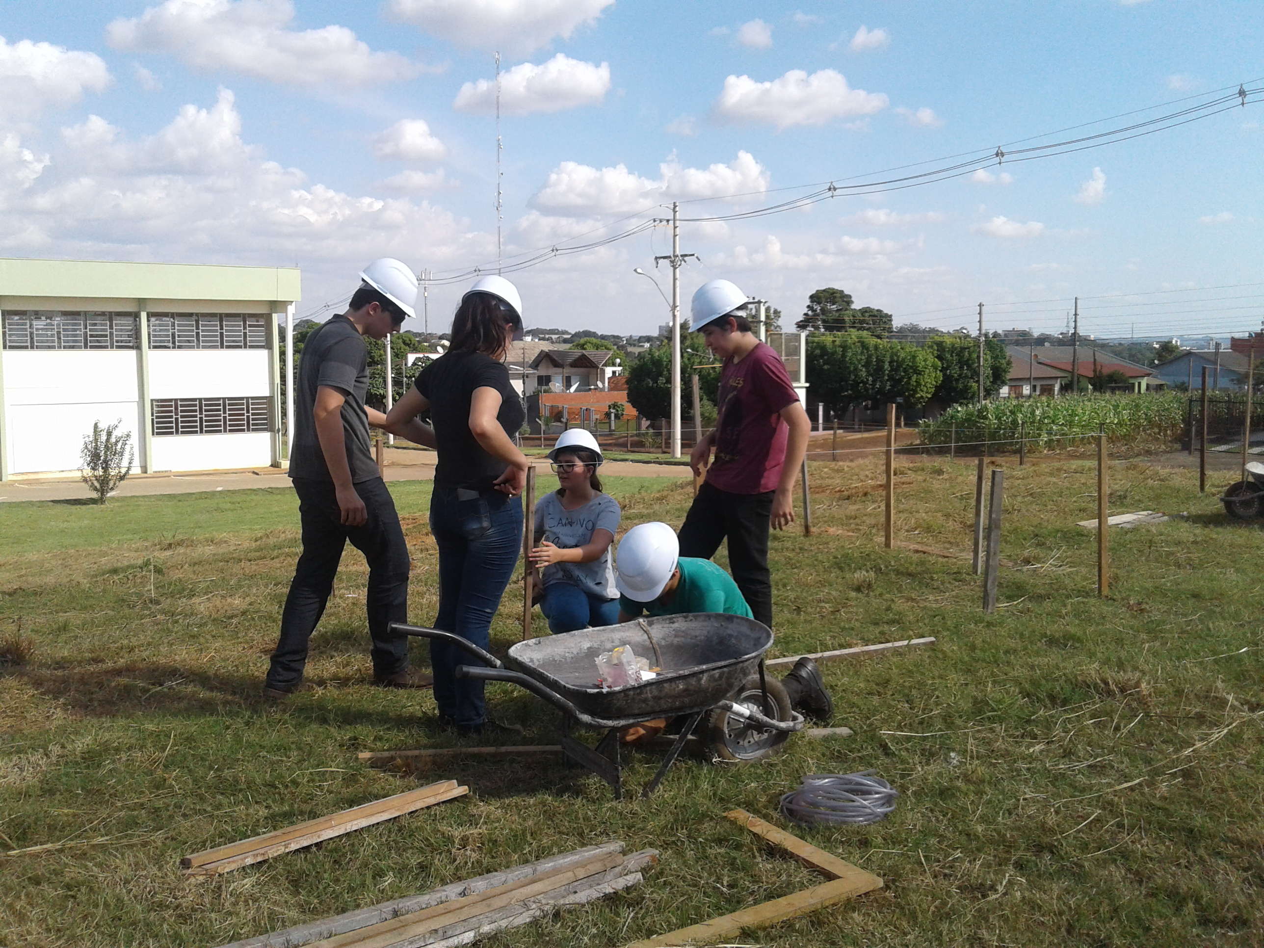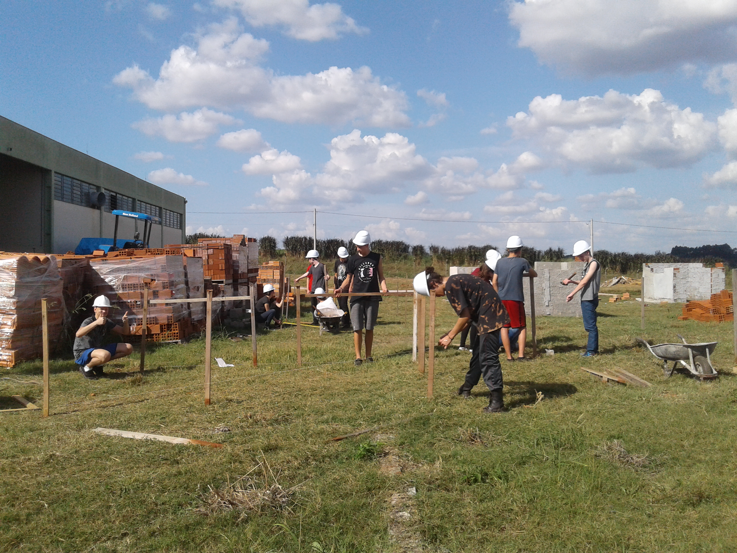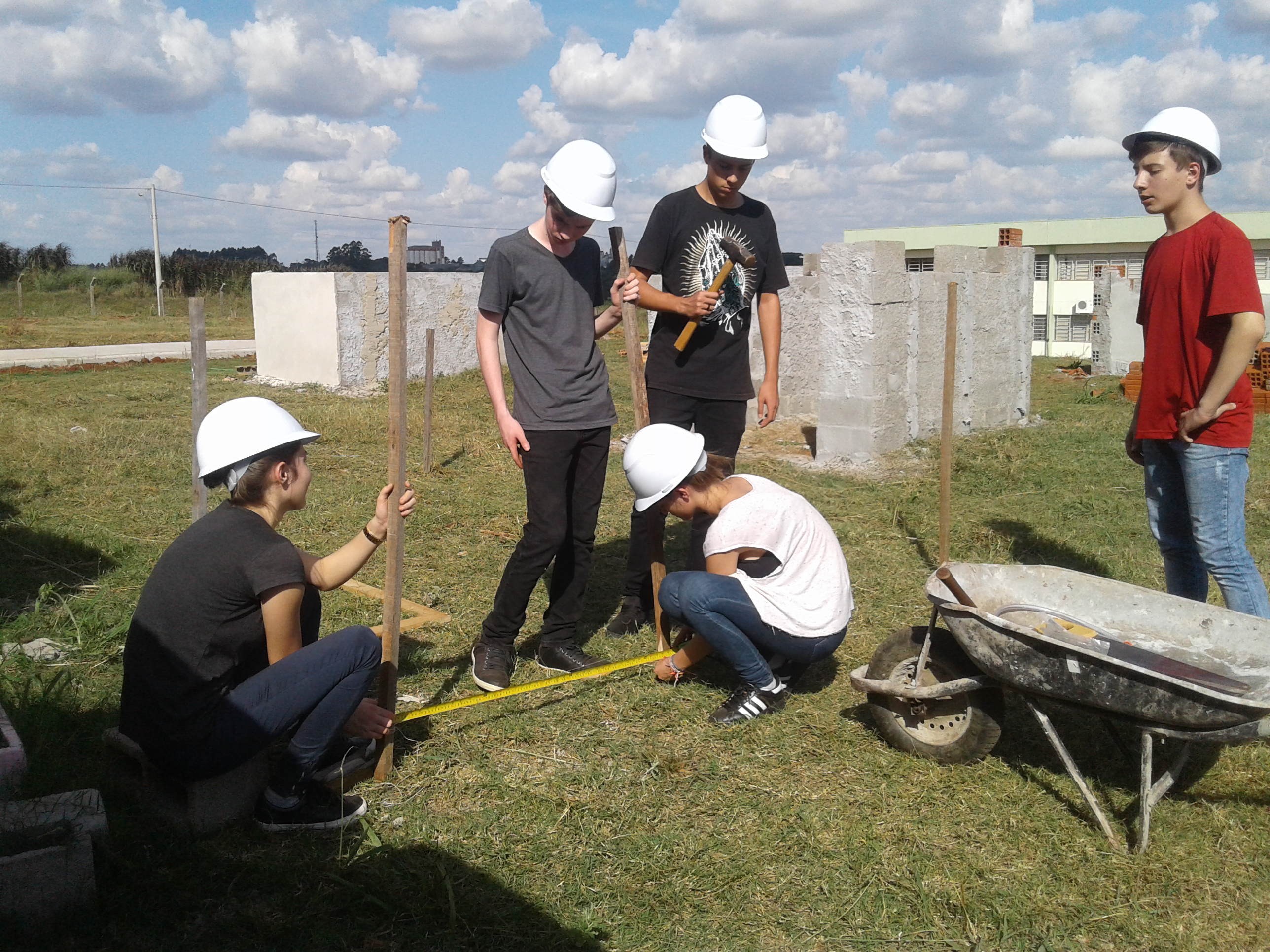 Na sexta-feira (27/04), os alunos da 9ª turma do curso Técnico em Edificações da modalidade Integrado, orientados pela professora Neidi Kunkel, vivenciaram sua primeira atividade prática, como técnicos. A atividade desenvolvida foi um serviço de Locação de Obras, na disciplina de Materiais e Técnicas Construtivas I, ocorrida na área externa do campus, próximo aos Laboratórios de Móveis e Edificações.