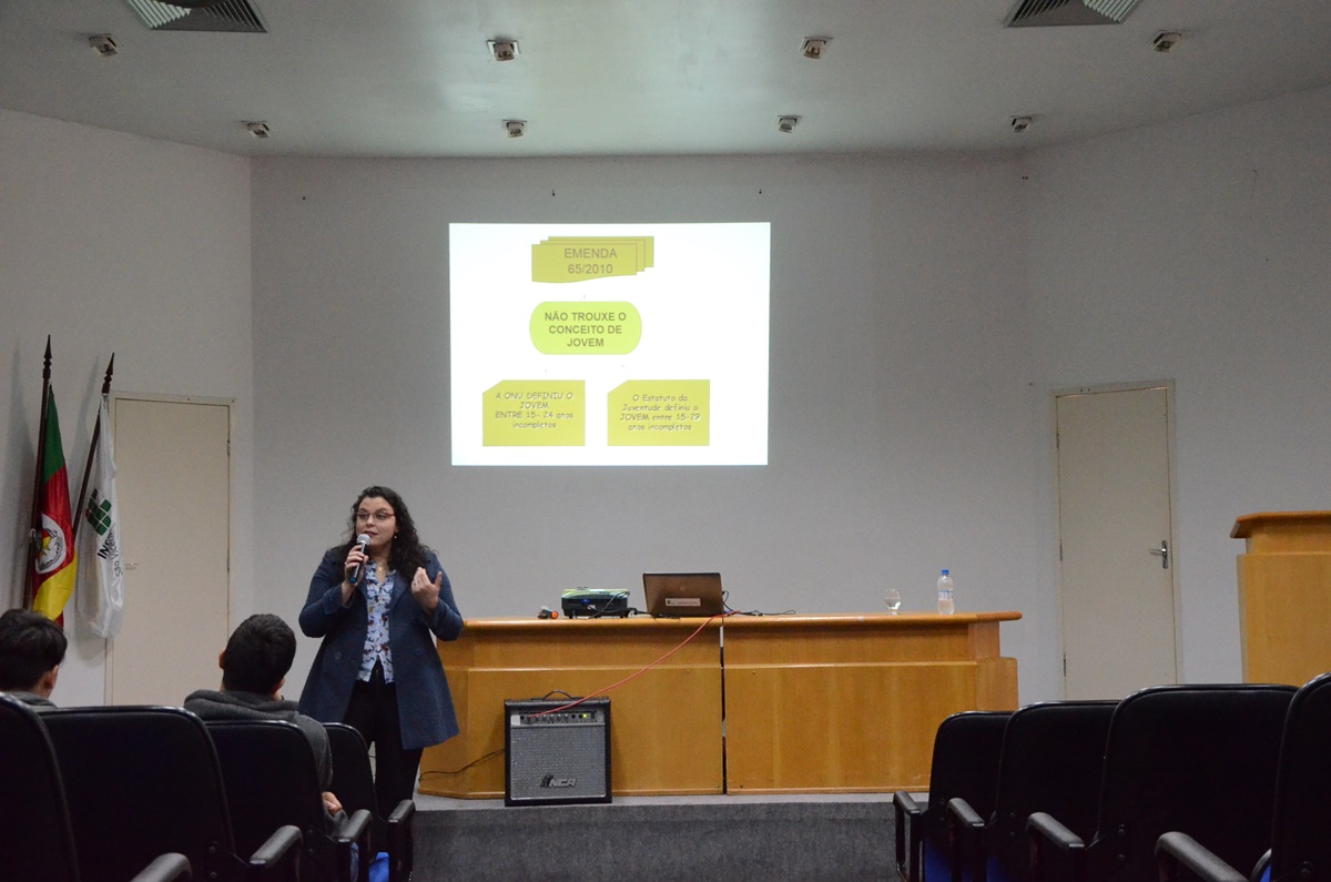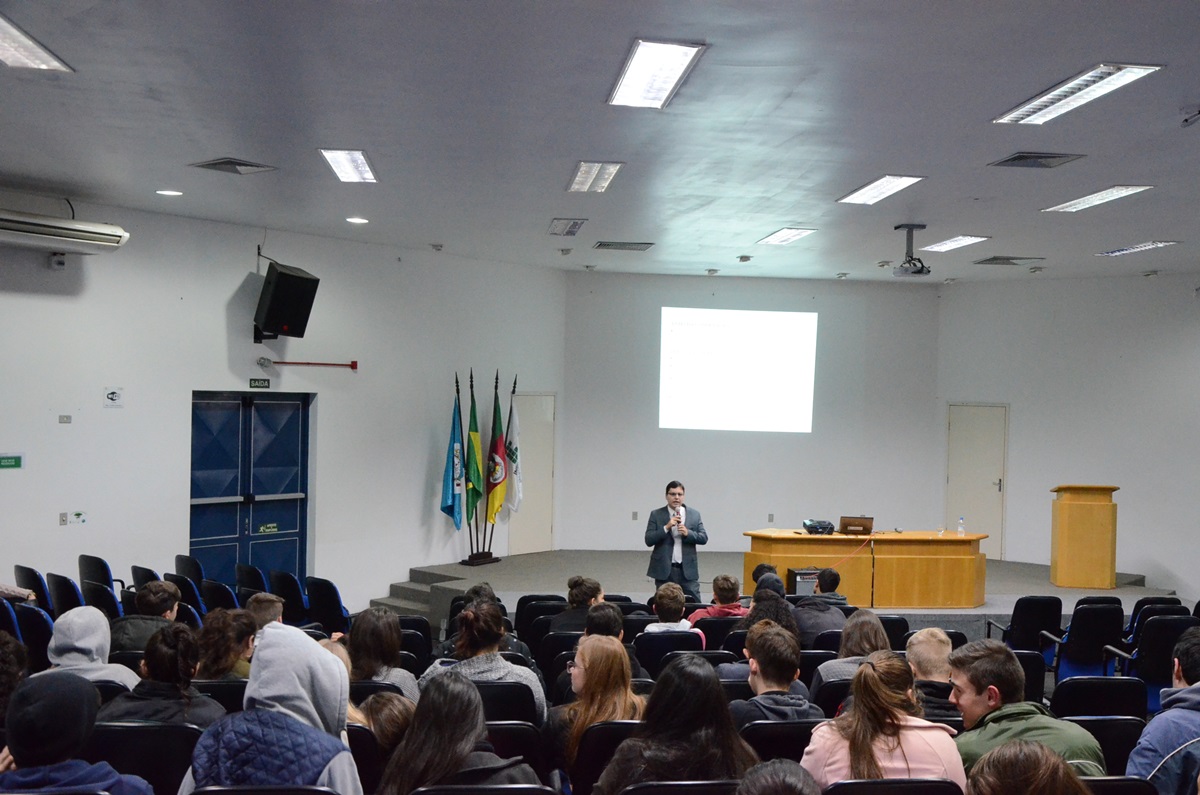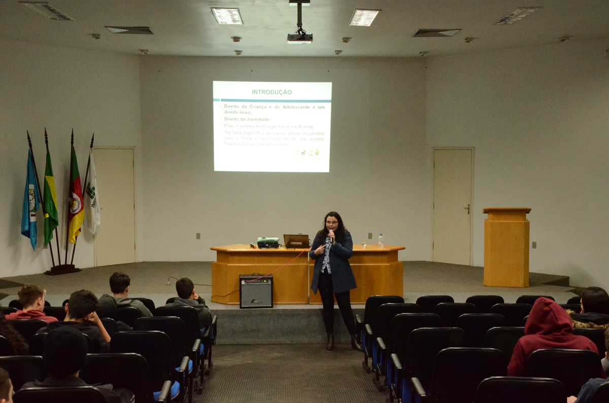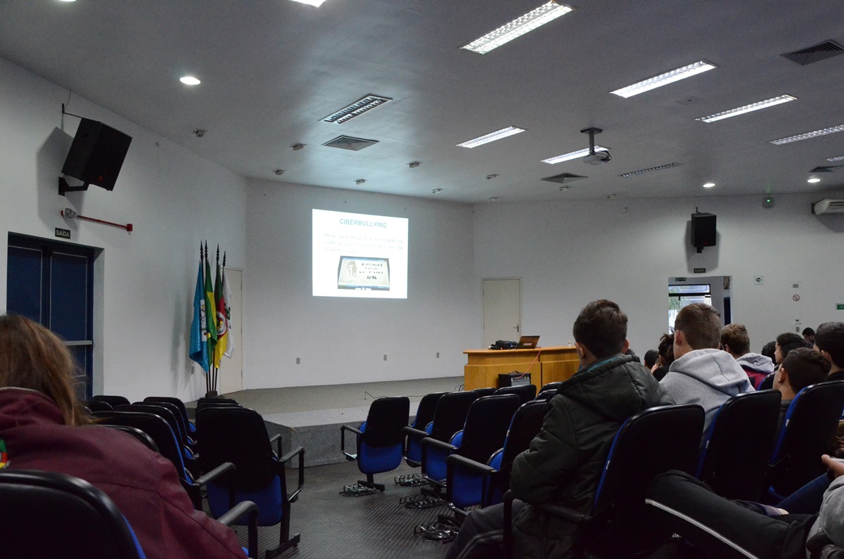 Na tarde desta terça-feira, dia 31 de julho, as turmas de 1º anos dos Cursos Técnicos Integrados do Instituto Federal Farroupilha – Campus São Vicente do Sul participaram de atividade de retorno às aulas, que consistiu em roda de conversa sobre os riscos e os descontroles do ciberespaço, com Patrícia dos Reis, da Cátedra de Direitos Humanos da Universidade Metodista de Santa Maria, além da palestra “Aspectos legais e procedimentais da Lei nº 11.343/06 (nova Lei de Drogas)”, com o juiz de direito da Comarca de São Vicente do Sul, Thiago Tristão Lima.