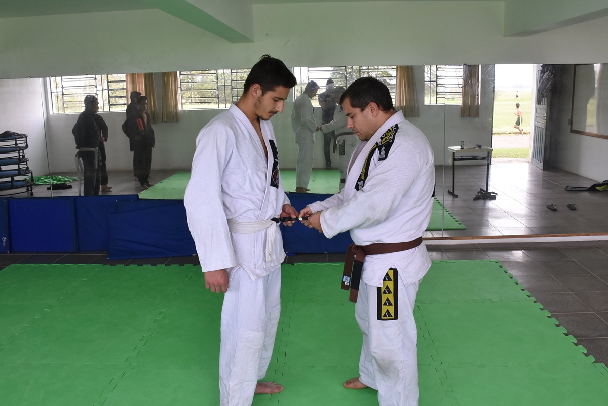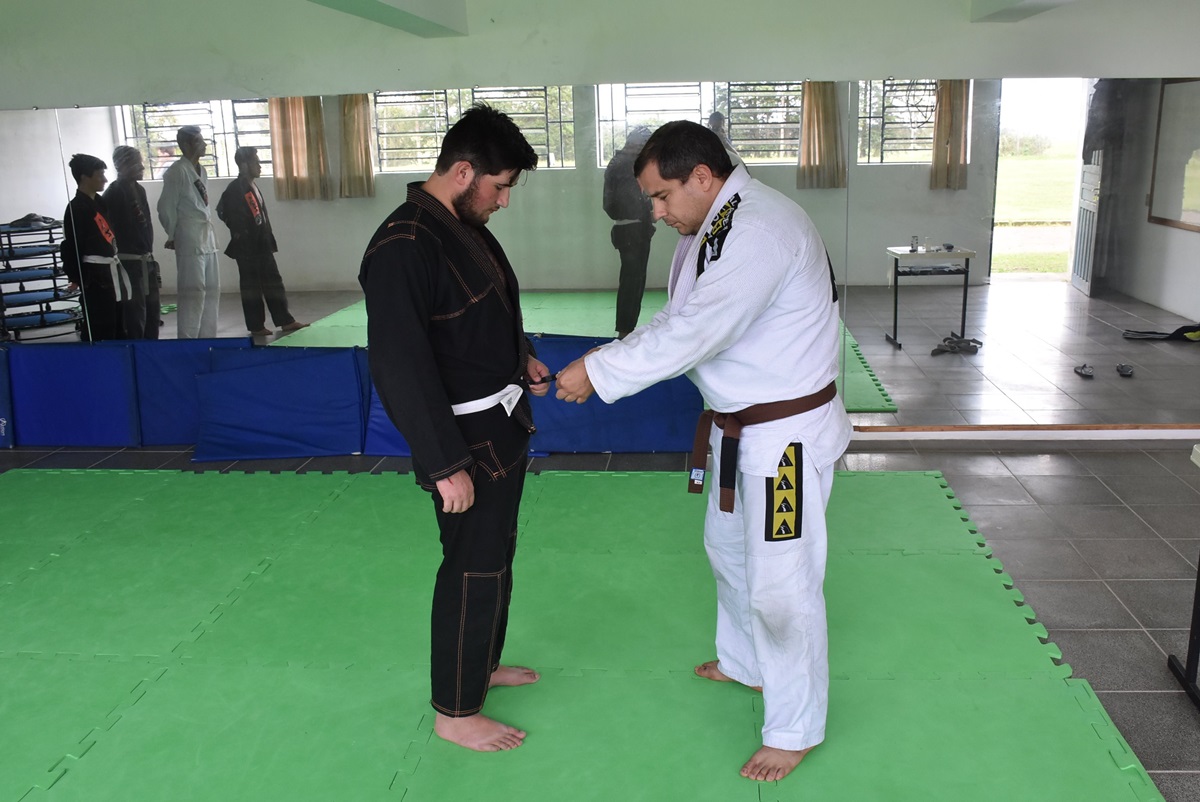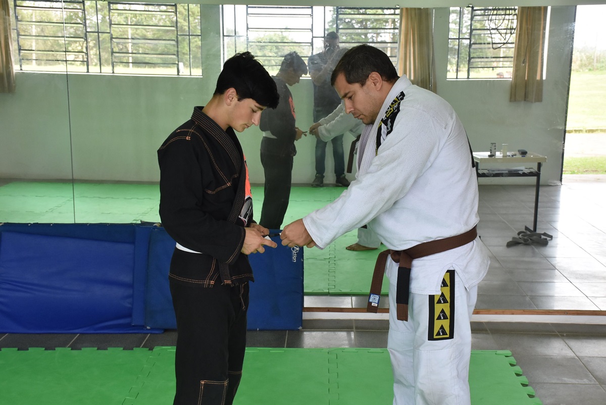 Na manhã do dia 26 de setembro, cinco estudantes do Instituto Federal Farroupilha – Campus São Vicente do Sul receberam graus na faixa branca de jiu-jítsu, através do projeto de ensino "Ensino e Treinamento das Lutas", coordenado pelo professor Cleiton Correa. Desde março, o projeto vem proporcionando aos alunos um espaço para a prática de jiu-jítsu, na intenção de auxiliá-los a incorporar um estilo de vida ativo em suas rotinas.