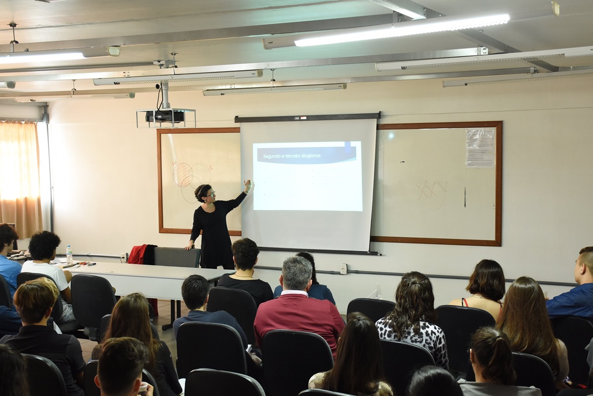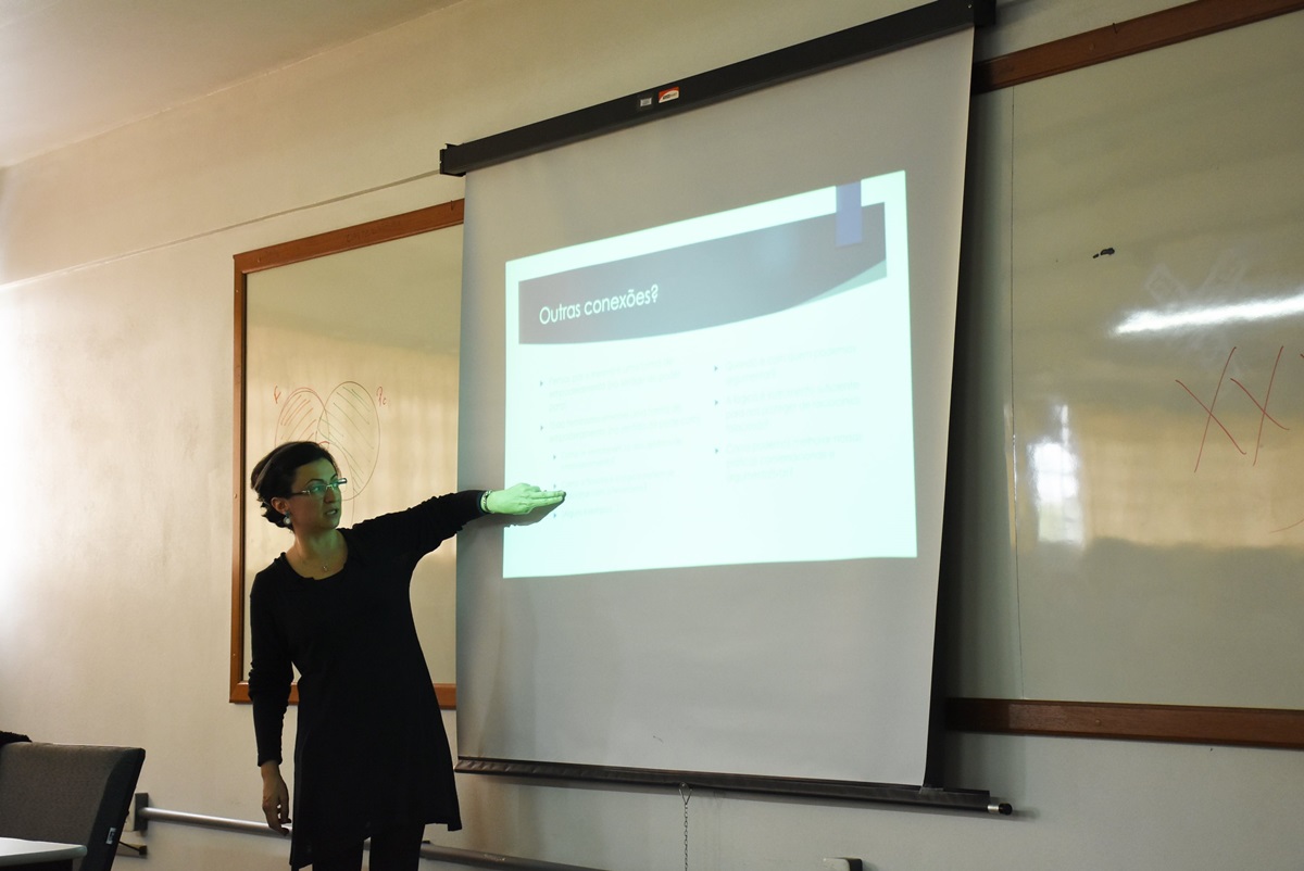 Na oportunidade, após delimitar o conceito de feminismo(s) como a luta comum pela igualdade de direitos entre os sexos e abordar os usos sociais da palavra “empoderamento”, profª Gisele buscou traçar uma relação entre o raciocínio lógico e o feminismo, a fim de aproveitar o que essa ferramenta de organização do pensamento pode trazer de benefícios às demandas dos movimentos feministas. Um dos objetivos dela foi demonstrar como a estrutura lógica é algo empoderador. “A lógica empodera o pensamento; o feminismo empodera as mulheres”, induz ela.