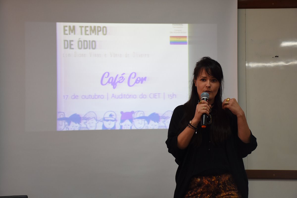 Ligado ao Núcleo de Gênero e Diversidade Sexual (NUGEDIS), o Café Cor é um projeto de ensino que busca proporcionar aos discentes, servidores do campus e comunidade em geral um espaço para a discussão e a partilha de experiências que permitem visualizar o preconceito, a discriminação e a violência contra a população LGBT+.