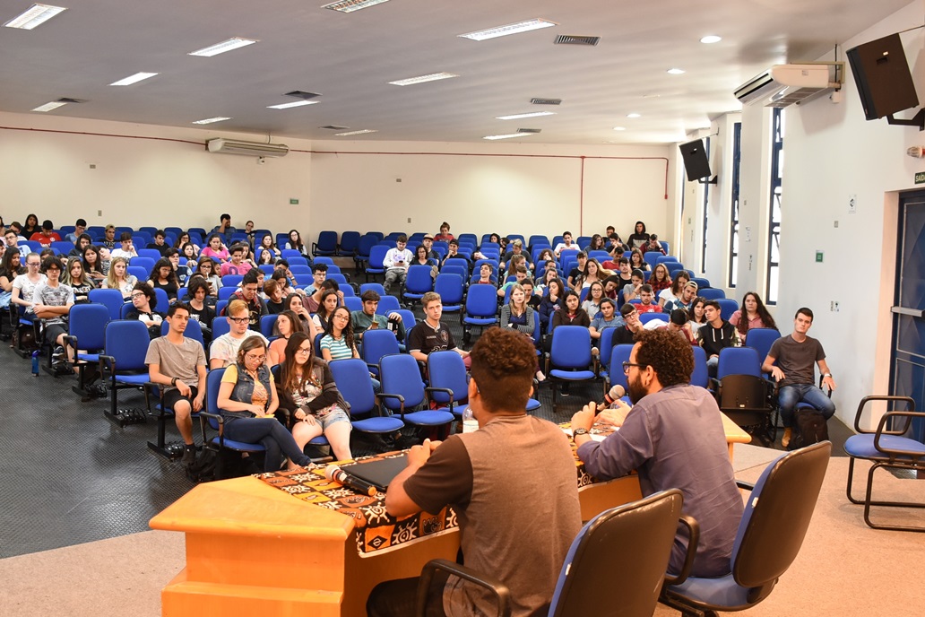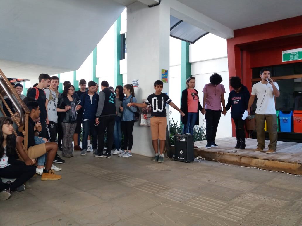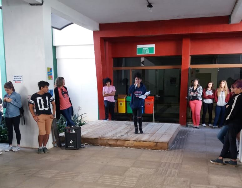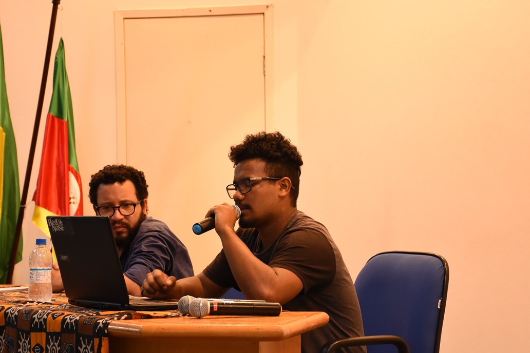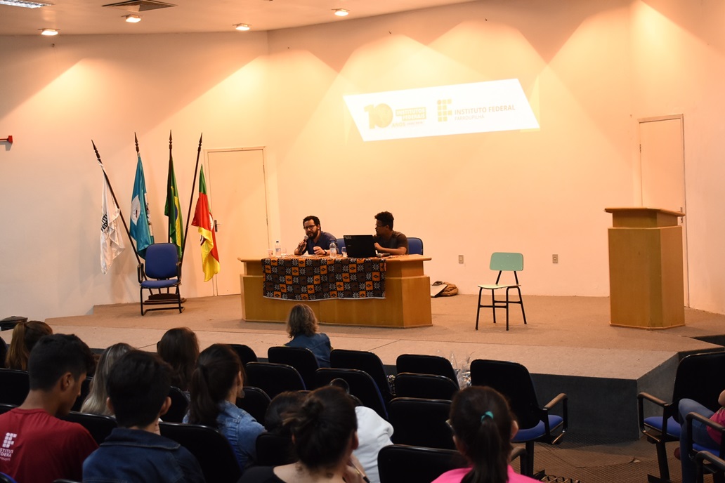 Já no dia 14, aconteceu a palestra A presença de comunidades Quilombolas no Rio Grande do Sul e Brasil, ministrada por Igor Sousa, doutorando da UFRGS. Mais do que trazer aspectos de quilombos em contextos rurais e urbanos, Igor procurou apontar como a cor da pele tem relevância quando pensamos nas diferenças de classe, nos estereótipos criados através das representações midiáticas e no acesso a oportunidades, por exemplo. Na ocasião, o aluno Josué dos Santos Amaral, da turma 2º MSI A, realizou leitura de um conto autoral, chamado O grande Ato.