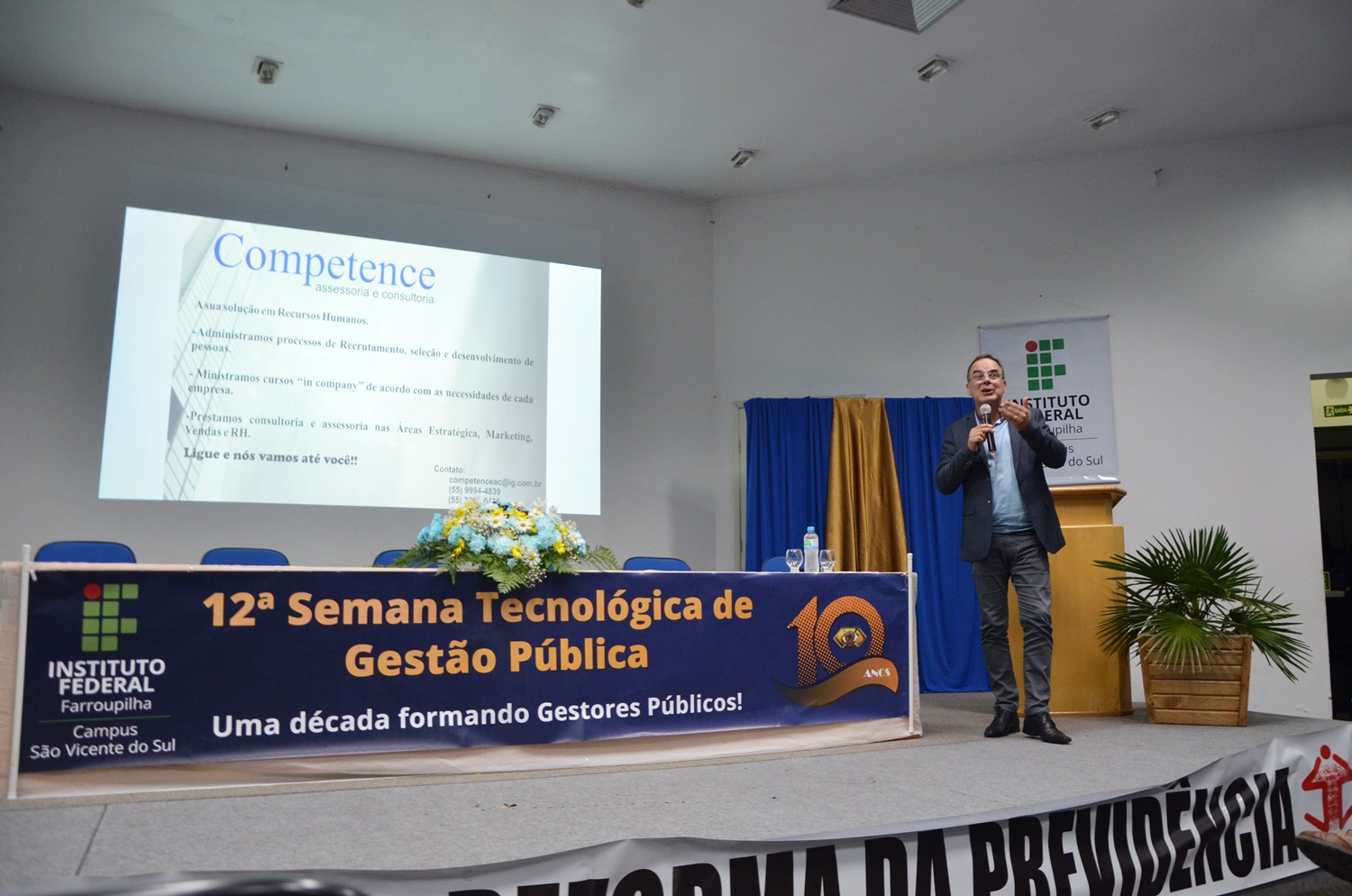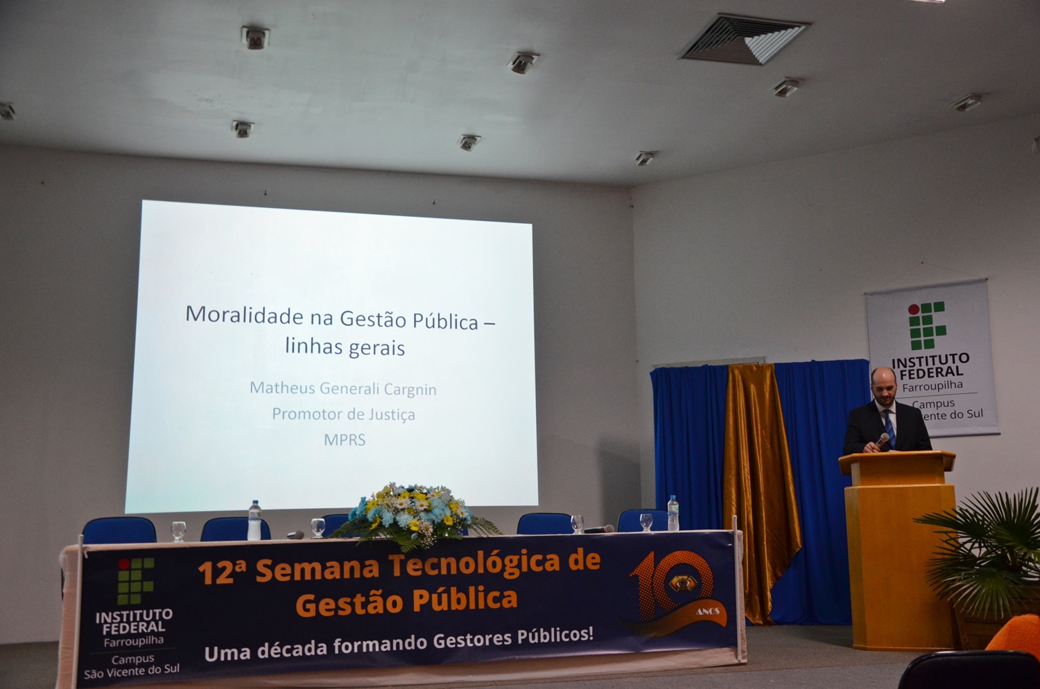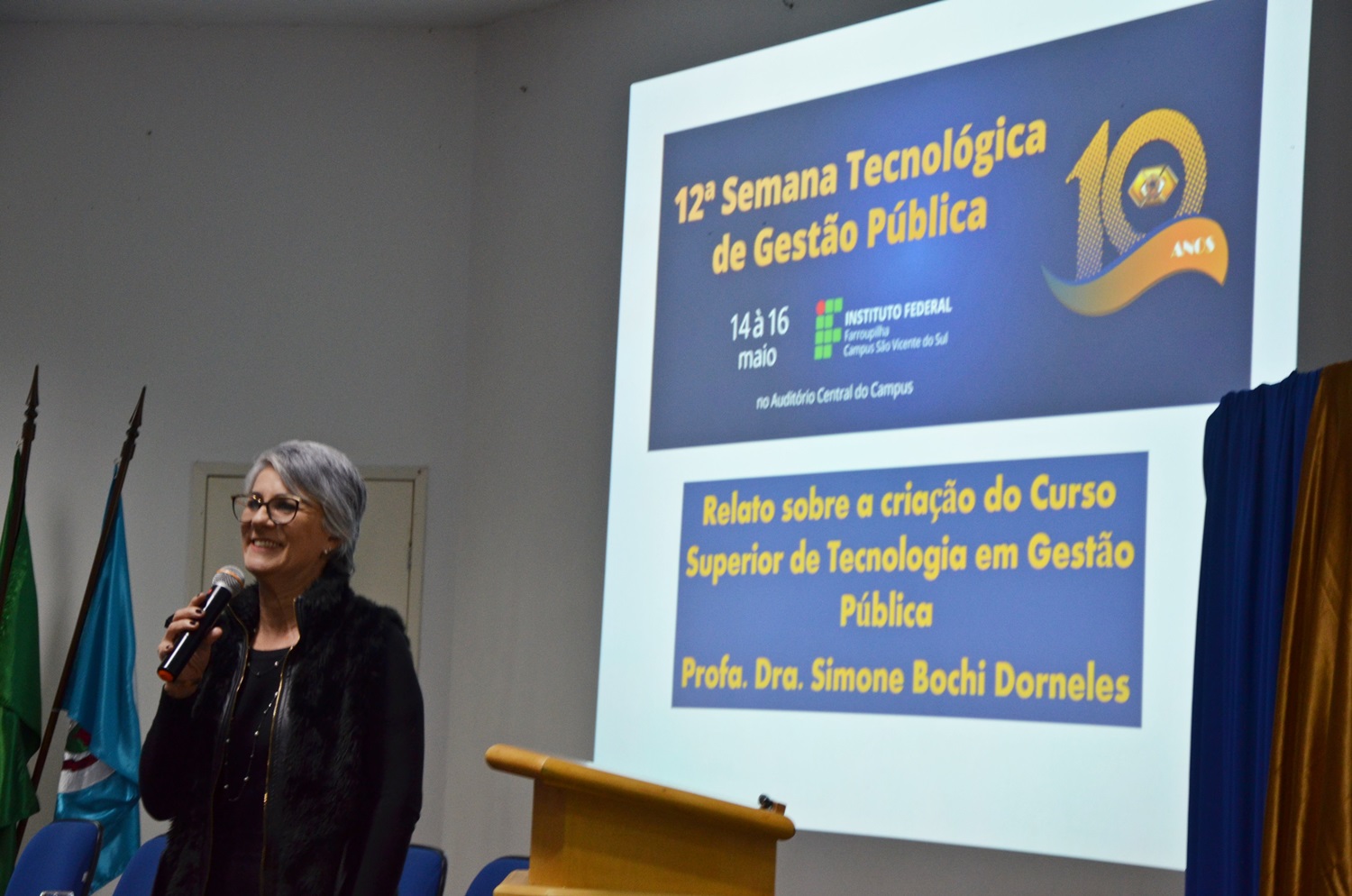 A edição deste ano foi especial pois comemorou os 10 anos de formação do Curso Superior de Tecnologia em Gestão Pública no Campus São Vicente do Sul. Na primeira noite de evento, a professora Simone Bochi Dorneles rememorou o processo de implantação do curso, iniciado em 2008, assim como sua evolução (veja no anexo alguns fatos marcantes, as publicações da GP, etc).