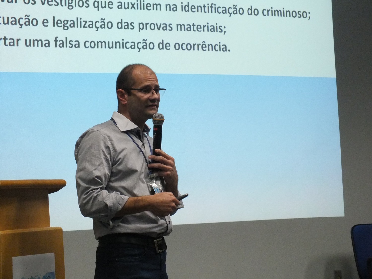 Os participantes também tiveram a oportunidade de obter noções básicas sobre impressões digitais e coleta papiloscópica, com Fábio Pereira da Silva, da 5ª Coordenadoria Regional de Perícias (5ª CRP).