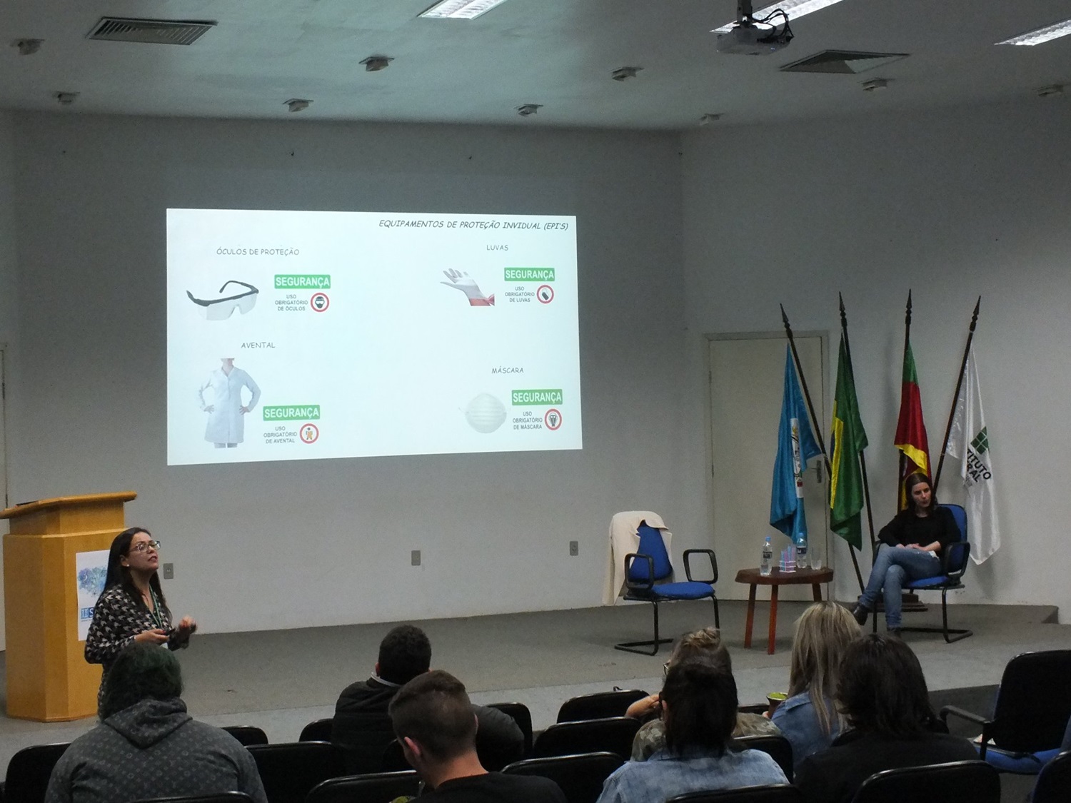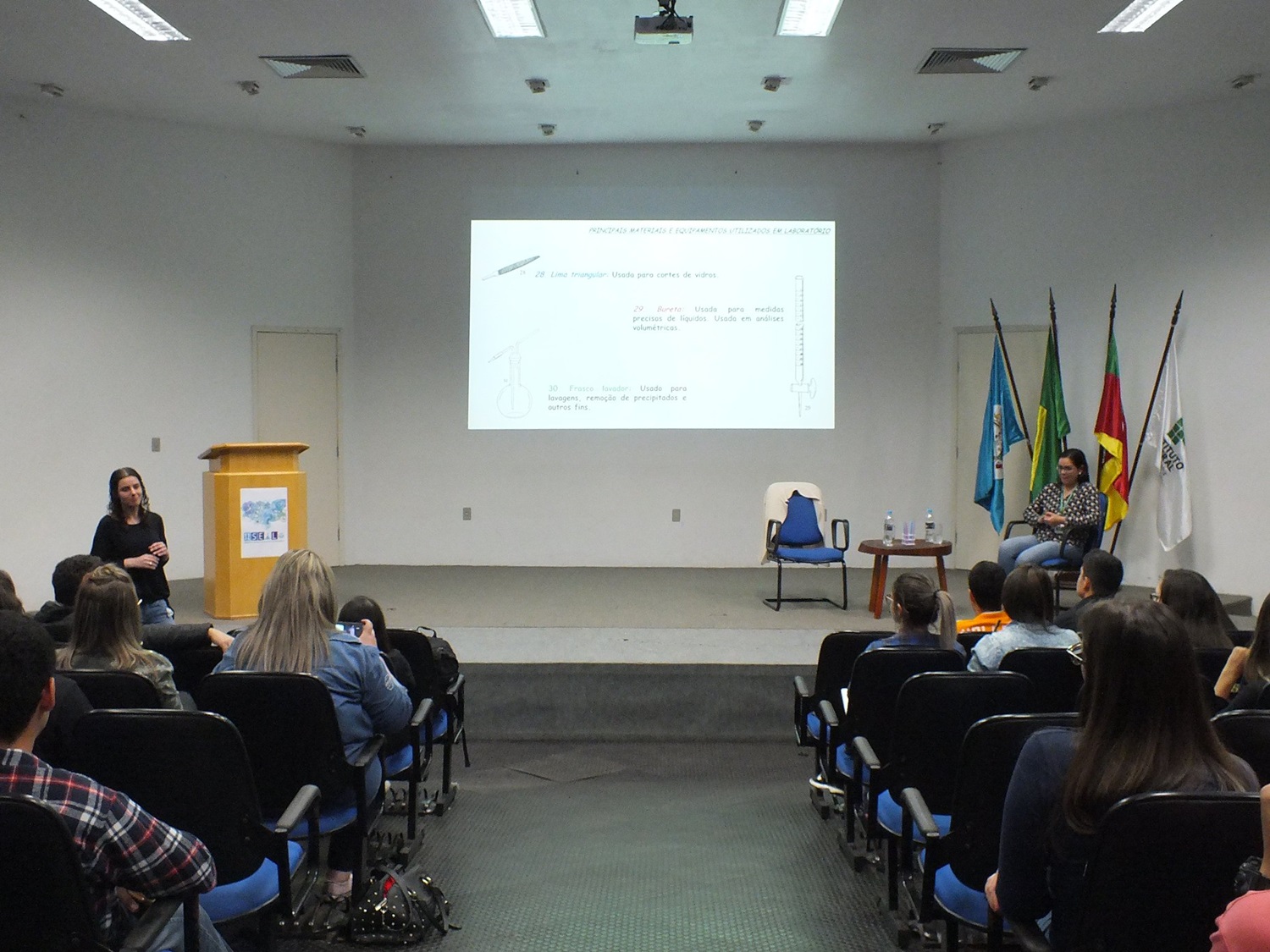 Durante o evento, houve um momento reservado a reflexões sobre práticas laboratoriais, conduzido pela professora Lenice de Lourenço Marques, também coordenadora do curso de Licenciatura em Química, e pela técnica em laboratório Daniela do Amaral Friggi, ambas servidoras da unidade SVS.