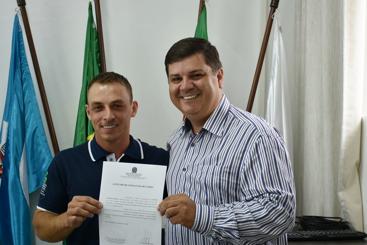 Na quarta-feira, dia 22 de janeiro, o Campus São Vicente do Sul realizou a solenidade de colação de grau de gabinete de Júlio Cesar Nunes Flores, em Licenciatura em Ciências Biológicas; e dos cinco primeiros bacharéis em Agronomia do Instituto Federal Farroupilha: Camila Bisognin Meneguetti, Eduardo Castiglioni Monteiro, Felipe Tascheto Bolzan, Marisa Ana Strahl e Izabelle Scheffer Romagna. O evento aconteceu às 10h, no Gabinete da Direção Geral.