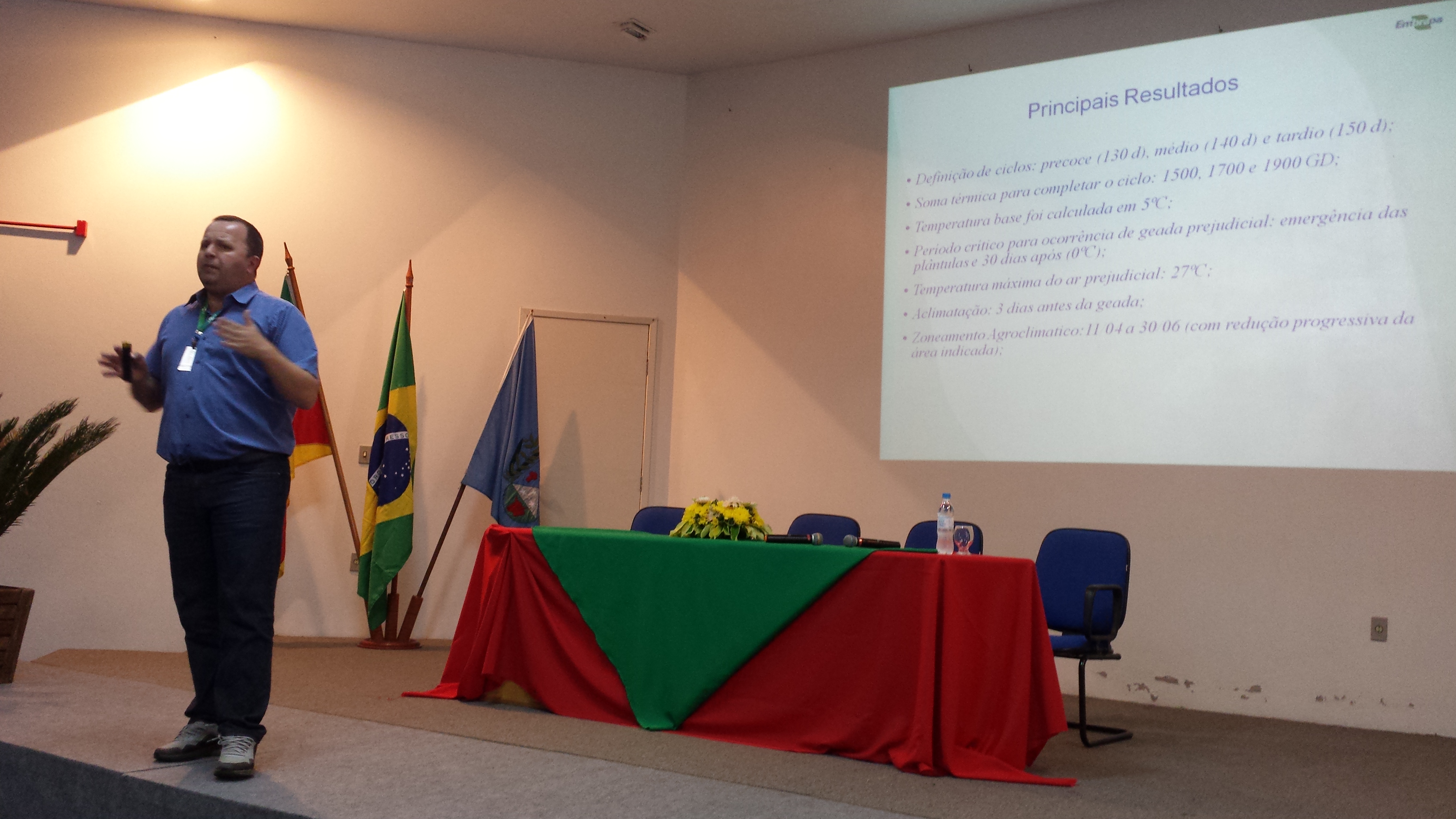 À tarde foram proferidas palestras para os estudantes, intituladas “Implicações ecofisiológicas do cultivo da canola em solos com potencial de alagamento”, pelo pesquisador Jorge Alberto de Gouvêa, e “Estratégias de pesquisa para aprimoramento do zoneamento agrícola da canola”, a cargo do pesquisador Genei Antônio Dalmago.