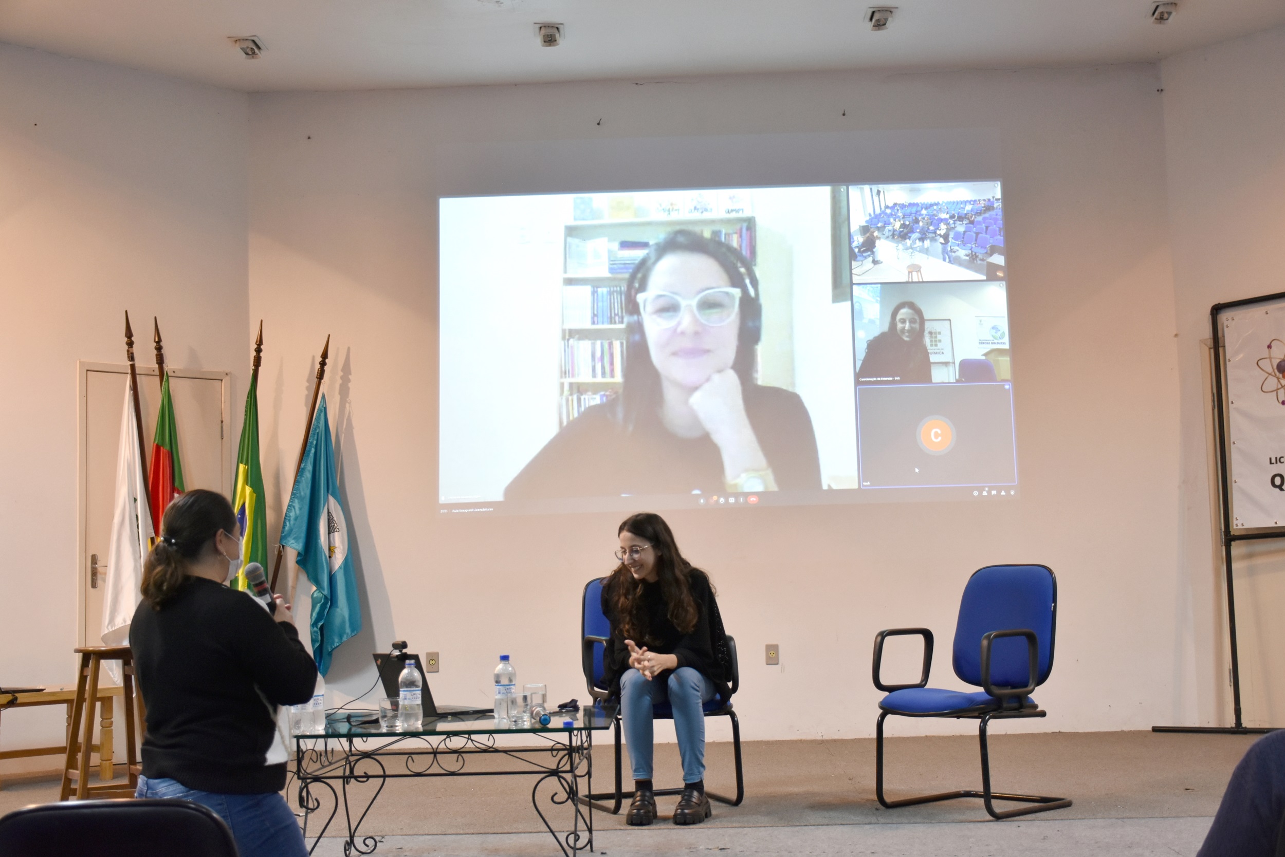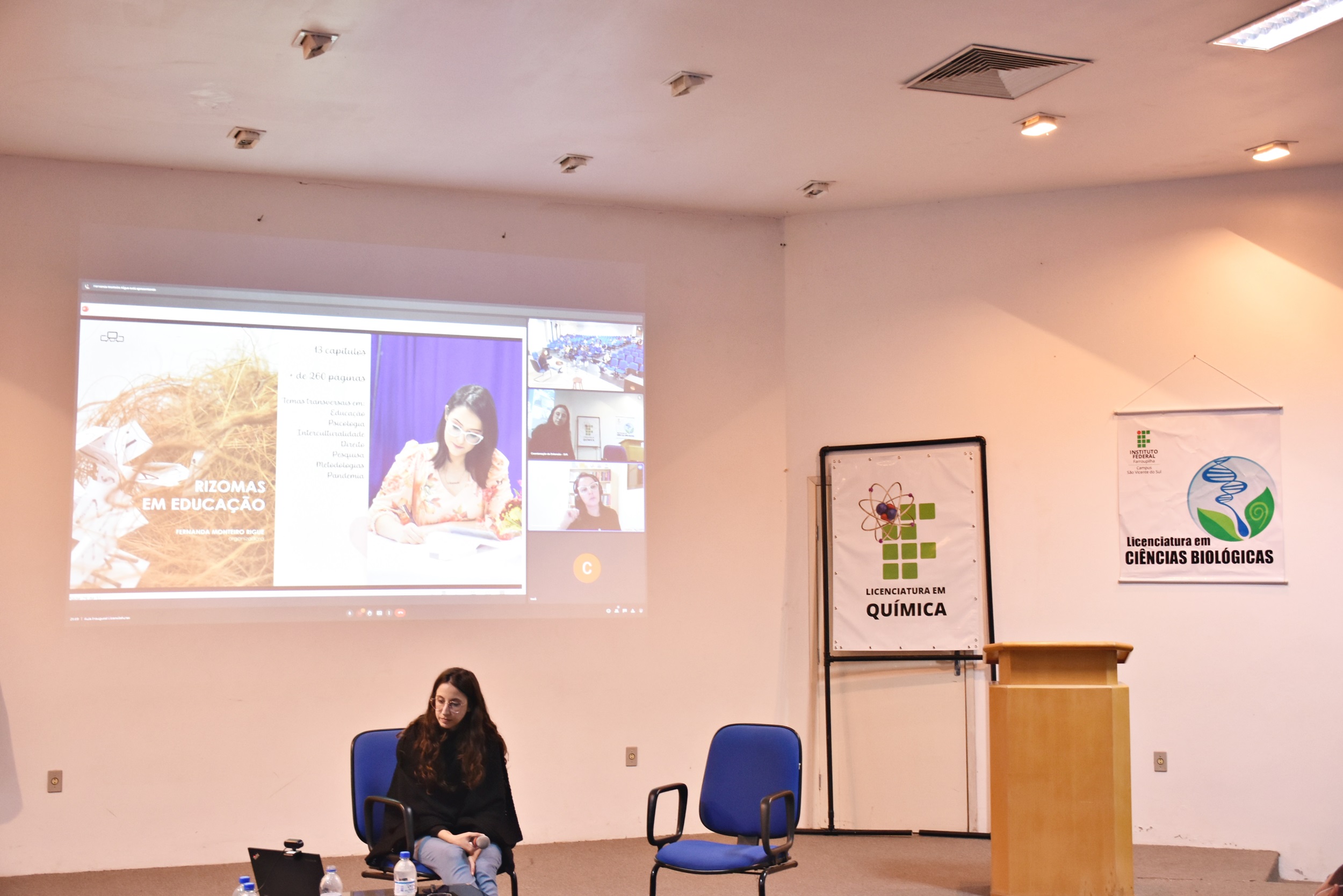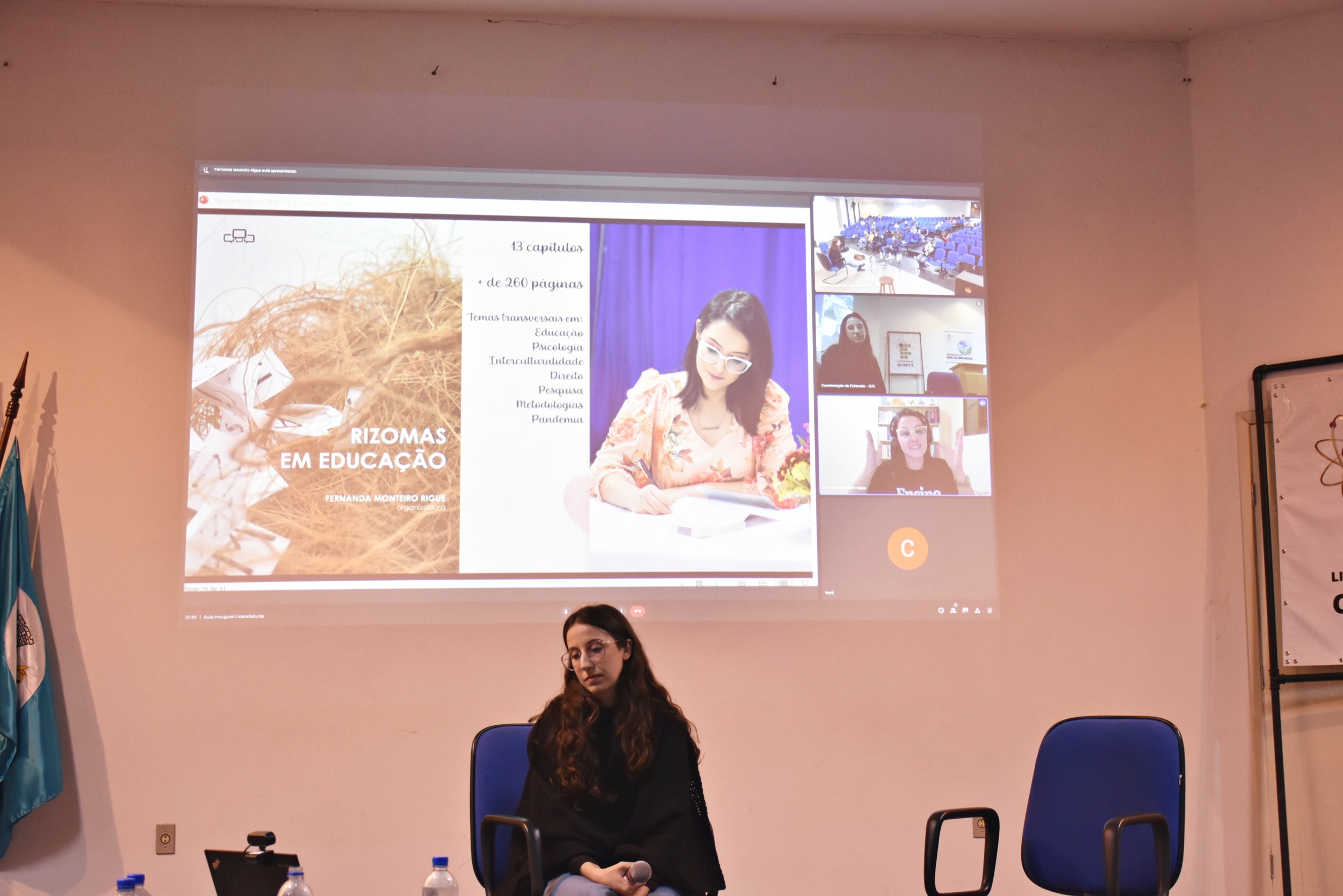 Em um segundo momento, houve mesa redonda com as egressas Débora Moro e Fernanda Monteiro Rigue, que trouxeram exposições e reflexões sobre seus percursos formativos.