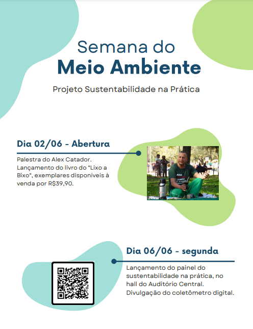 No dia 2 de junho, houve, nos turnos tarde e noite, a palestra “A importância da educação para a coleta seletiva solidária", com Alexandro Cardoso, conhecido como Alex Catador. Filho de pais e avó catadores, Alex se tornou uma voz da categoria, por todo seu envolvimento e luta pela causa.
