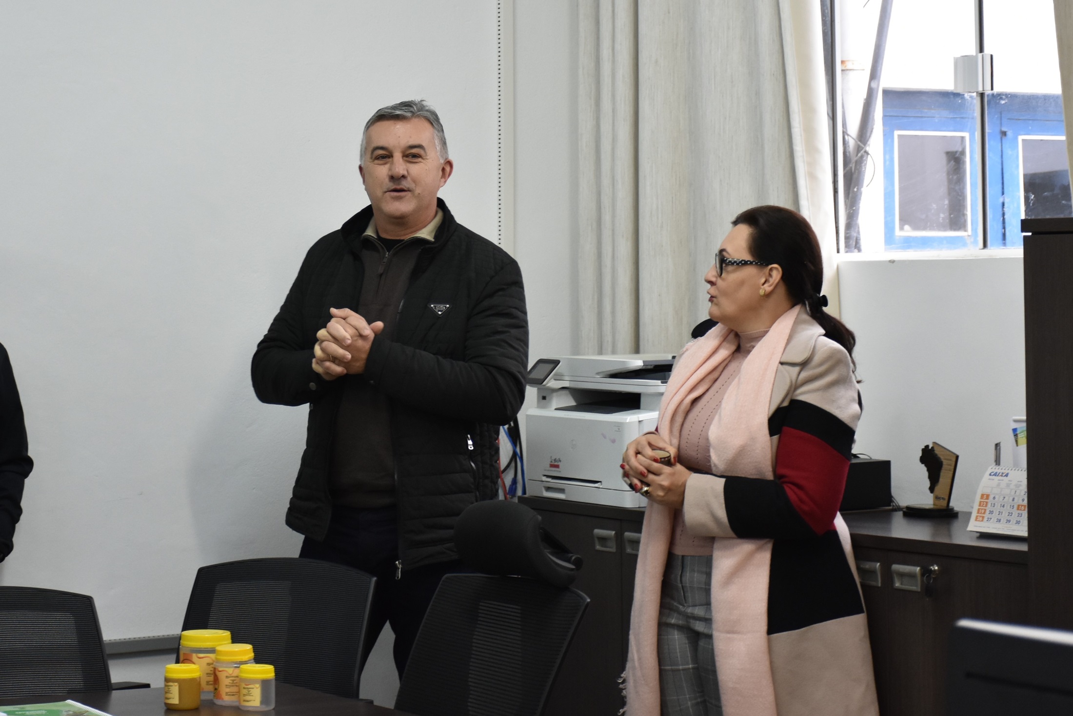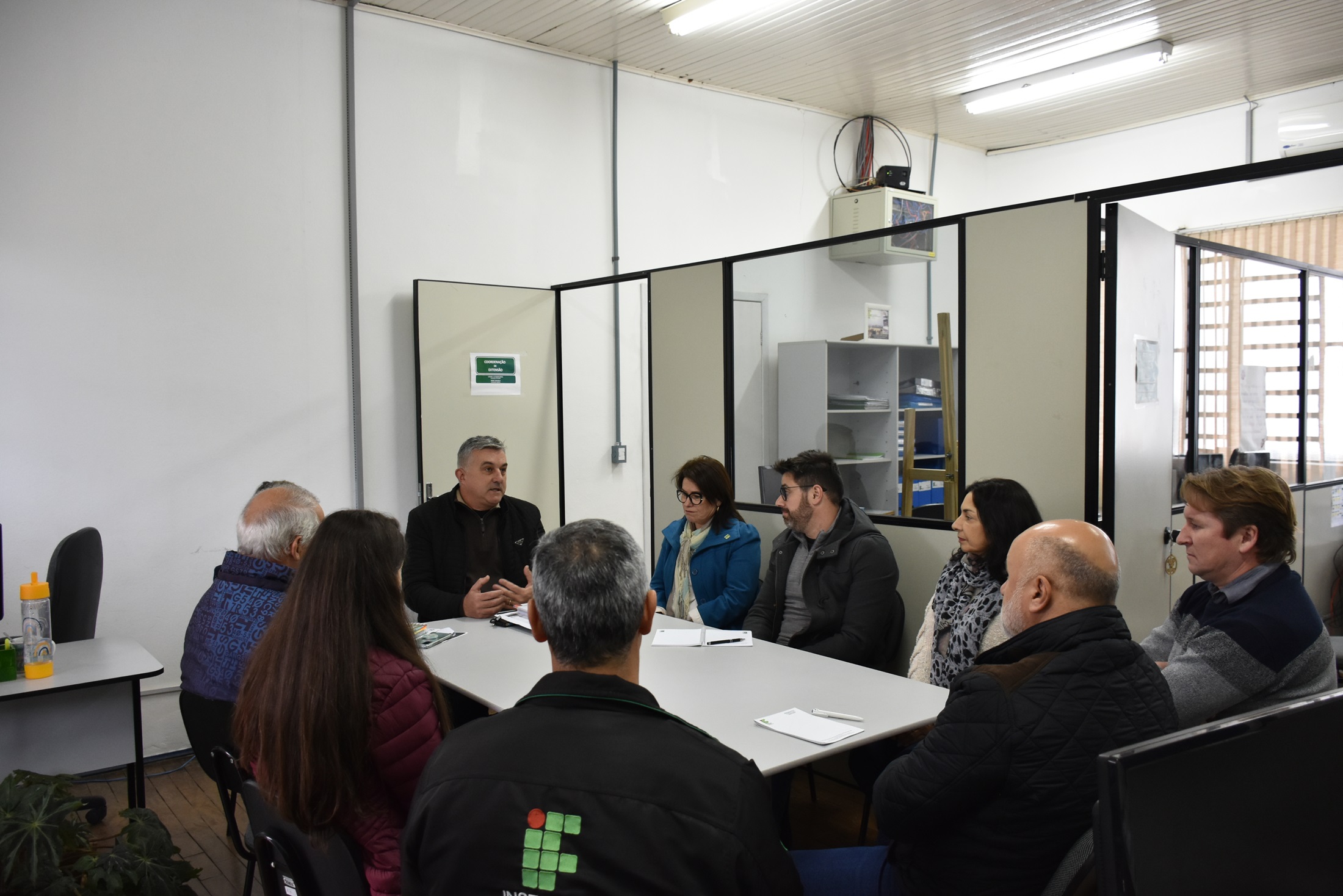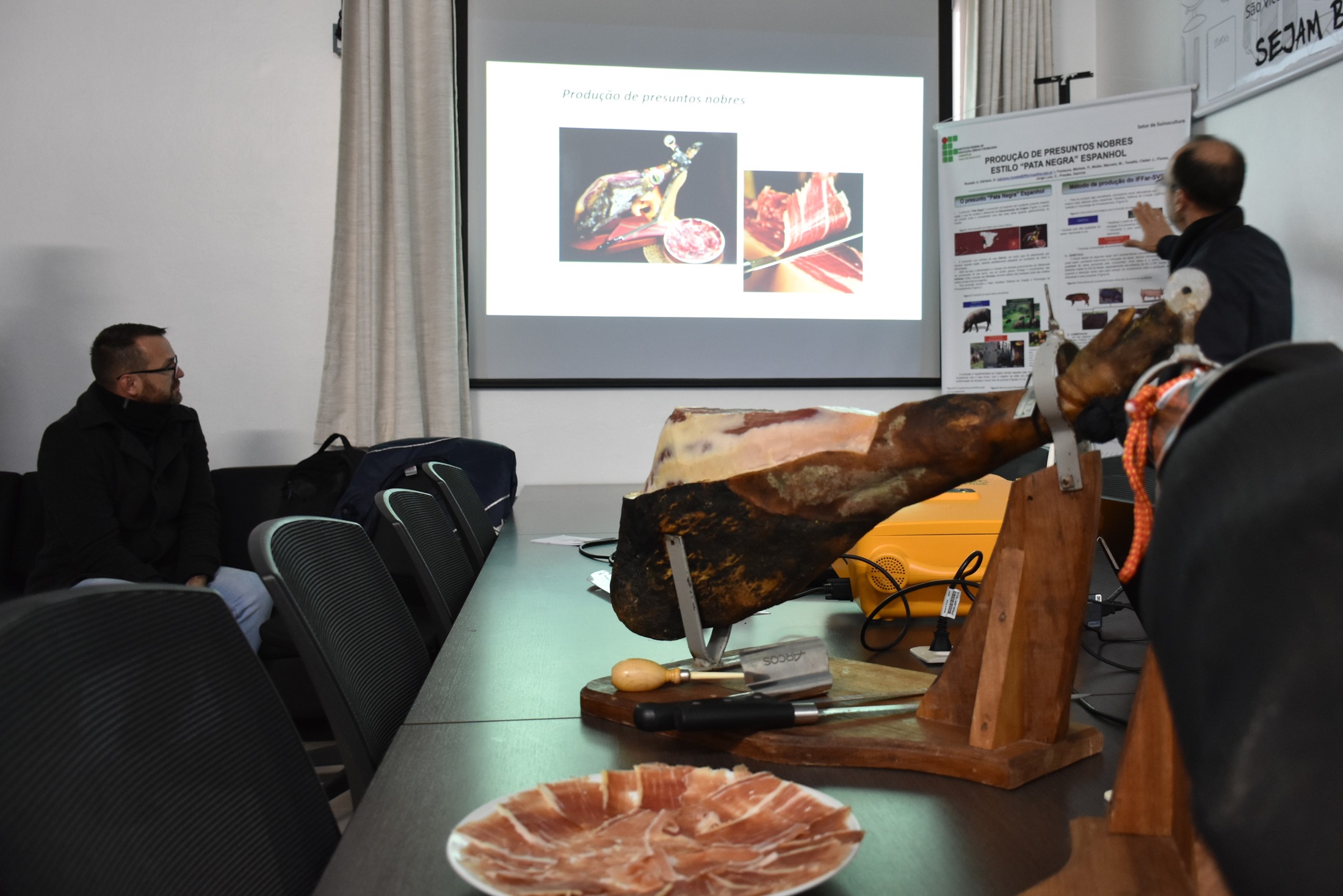 Durante a recepção, ocorrida no Gabinete da Direção, alguns projetos de pesquisa e extensão foram apresentados à equipe, como por exemplo a produção de presuntos nobres e as atividades da Sala do Mel (clique nos links para saber mais). Após, ocorreram as reuniões sistêmicas de cada pró-reitoria com as diretorias correspondentes.