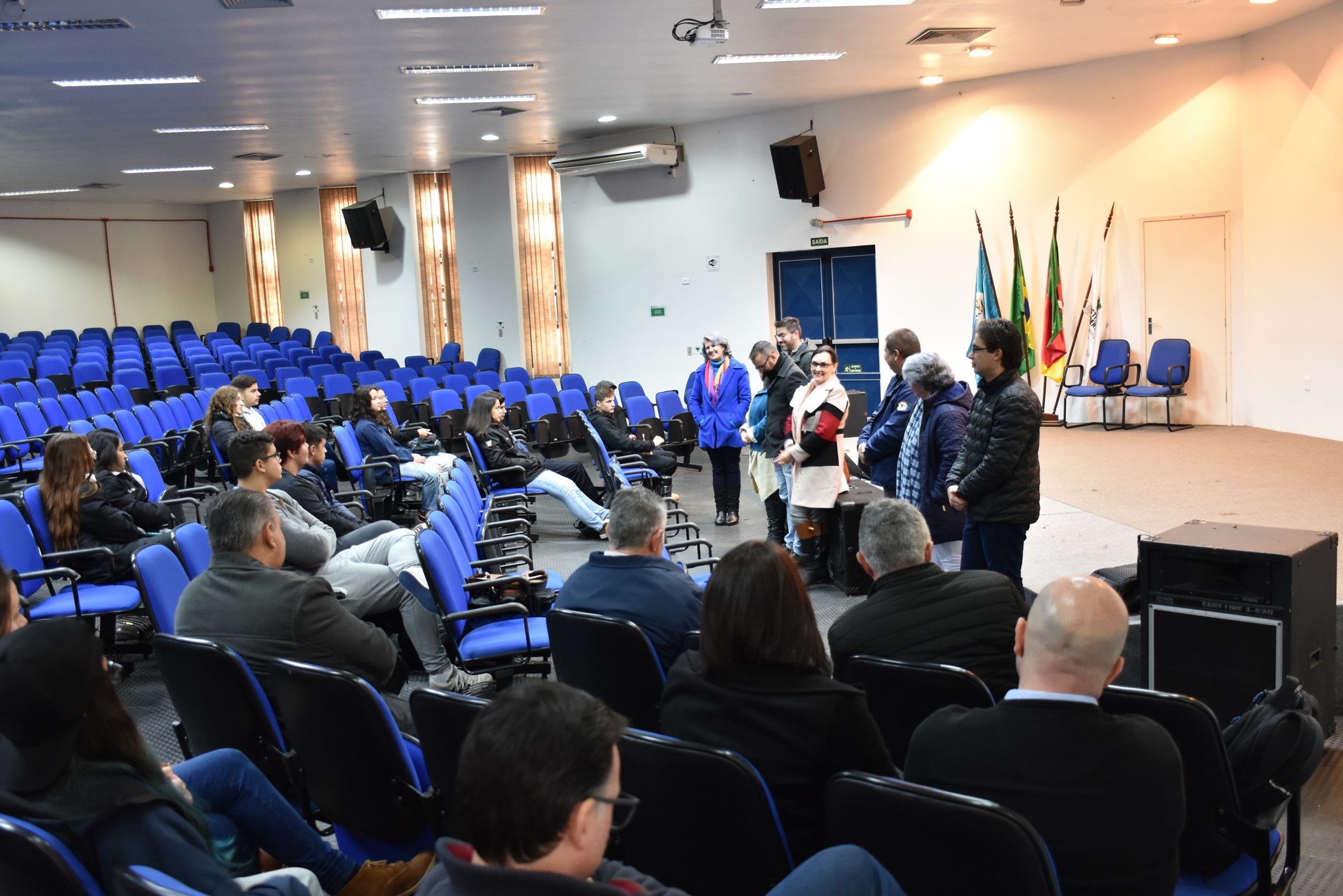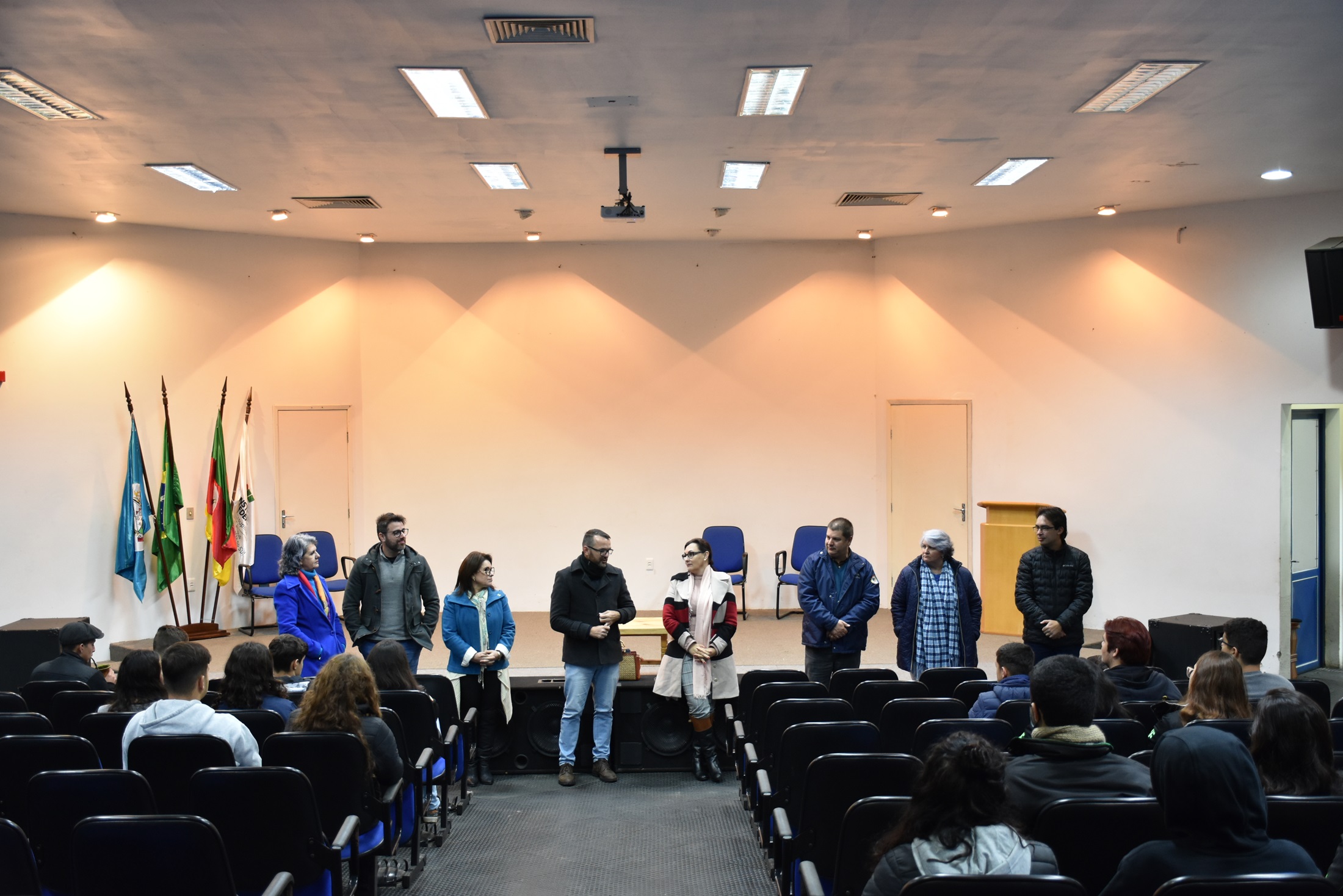 No final da manhã, a Reitoria Itinerante se reuniu com as lideranças estudantis dos cursos técnicos para apresentar pela primeira vez a equipe de forma presencial e, além disso, ouvir demandas, receber sugestões e prestar esclarecimentos sobre cada área de gestão.