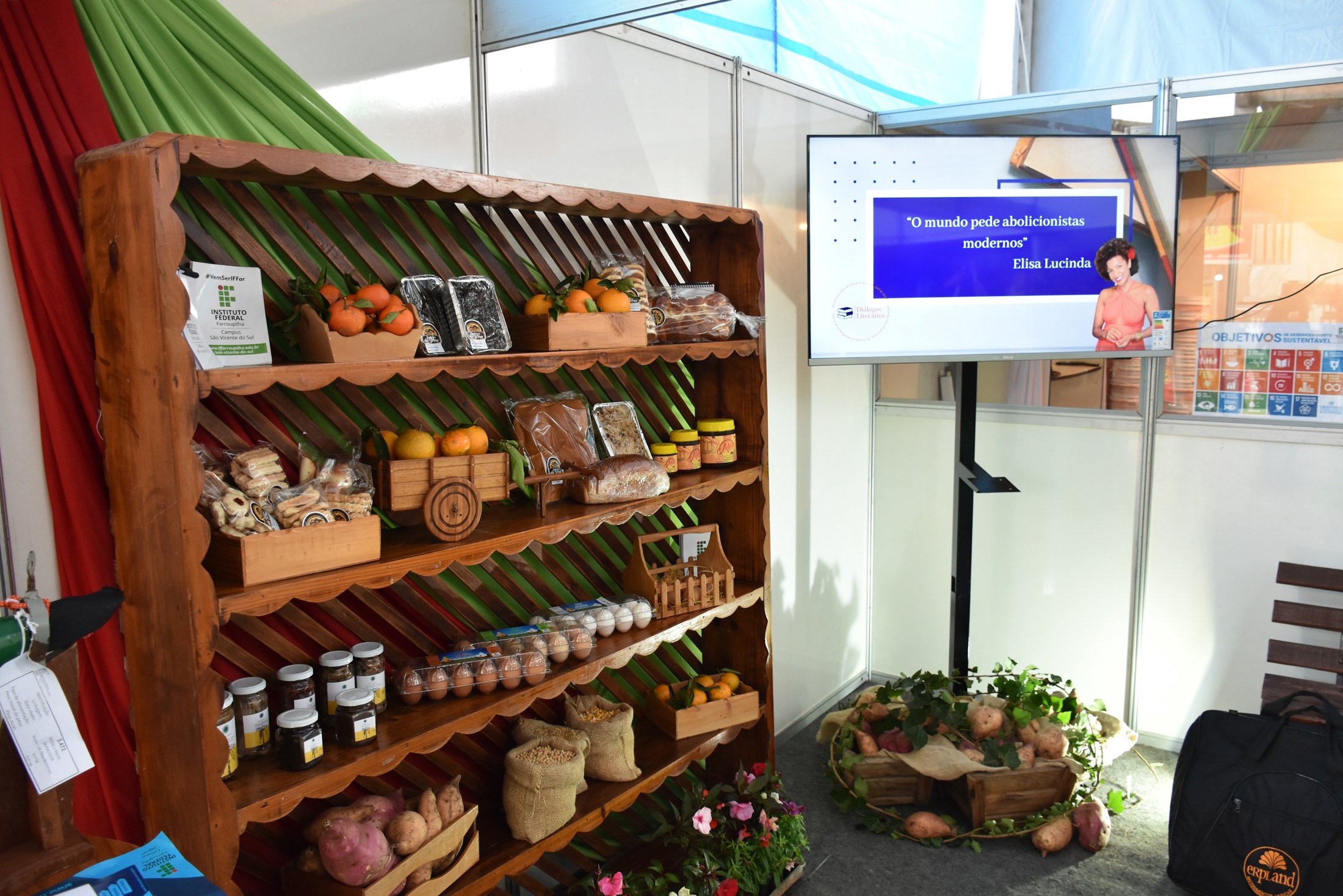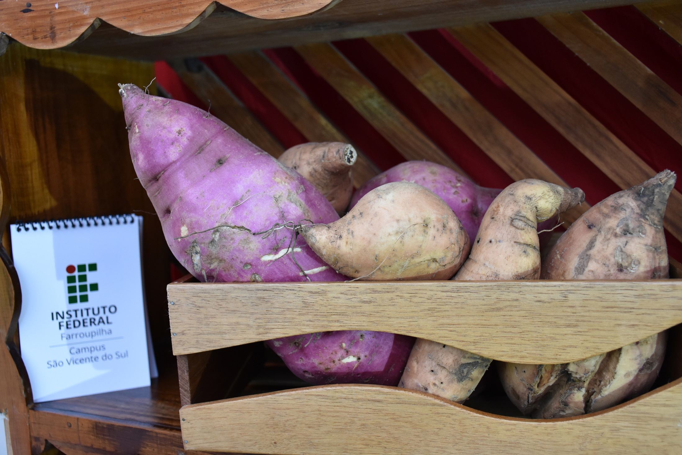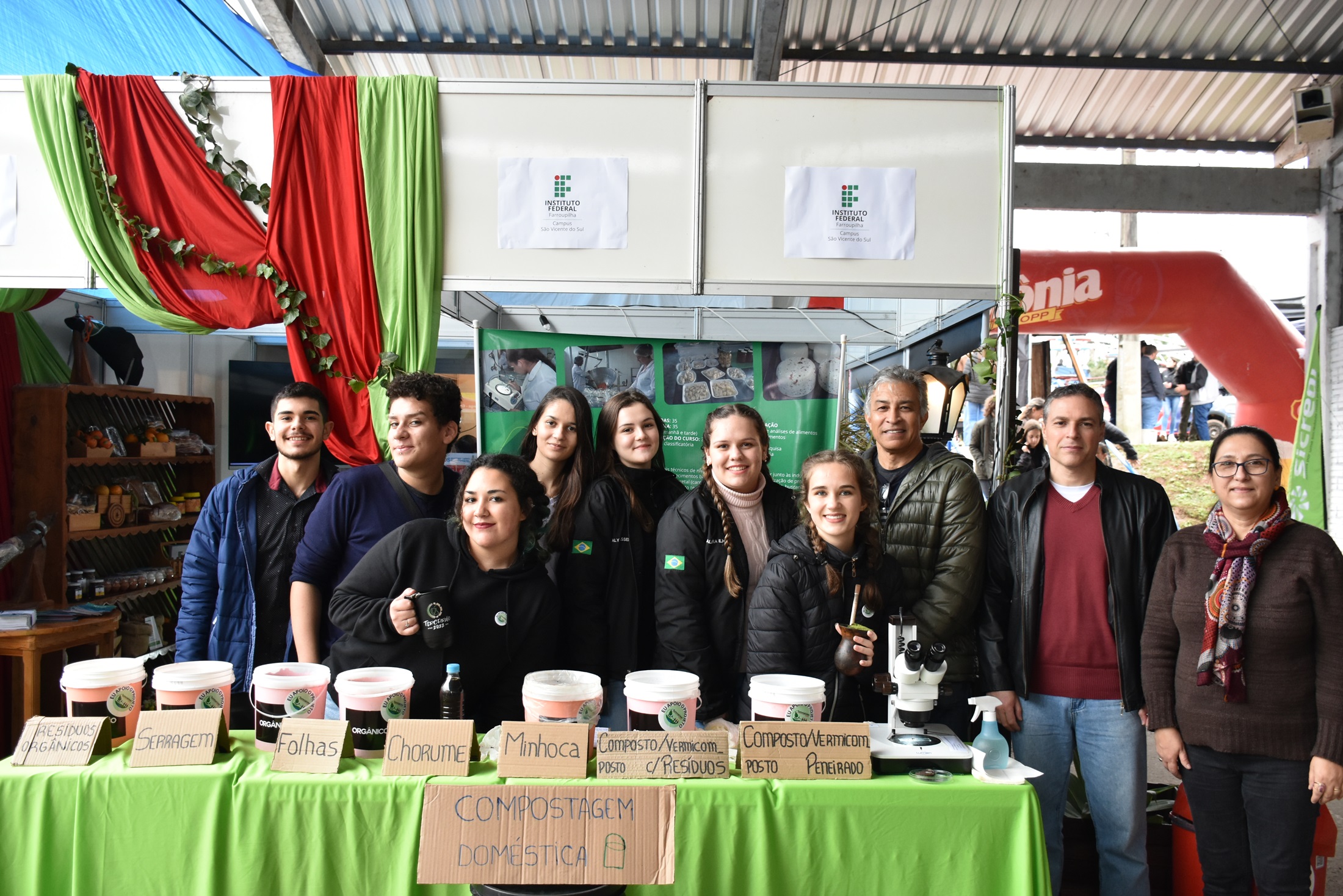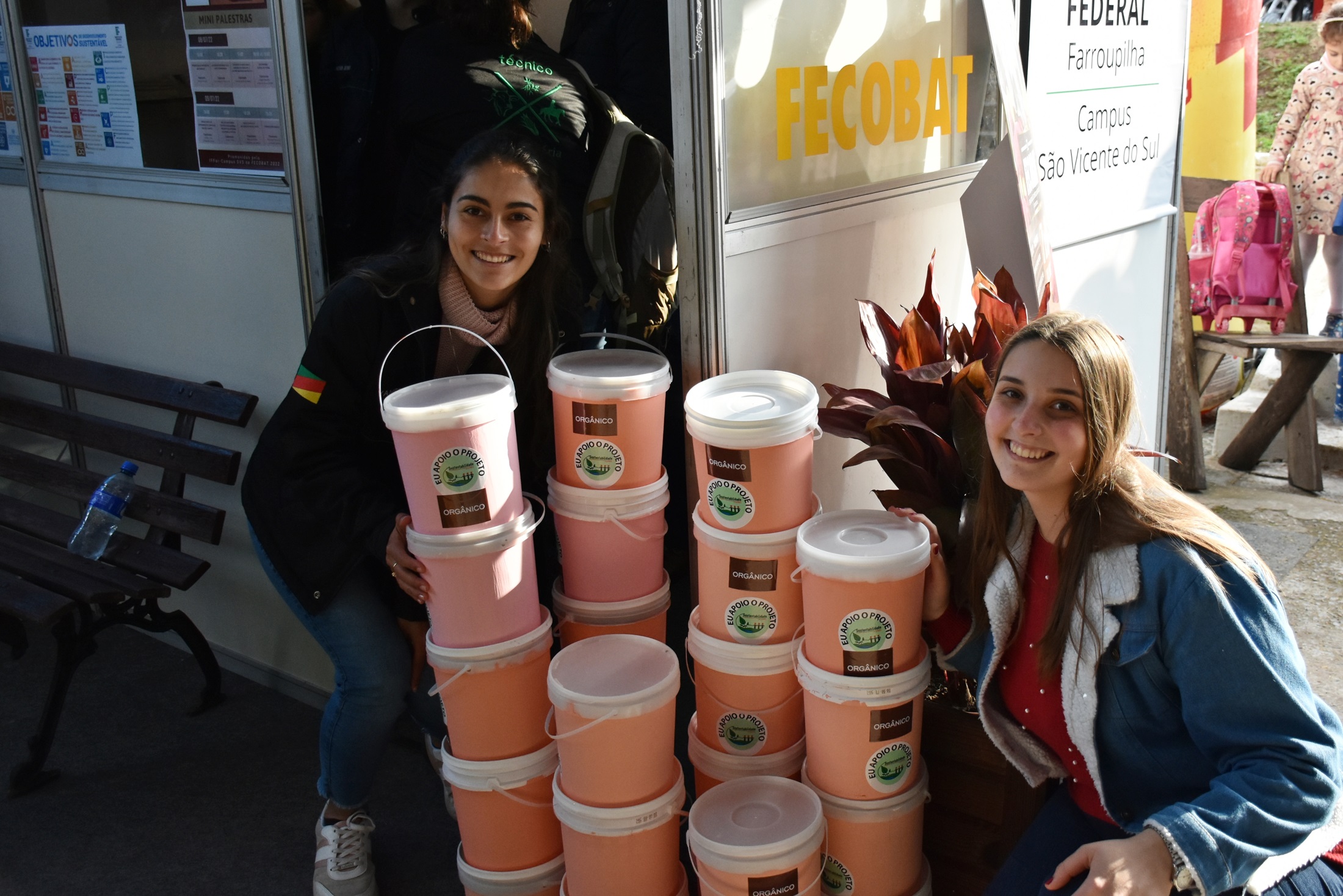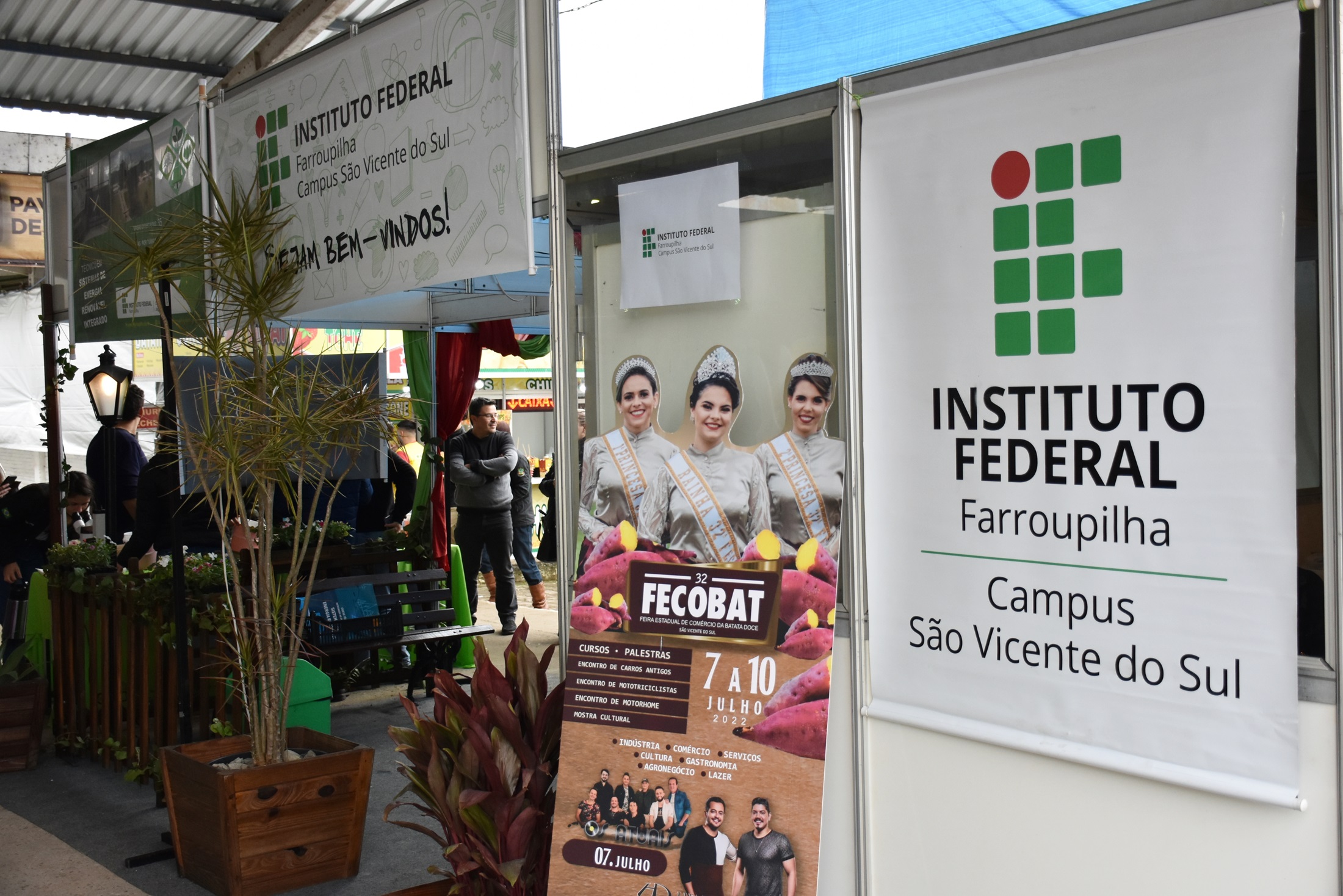 Nessa sexta-feira, dia 8 de julho, o estande institucional do Campus São Vicente do Sul na Feira Estadual de Comércio da Batata-Doce (Fecobat) já estava movimentado. Estudantes e servidores compareceram no espaço para auxiliar na montagem e organização do espaço, que será usado para divulgação institucional e demonstração de produtos e projetos desenvolvidos na unidade.