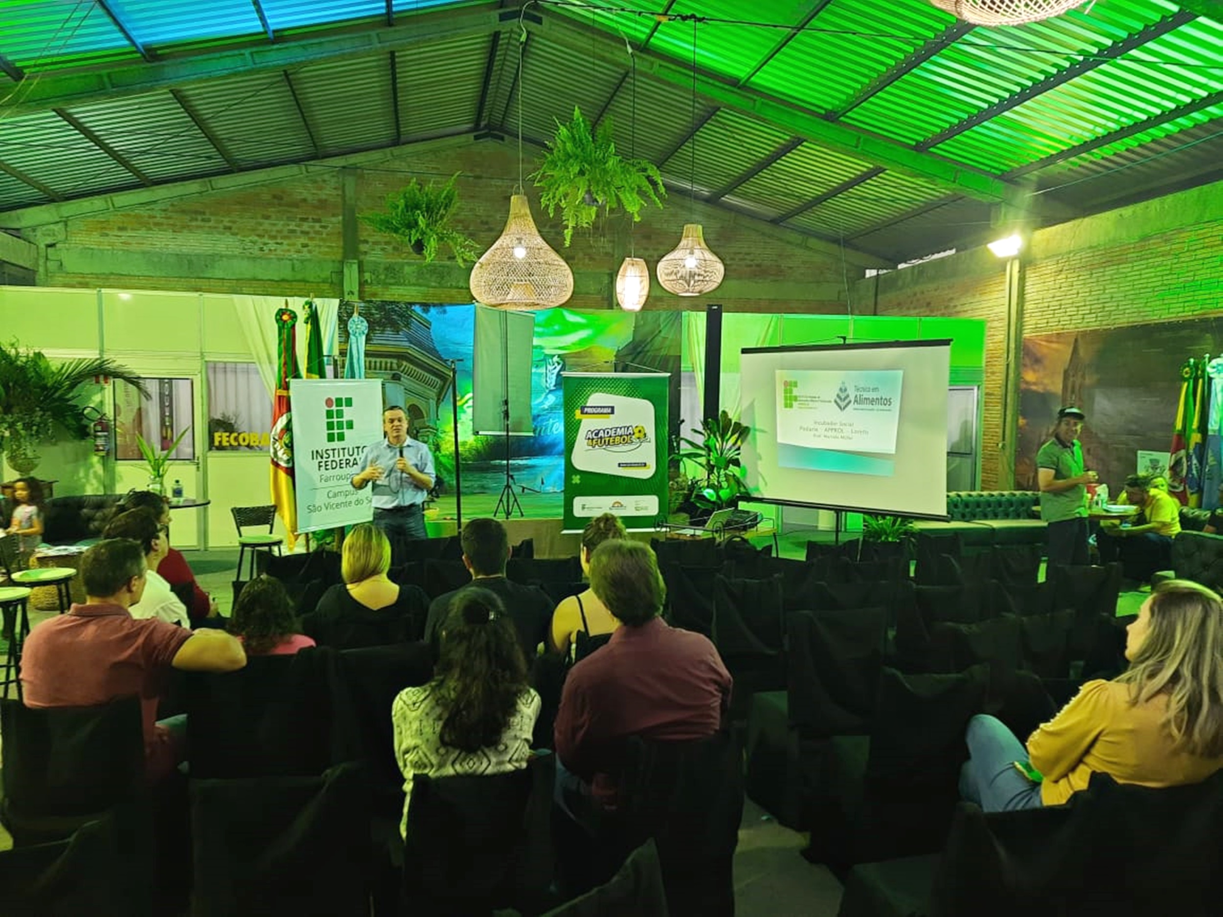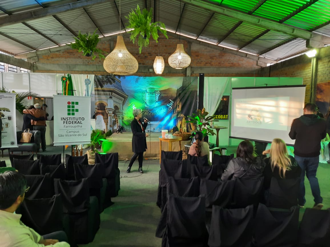 De 7 a 10 de julho, o IFFar-SVS participou da 32º Feira Estadual de Comércio da Batata-Doce (Fecobat), realizada em São Vicente do Sul/RS. Além do estande institucional para divulgação e demonstração de produtos fabricados na unidade, o Campus manteve uma programação de mini palestras e oficinas sobre ações e experimentos que são desenvolvidos através de projeto de ensino, pesquisa e extensão.