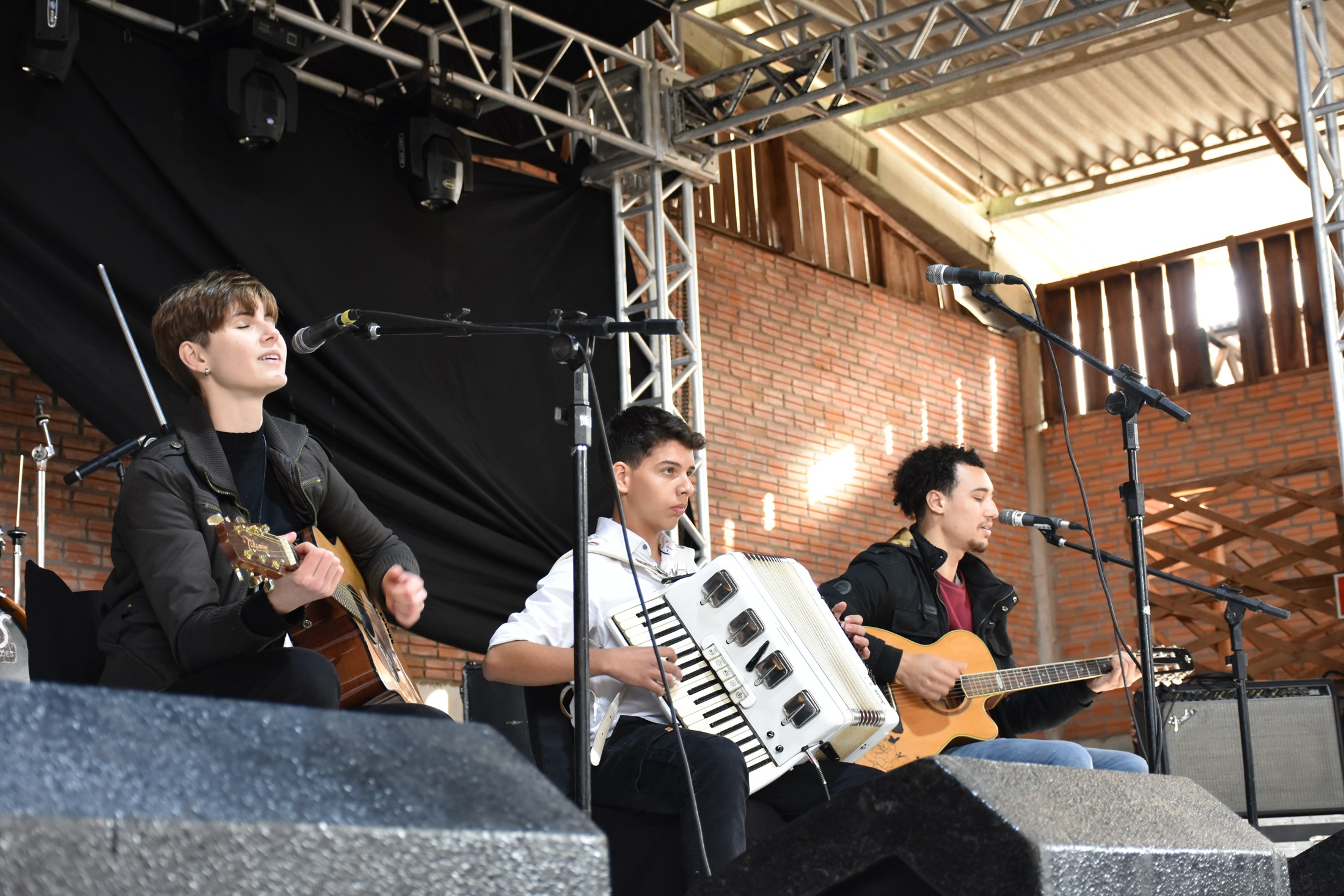 Na mostra cultural da Feira, ocorrida na tarde de sexta-feira (8), houve apresentação dos estudantes Diony Joras, Luis Fernando Lopes e Manuela Baccin.
