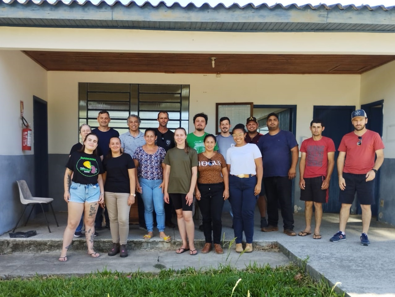 Participaram seis produtores (Leomar Filipin, Ramira Rodrigues, Gireline Rodrigues, Carlos Manuel da Silva, Cassiano Cordeiro e Carlos Vielmo), além de dois estudantes do Curso de Agronomia (Claiton Anibale e Mariane Lopes dos Santos). Os produtores relataram as dificuldades no controle de pragas e doenças em função da restrição dos produtos registrados pelo Ministério da Agricultura e o uso de consórcios de plantas no controle fitossanitário.