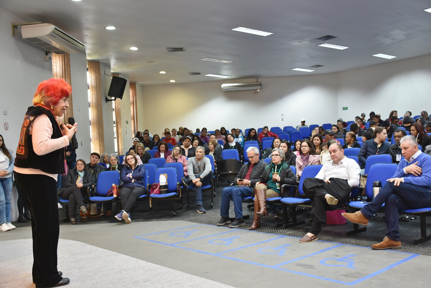 No sábado, também aconteceu o I Encontro de Estudantes do Programa EJA-EPT do IFFar, atividade que reuniu cerca de 125 pessoas, entre estudantes e representantes das equipes gestoras das oito instituições de ensino de Santa Maria que sediam turmas. O evento teve a participação do Grupo de Alfabetização de Jovens e Adultos da localidade do Morro da Cruz (Porto Alegre/RS), coordenado pela profª Esther Pilar Grossi, do Grupo de Estudos sobre Educação, Metodologia de Pesquisa e Ação (GEEMPA). Educadora há mais de 53 anos, Esther também fez fala aos estudantes presentes.