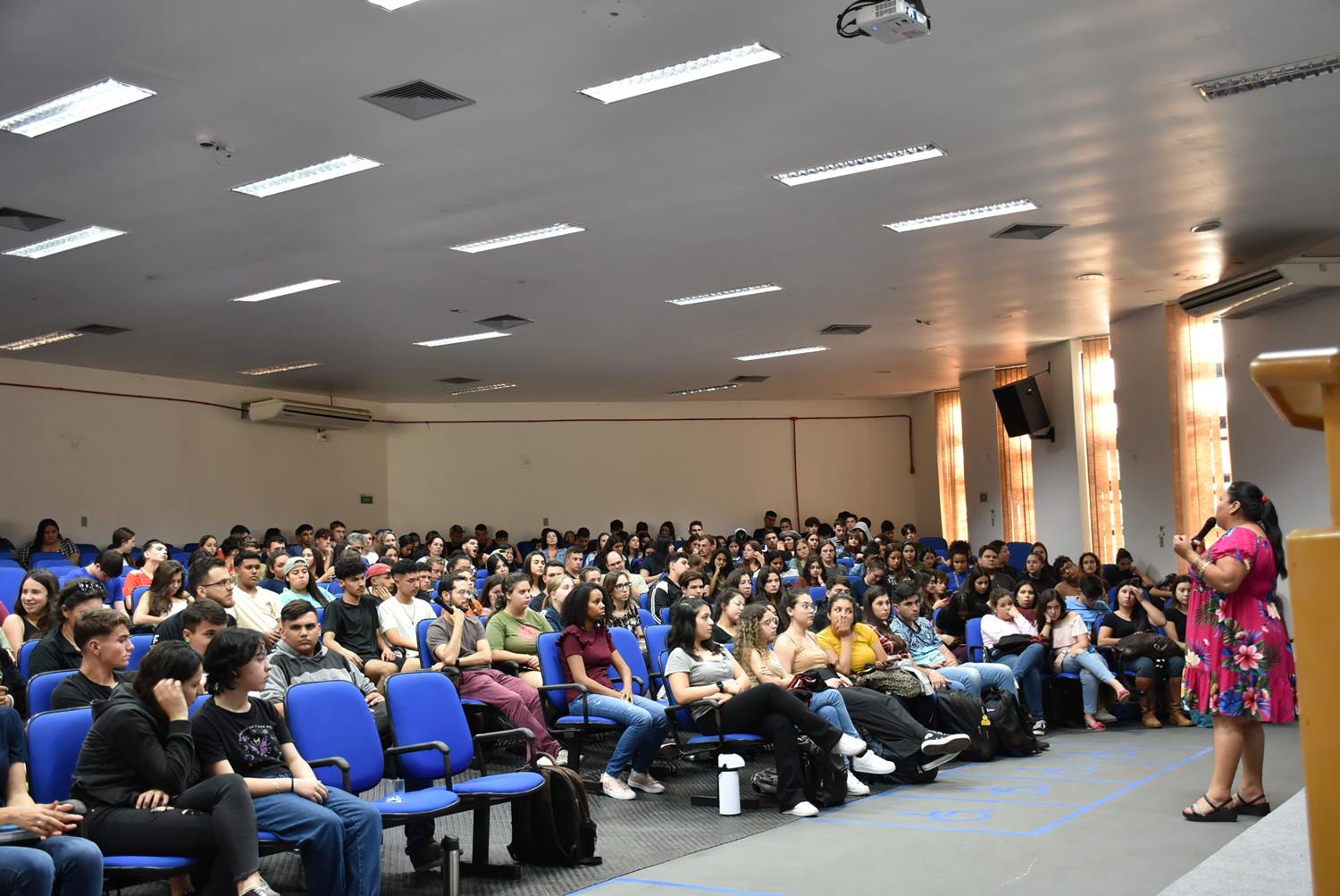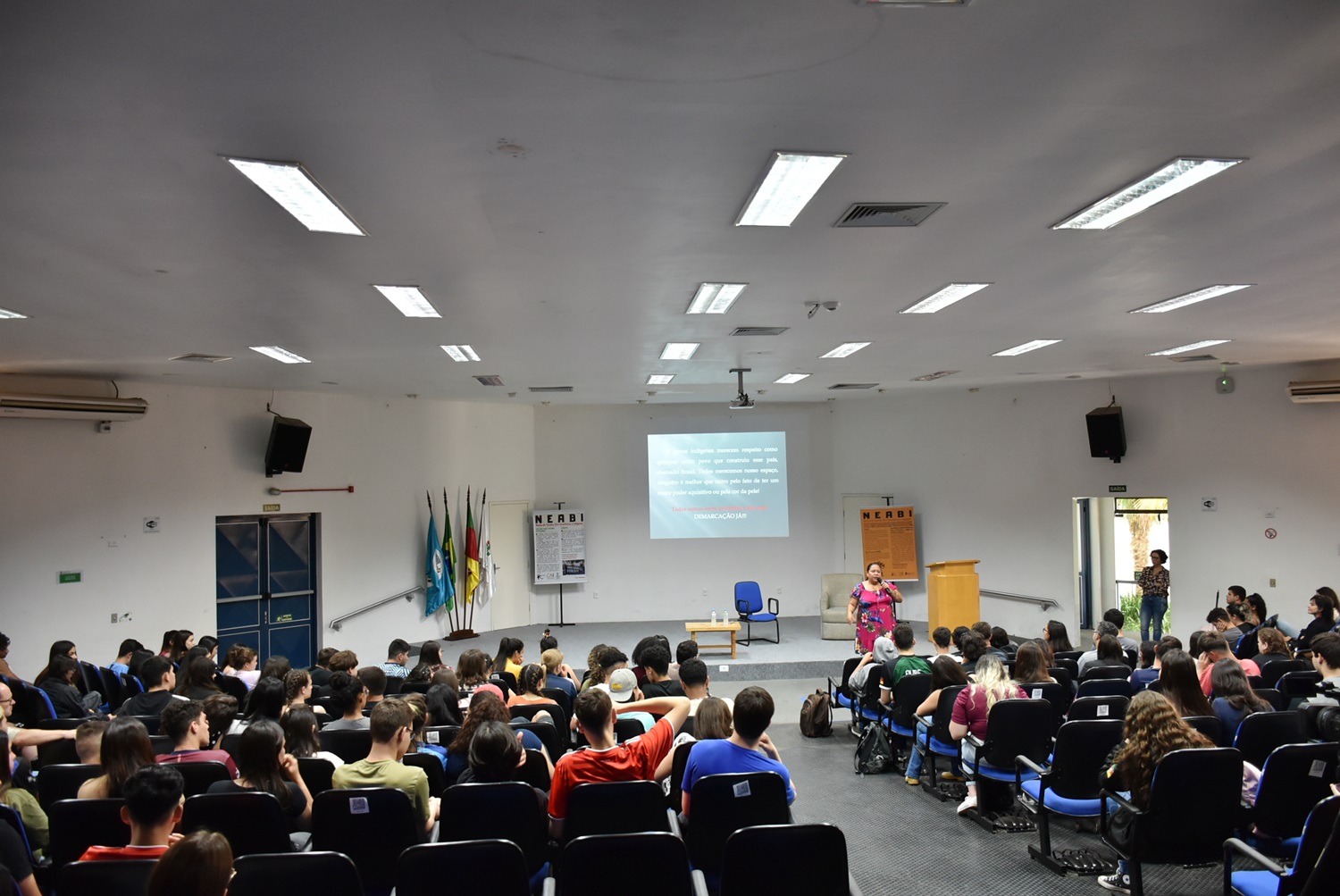 Em sua fala, Laysa apresentou aspectos socioculturais do povo Kaingang, como costumes e tradições; organização, interações e mobilidade social; a fim de desmistificar estereótipos indígenas e aproximar o público da cultura de seu povo.