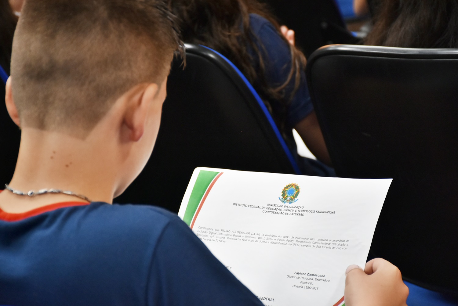 Página inicial > São Vicente do Sul > Campus certifica estudantes participantes do Projeto “BIT de Inserção Social”