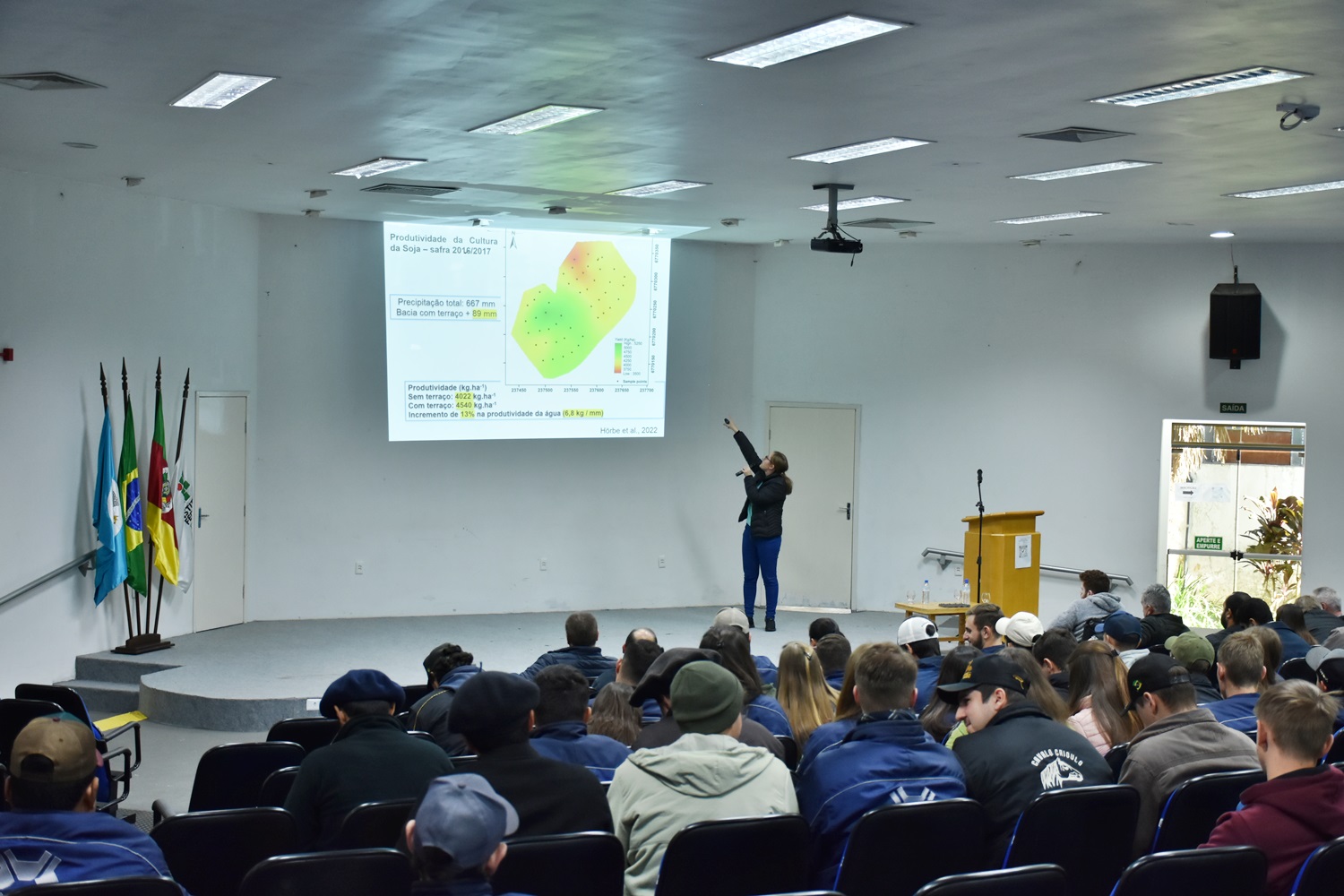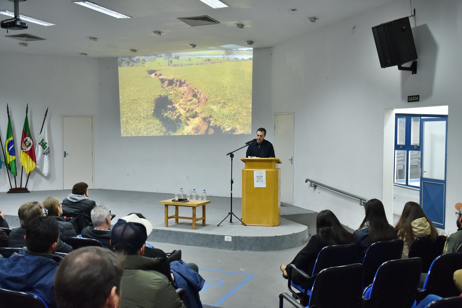 No dia 2 de julho, o Instituto Federal Farroupilha - Campus São Vicente do Sul sediou o I Simpósio “Manejo e conservação do solo e da água”, que reuniu estudantes, docentes, produtores rurais e extensionistas, além de profissionais e pesquisadores da área. O evento promoveu temas como recuperação de solos e qualidade hídrica, por meio de palestras e de atividades demonstrativas.