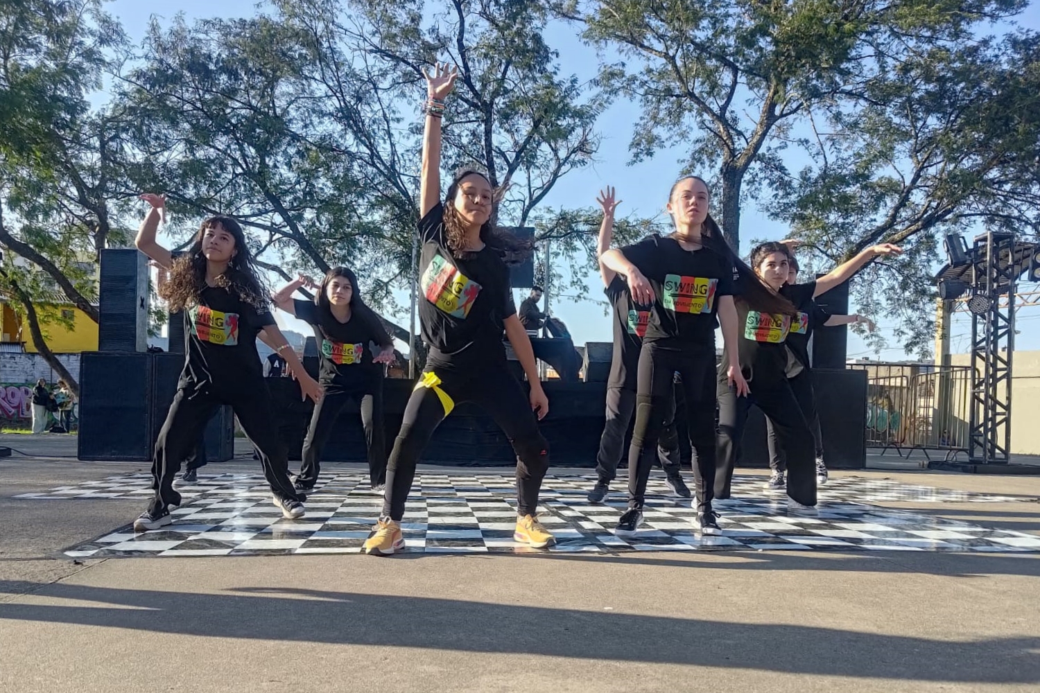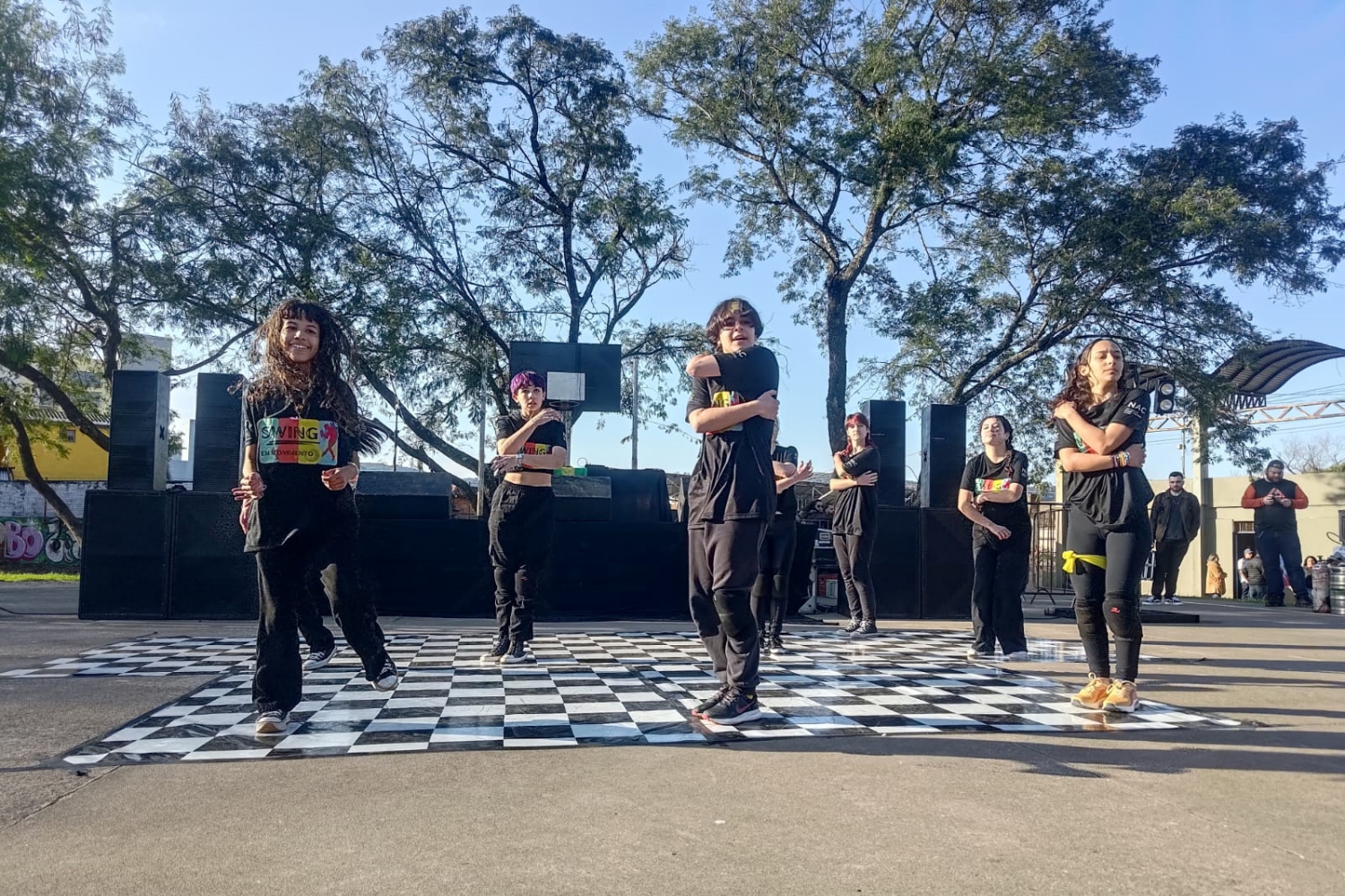 Neste mês de agosto, o grupo de dança “Swing em Movimento”, do Campus São Vicente do Sul, apresentou sua coreografia de hip hop em três eventos da região. Na tarde do dia 9 de agosto, o grupo integrou a programação cultural da 34ª Fecobat, tradicional feira de São Vicente do Sul.