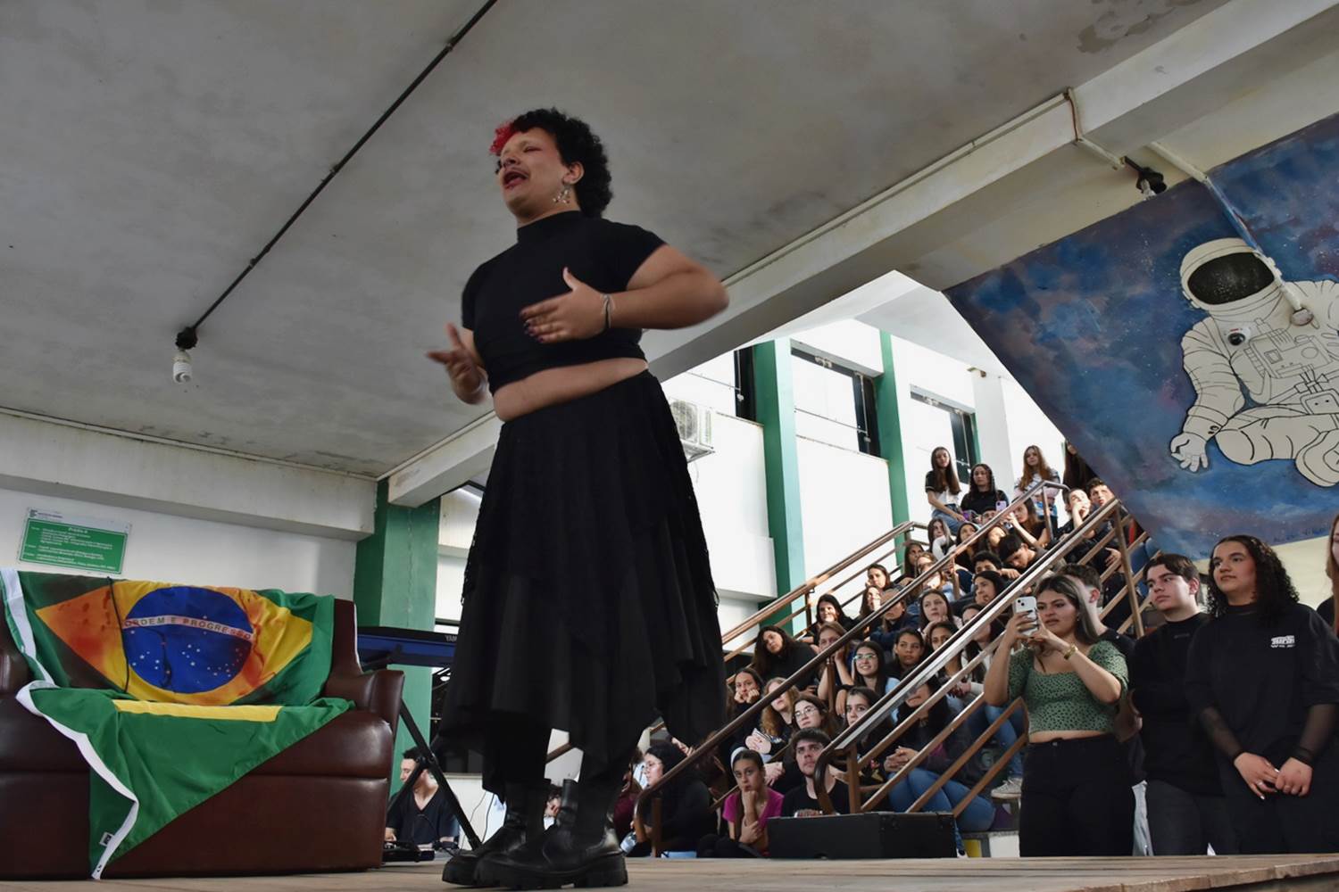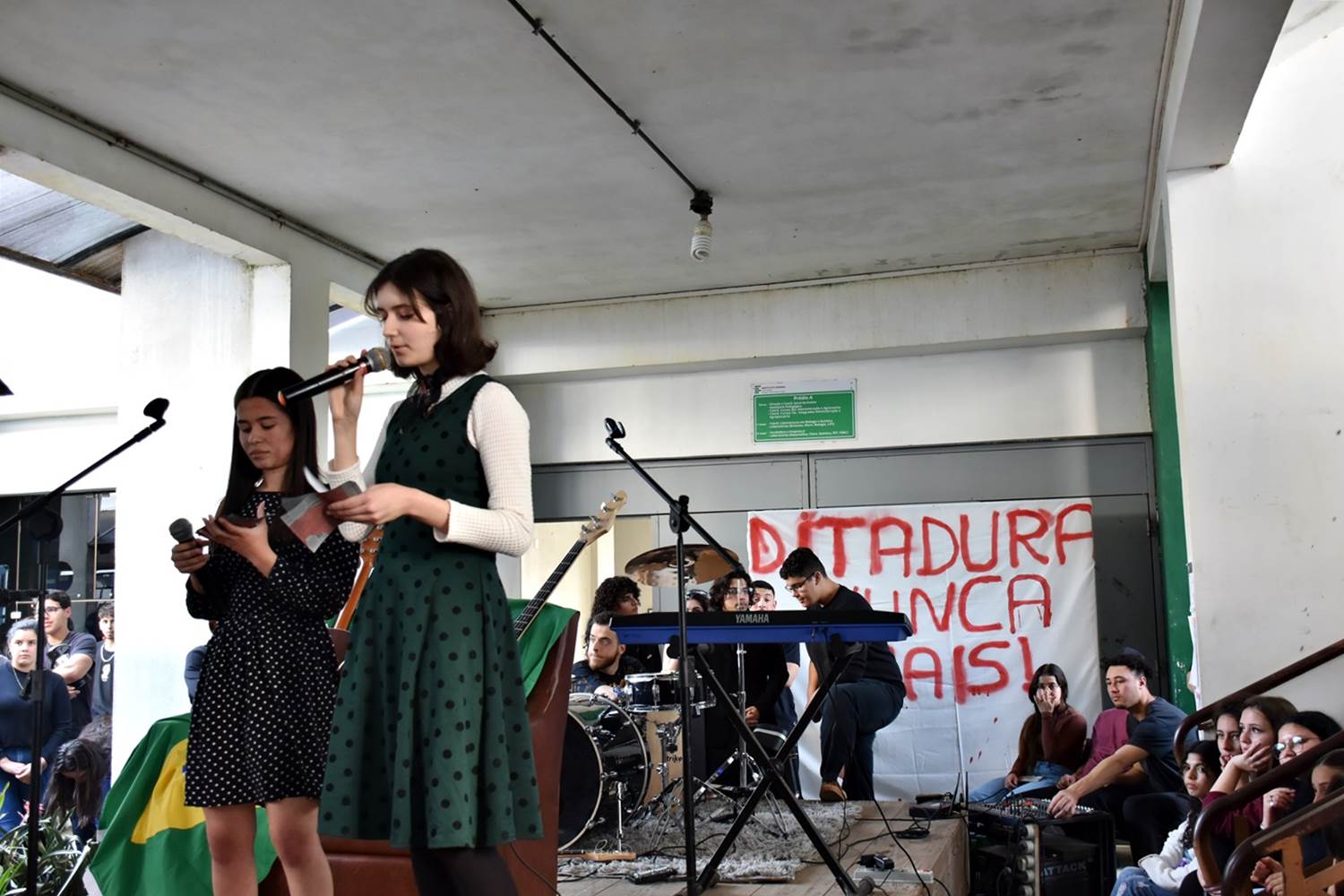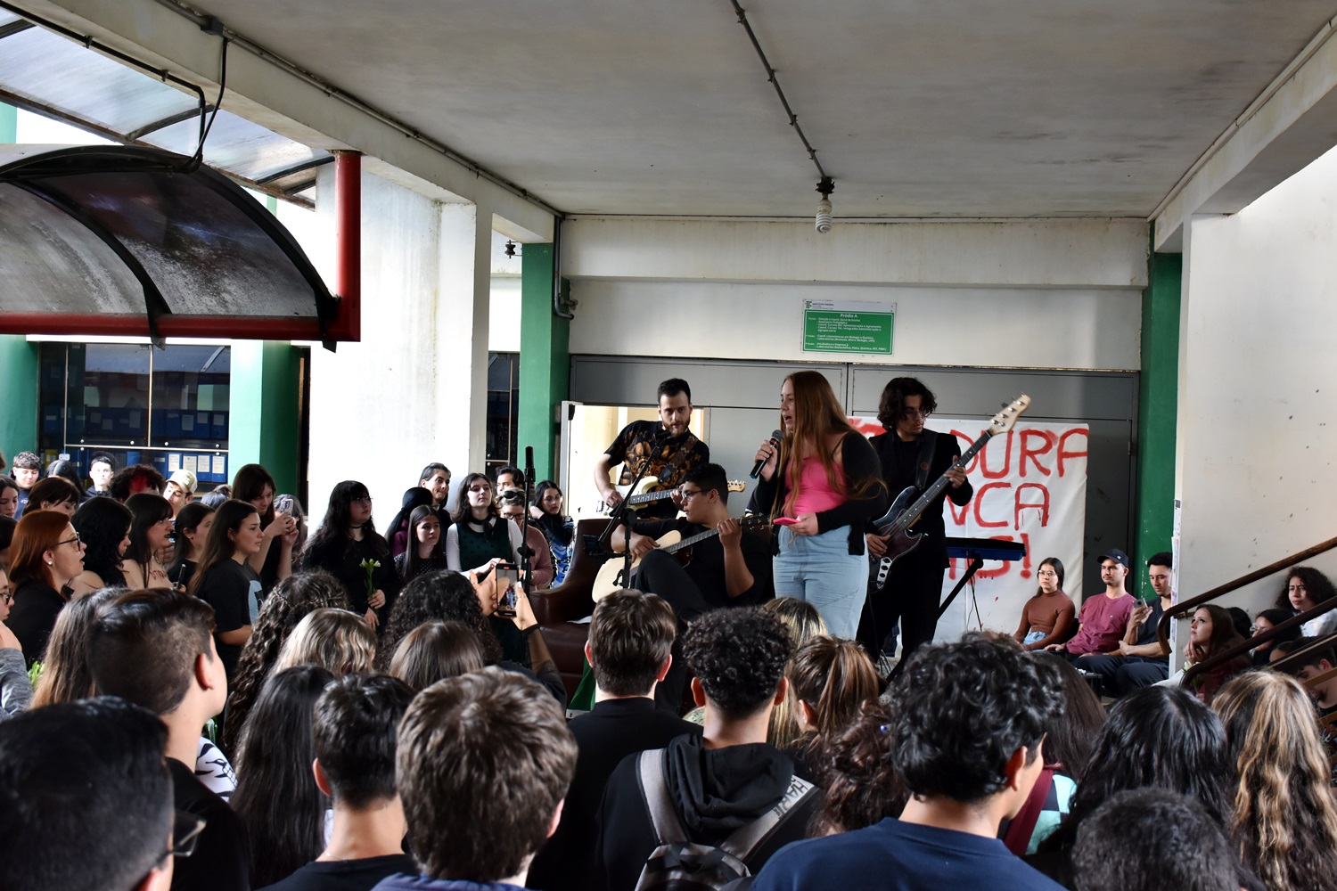 Na última quinta-feira, dia 15 de agosto, a comunidade escolar do Campus São Vicente do Sul pode conferir mais uma edição do “Rolê Cultural”, evento com apresentações musicais e performáticas que busca aliar arte e sociologia na contextualização de algum acontecimento ou episódio da história brasileira. Nessa edição, o tema abordado foi a Ditadura Militar, que perdurou de 1964 a 1985 no Brasil.