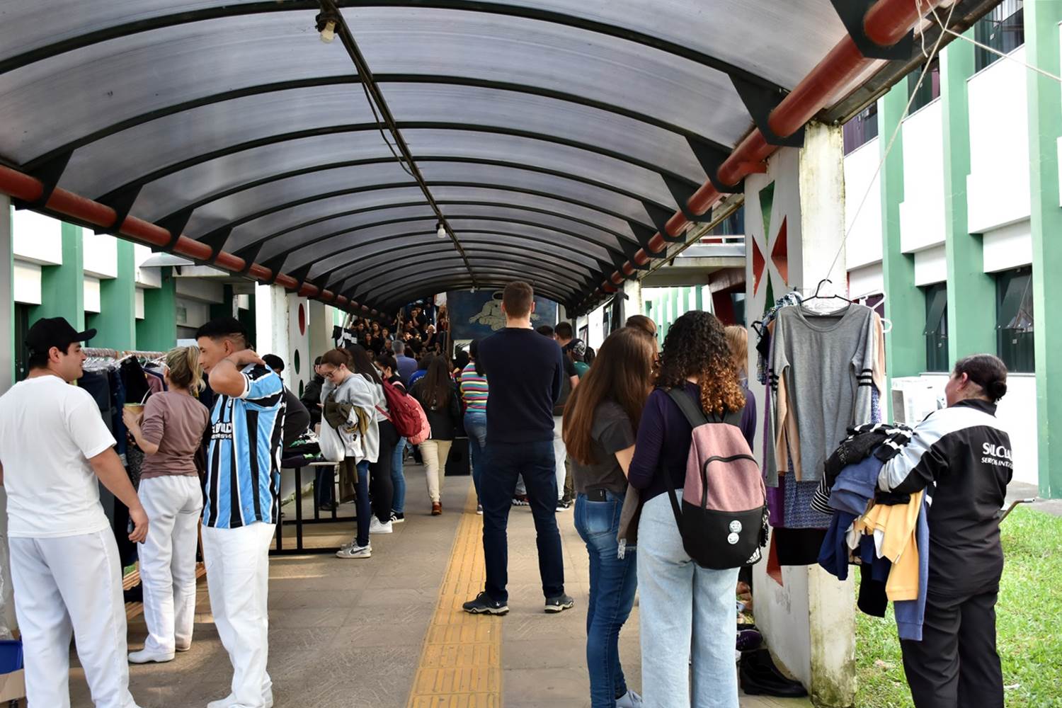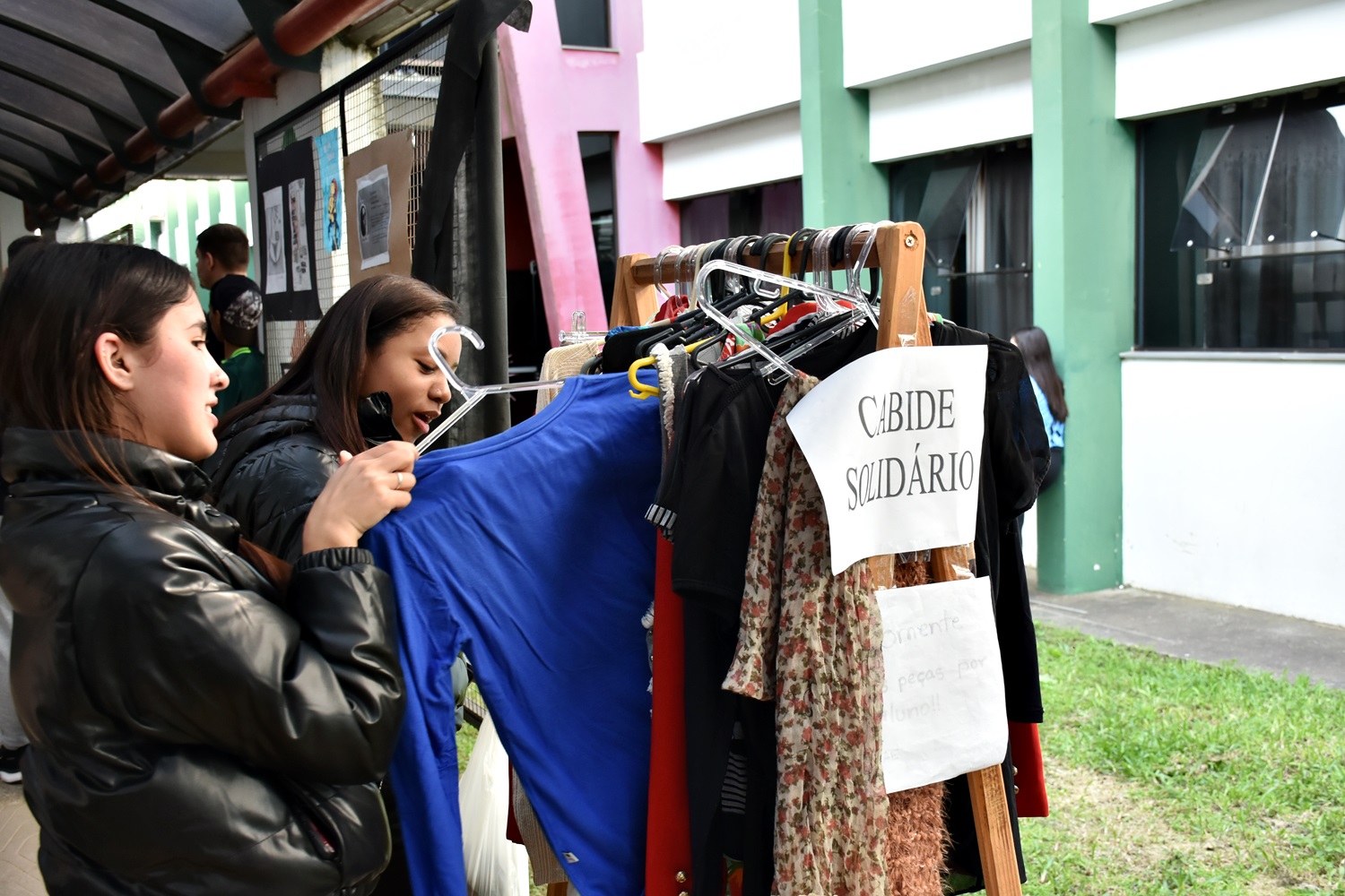 Na ocasião, também foi realizado o Cabide Solidário, para doação de roupas e calçados a quem quisesse. Essa ação foi organizada pela profª Andressa Ballen, em parceria com a Coordenação de Assistência Estudantil (CAE).