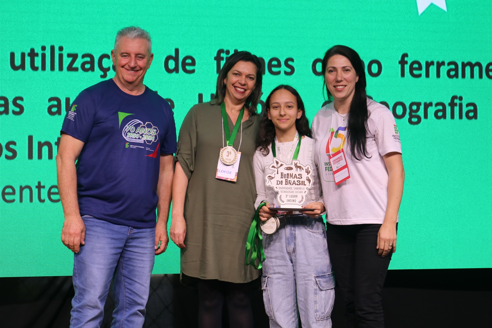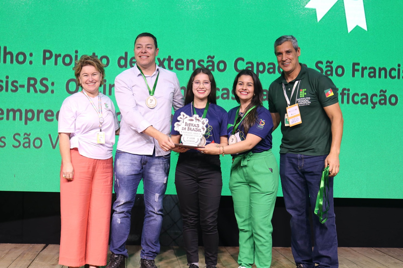 - 3º lugar: A utilização de filmes como ferramenta pedagógica nas aulas de História e Geografia dos Cursos Técnicos Integrados - Campus São Vicente do Sul. Autores: Eduarda Minich Krawczyk, Cynthia Gindri Haigert, Giovan Sehn Ferraz, Lenize Rodrigues Ferreira, Roberta de Almeida Soares.