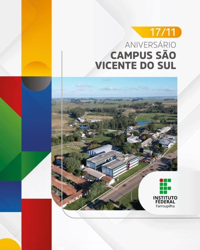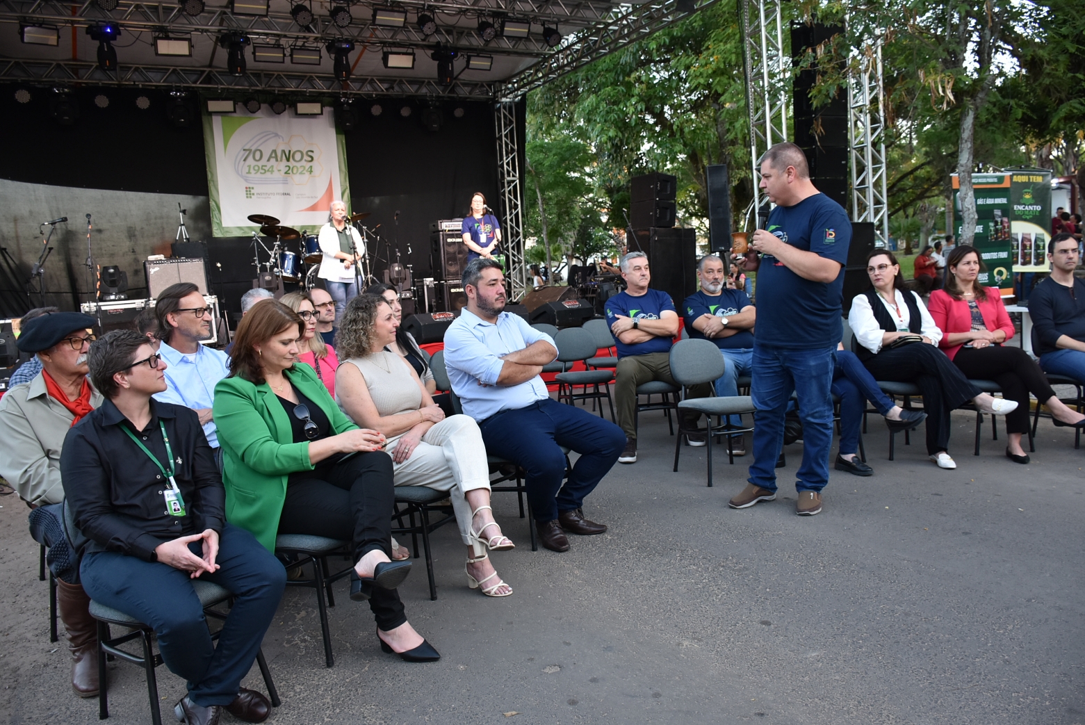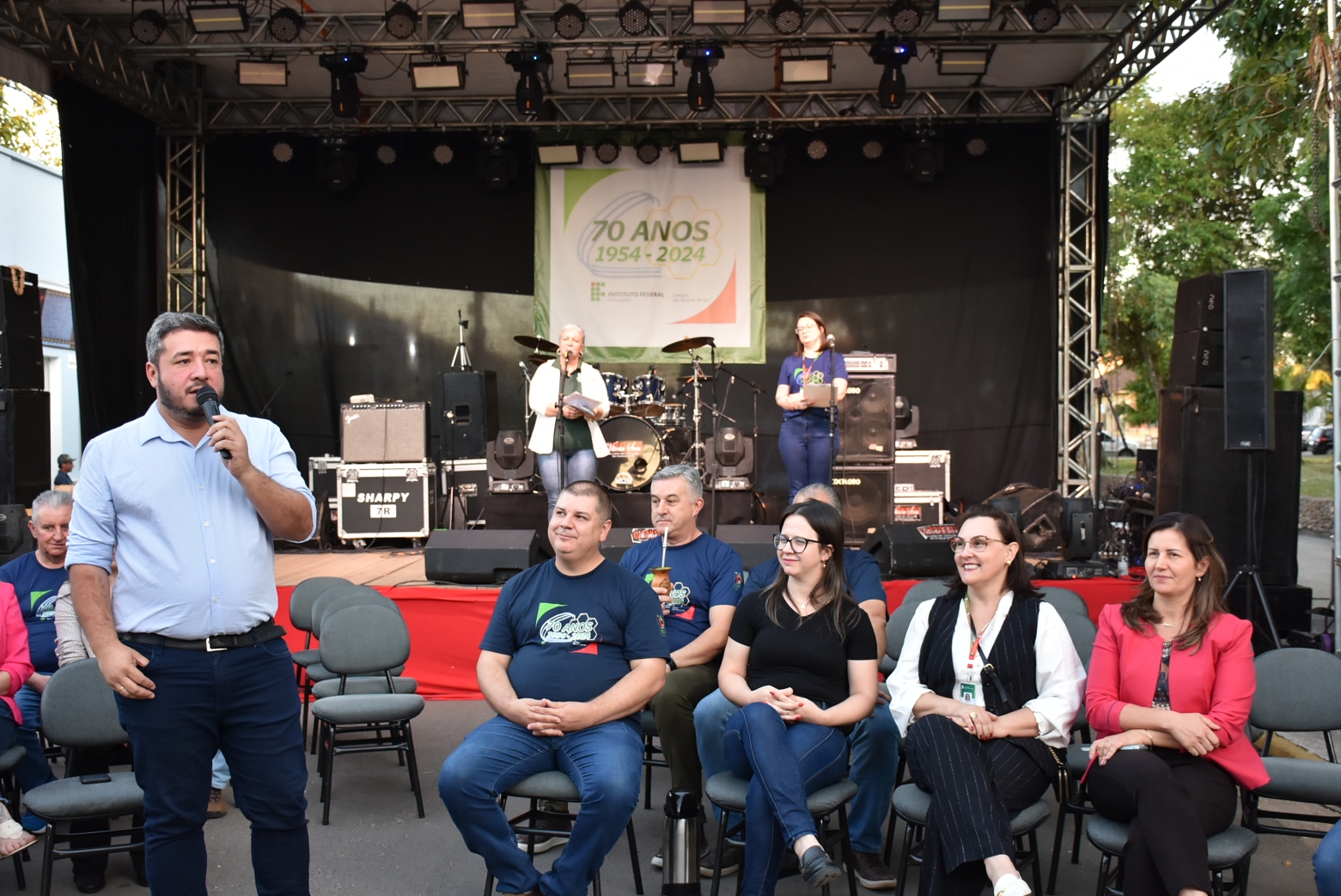 Na noite da última quarta-feira, 13 de novembro, aconteceu evento comemorativo dos 70 anos do Instituto Federal Farroupilha - Campus São Vicente do Sul. A data oficial de aniversário da instituição é o dia 17 de novembro, que marca, em 1954, a assinatura do Termo de Acordo entre a União e o então município de General Vargas para criação da Escola de Iniciação Agrícola.