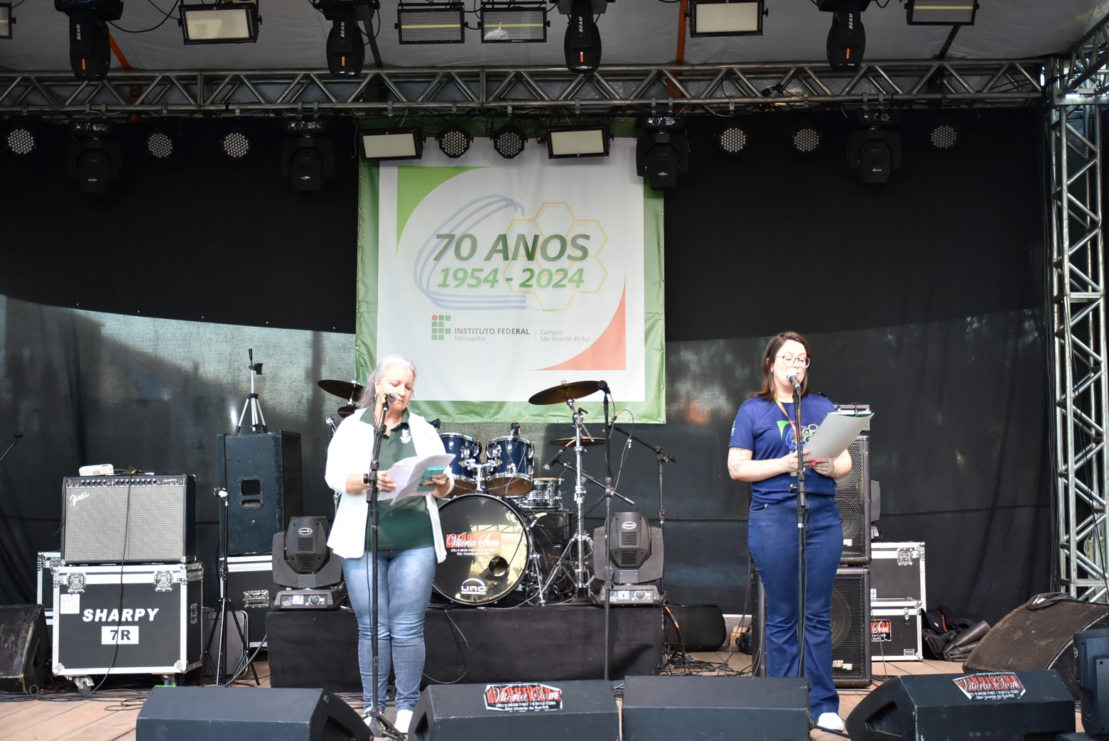Na sequência, o evento avançou para as apresentações musicais, que animaram o público presente, marcando o momento como uma grande festa. Os shows ficaram à cargo de Ana Picolli, santiaguense e egressa do Campus SVS; de “Gigantes da Terra”, banda vicentense formada por Arison, Emerson e Jeferson Martins; e de “Os Fagundes”, banda portoalegrense com mais de 20 anos de consagração na música nativista.