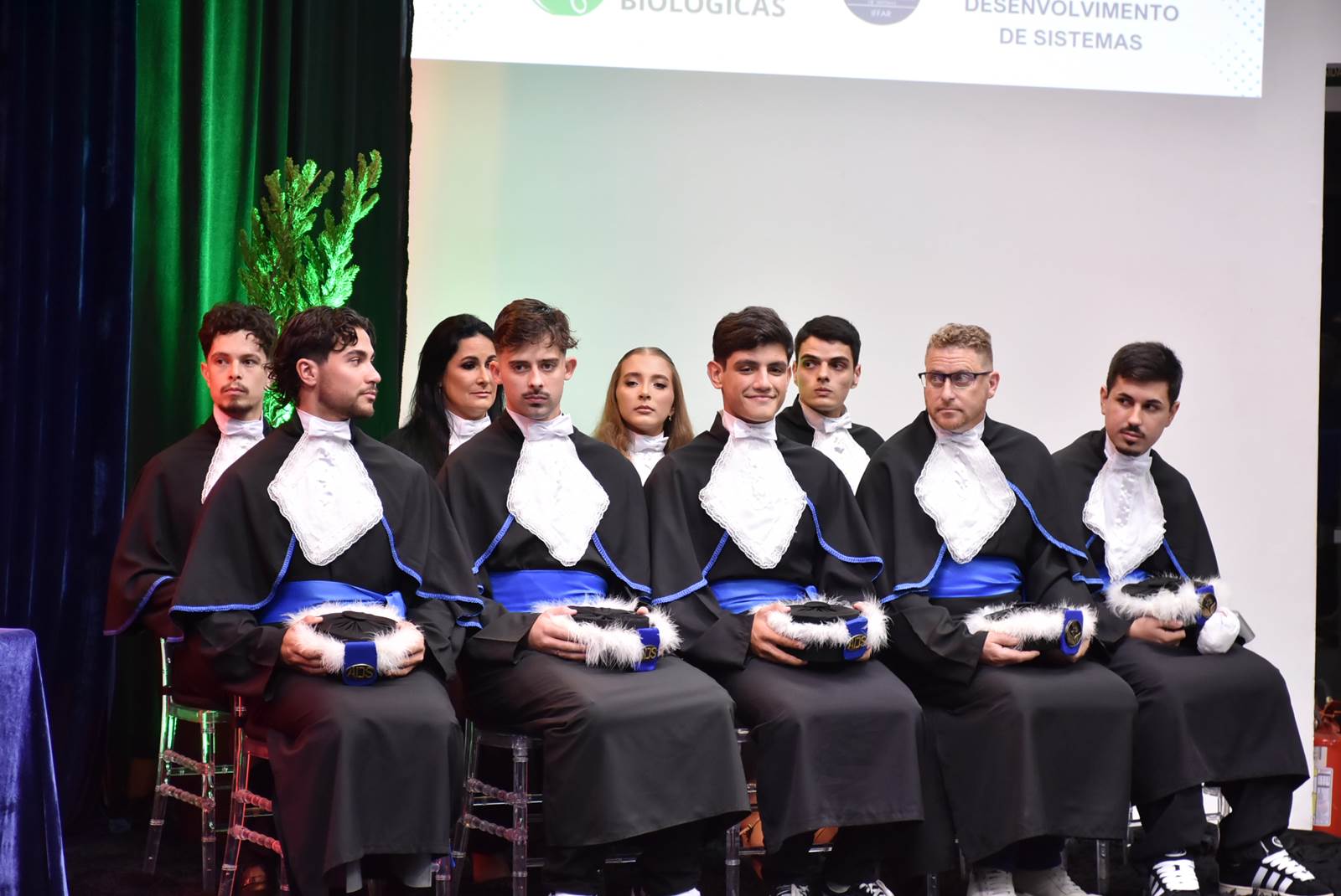 A solenidade ocorreu no Auditório Central da instituição, contando com a presença da pró-reitora de Ensino, Patrícia Donicht; do diretor geral, Paulo Roberto Cecconi Deon; da coordenadora da licenciatura em Ciências Biológicas e patronesse da turma, profª Catiane Paniz; e da paraninfa Janine Bochi do Amaral; do coordenador da ADS, prof. Daniel Boemo; e do patrono Gustavo Rissetti. Além de familiares e amigos dos formandos, também estiveram presentes demais docentes e servidores homenageados pelas turmas.