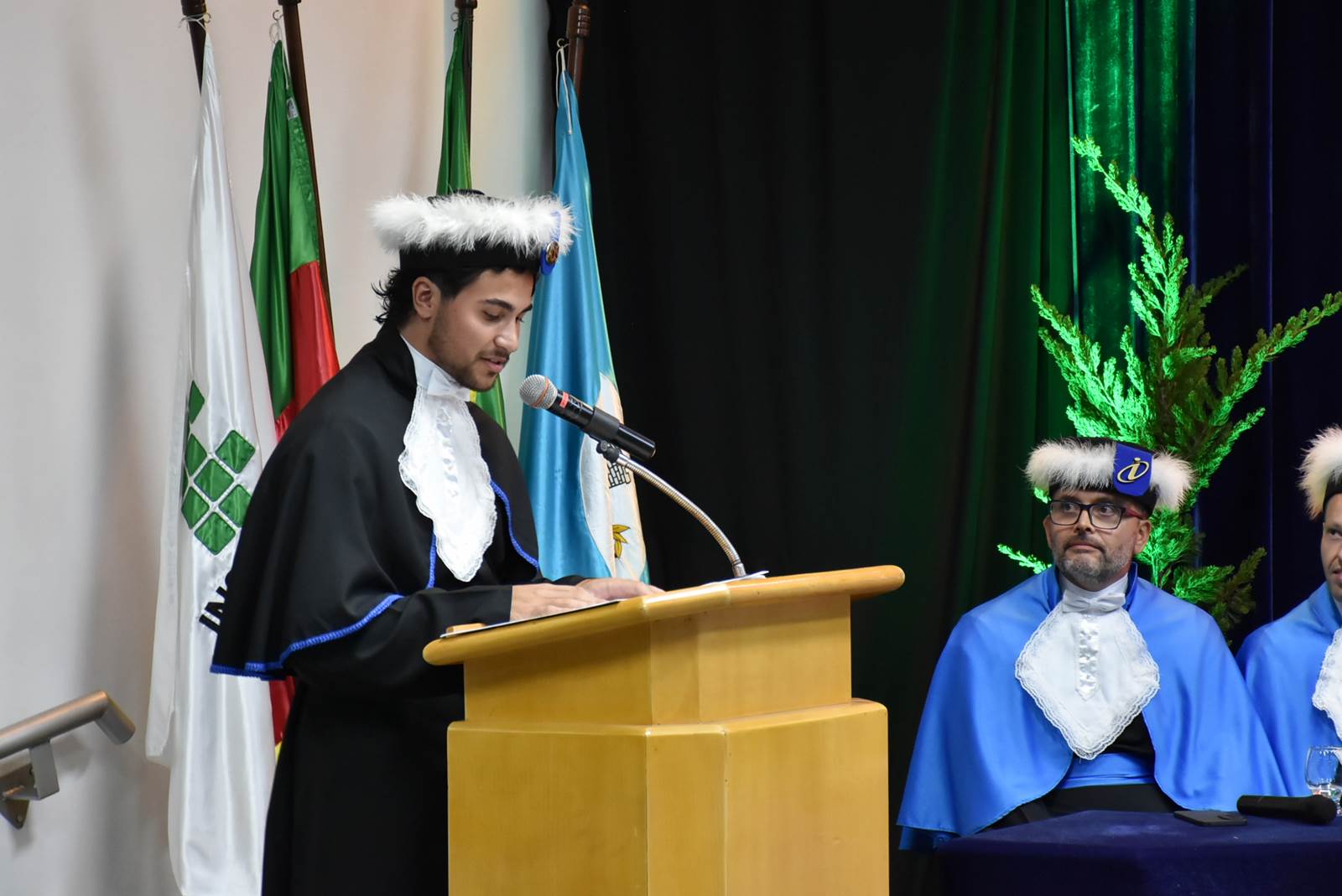 Em seu discurso, prof. Paulo Deon parabenizou os concluintes pela conquista, valorizando a dedicação ao longo dos anos de estudos, bem como reconheceu a importância da rede familiar e afetiva para o sucesso desses novos profissionais. Ele também salientou a relevância de cada área para a sociedade contemporânea, assim como os desafios que enfrentam em um cenário cada vez mais complexo e exigente.