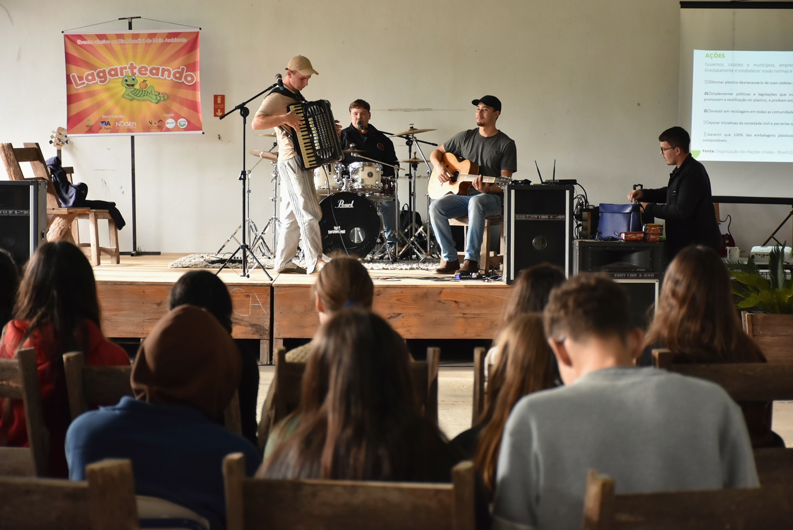 Na quinta-feira, 5 de junho, a comunidade escolar e acadêmica do Instituto Federal Farroupilha – Campus São Vicente do Sul participou da 4ª edição do “Lagarteando”, evento que oportuniza momentos de integração, com direito a bergamotas, chimarrão e apresentações artísticas dos talentos da instituição. Este ano, devido à instabilidade do tempo, a celebração foi realizada na Garagem.