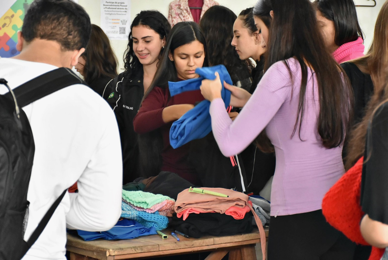 Uma das atrações desta edição foi o Brechó Solidário, que disponibilizou roupas e calçados para doação, permitindo que os(as) estudantes escolhessem livremente as peças. A atividade também serviu como espaço de conscientização sobre os impactos da indústria da moda, especialmente do modelo conhecido como fast fashion — caracterizado pela produção acelerada de roupas com base nas últimas tendências. Esse sistema, embora ofereça preços acessíveis e constante renovação de coleções, gera sérias consequências socioambientais, como o desperdício de recursos naturais, a poluição e condições de trabalho frequentemente precárias nas fábricas.