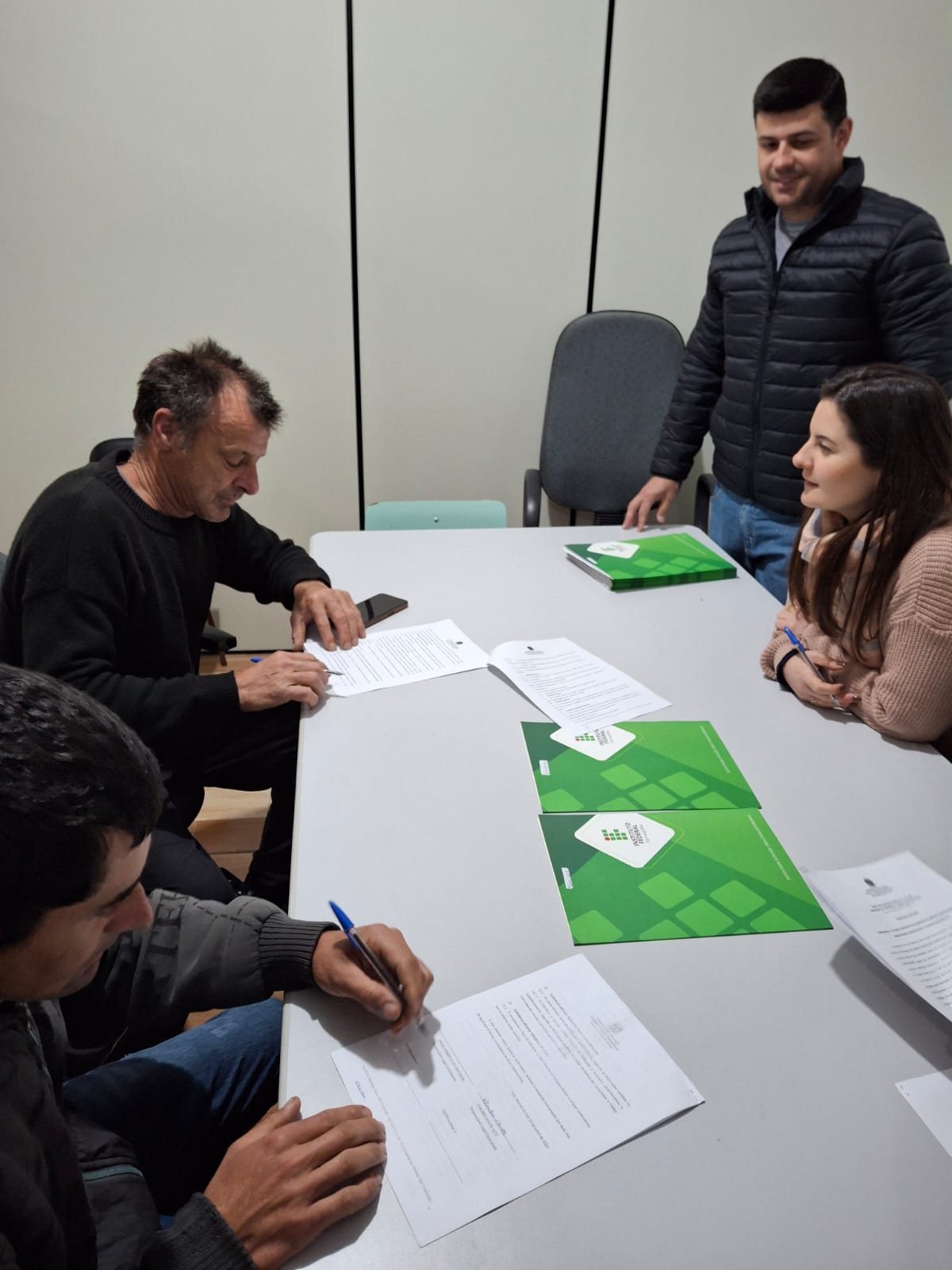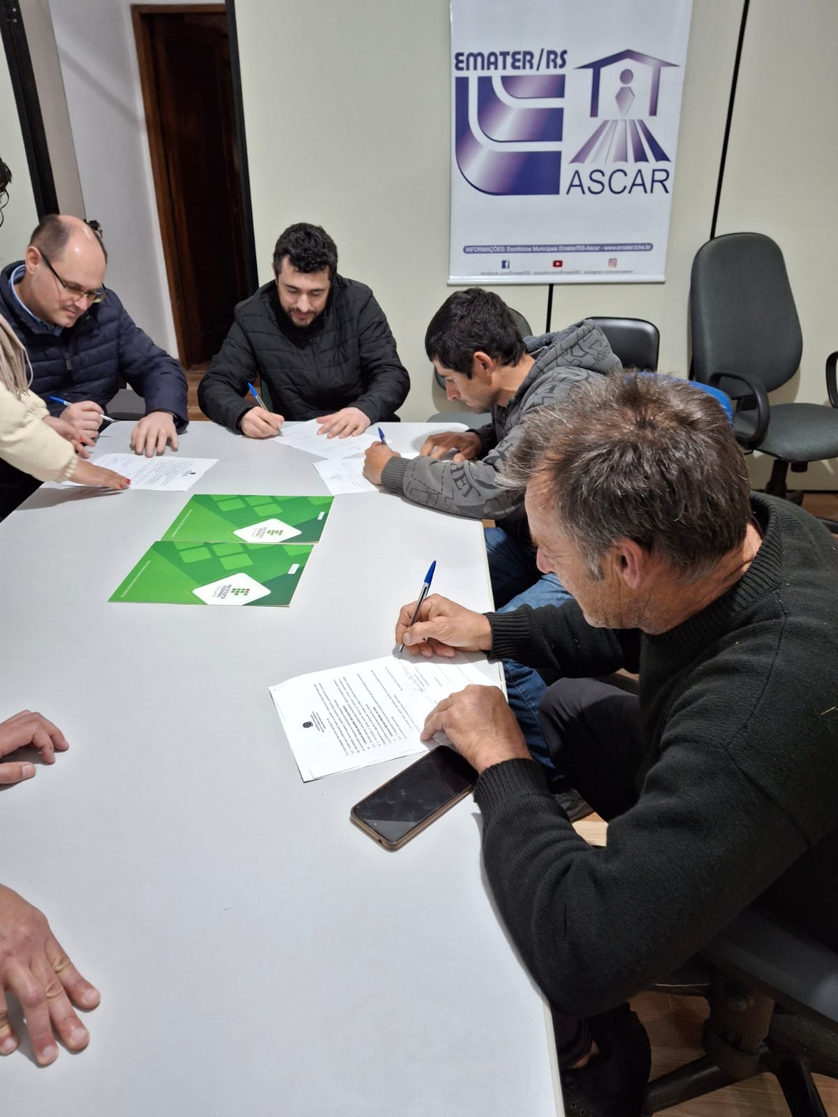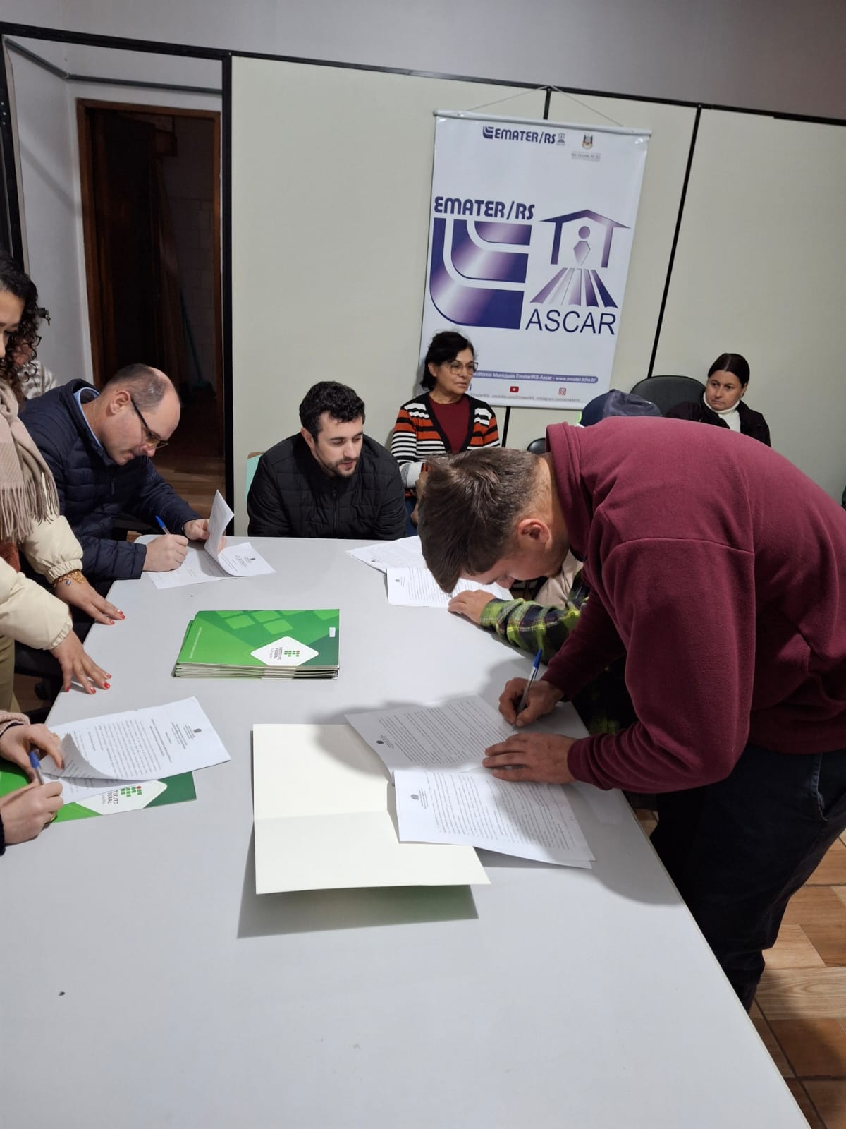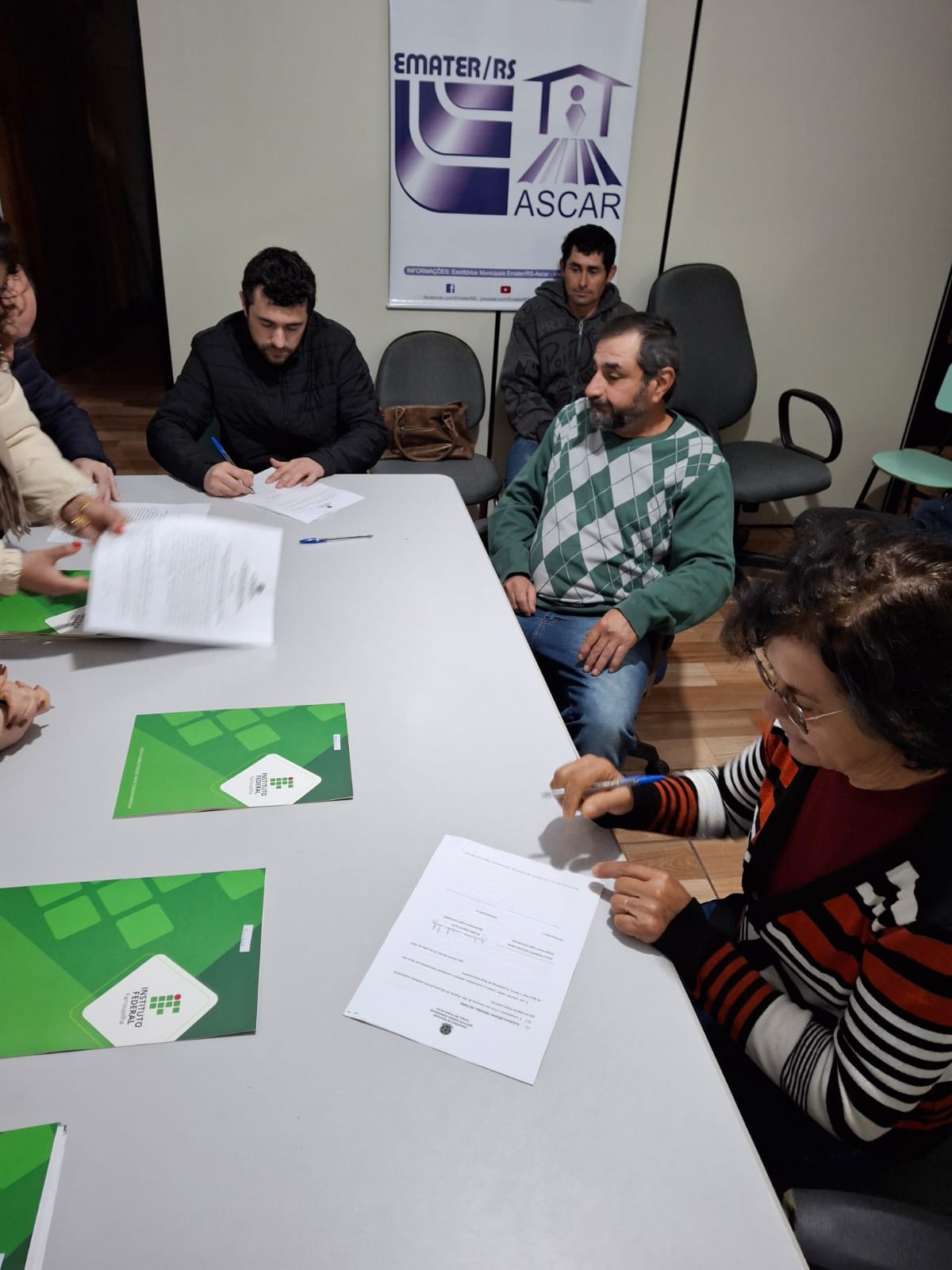 O ato de assinatura ocorreu no escritório municipal da Emater/RS-Ascar e contou com a presença dos agricultores e agricultoras selecionados, do diretor-geral, prof. Paulo Roberto Cecconi Deon; do diretor de Pesquisa, Extensão e Produção, Fabiano Damasceno; de representantes do Setor de Licitações e Contratos, servidor Gilliard Carillo e da auxiliar administrativa, Rosangela Silva; da nutricionista Carlise Prevedello; além de Jeferson Frasson Zajonz, representante da Emater/RS-Ascar. Ao todo, foram selecionados 17 fornecedores, cujos contratos terão vigência de 1 ano e 6 meses e cujos produtos abastecerão o refeitório da instituição. O valor total previsto para os repasses é de R$ 176.754,00.